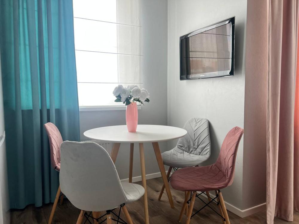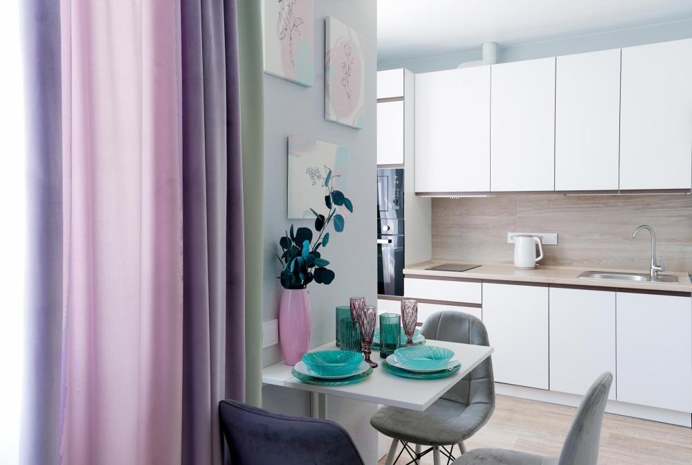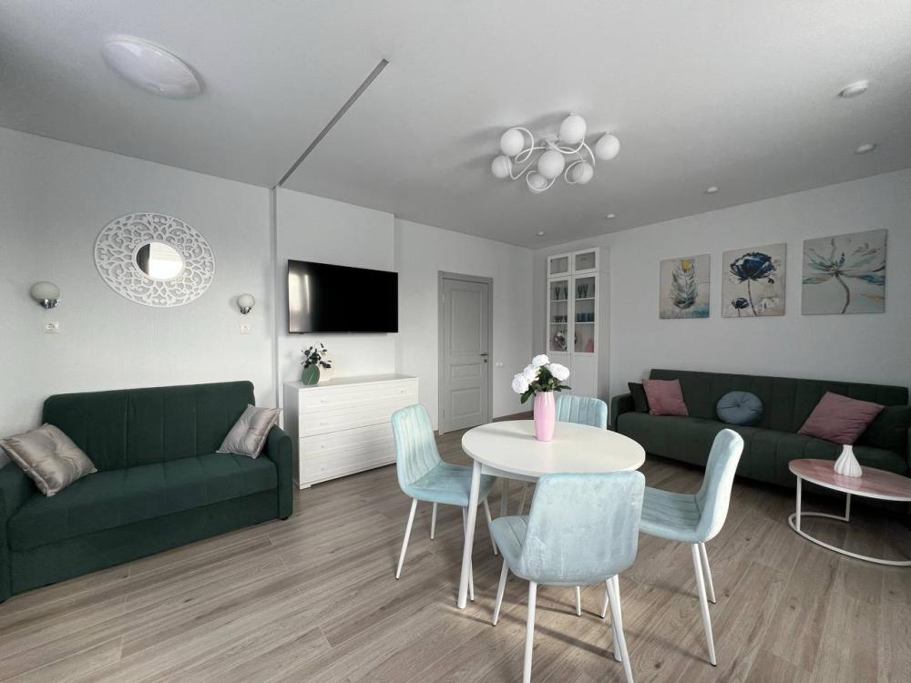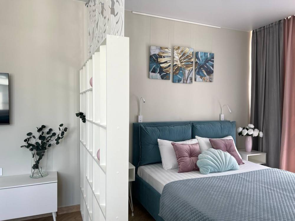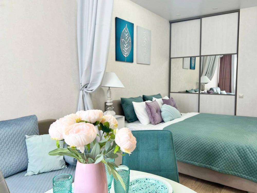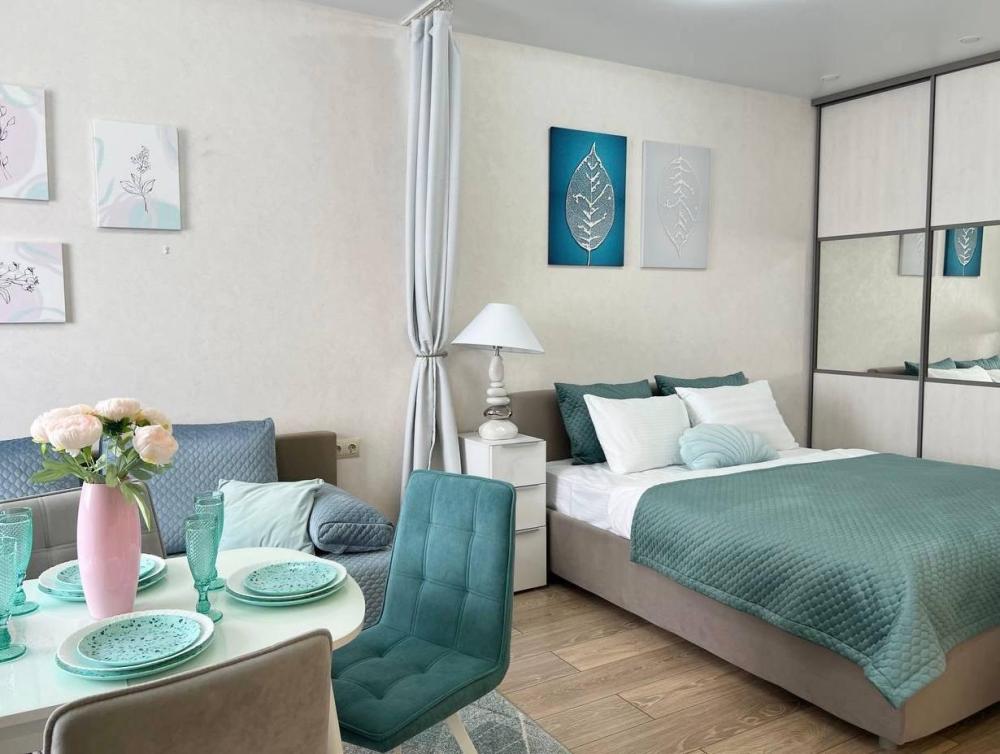 Нежная и уютная студия в клубном ЖК по лучшей цене в Сириусе. Подходит для комфортного проживания пары или семьи из 4-х человек. Кровать 160*200см диван-кровать 140*200см оснащение кухни: индукционная плита, холодильник, эл.чайник, микроволновая печь, посудомоечная машина) Посуда и кухонная утварь Совмещённый санузел с душевой кабиной, стиральной машиной, феном. WiFi, телевизор, Кондиционер Шкаф, плечики для одежды, гладильная доска, утюг, сушилка. постельное белье и полотенца. Средства гигиены, чистящие/моющие средства.