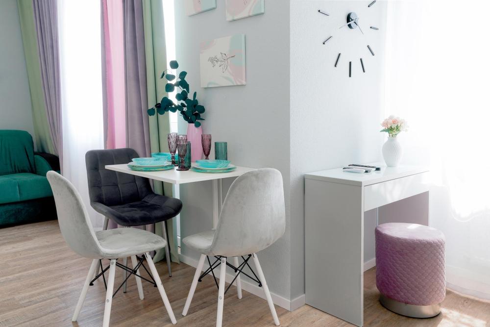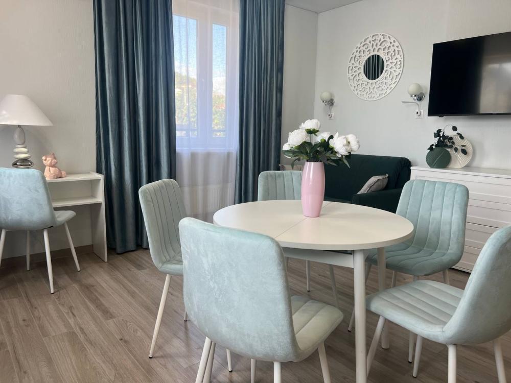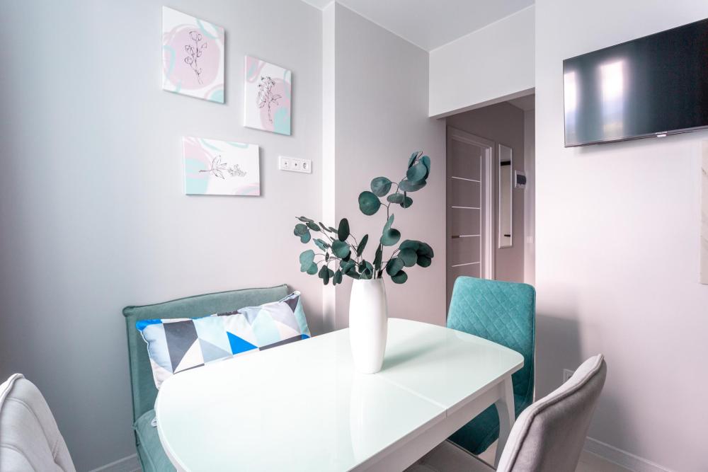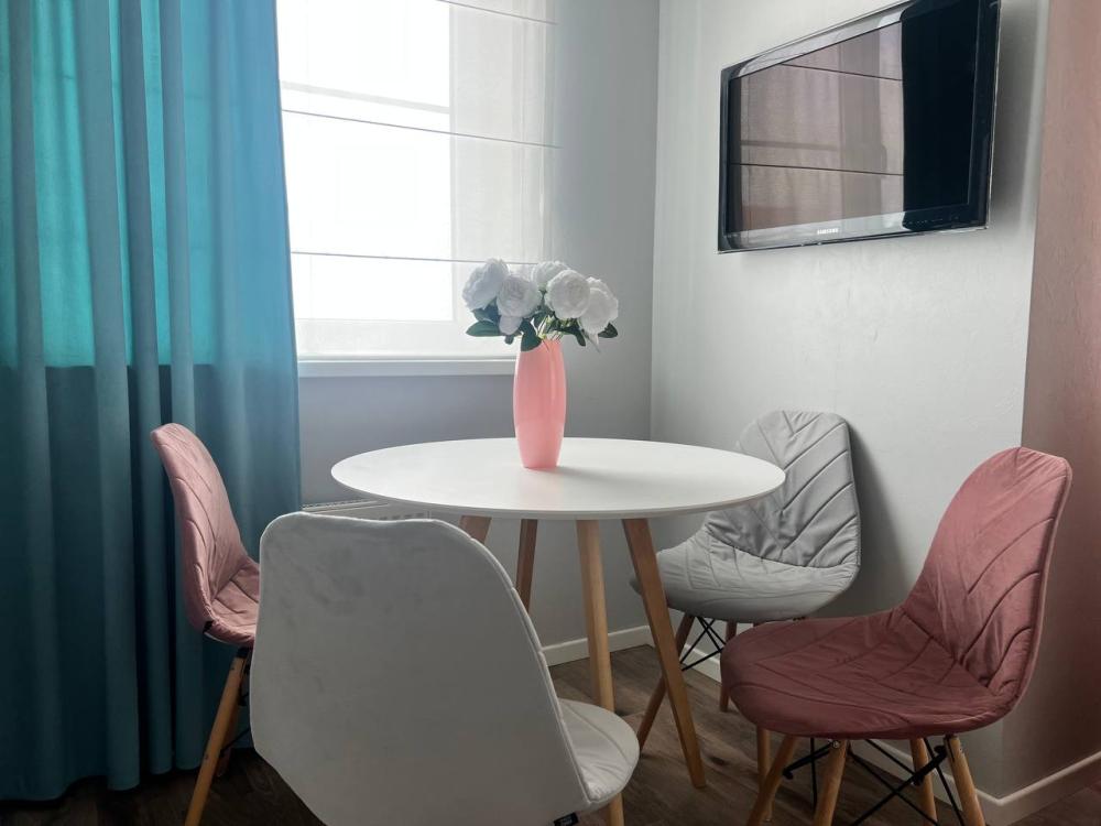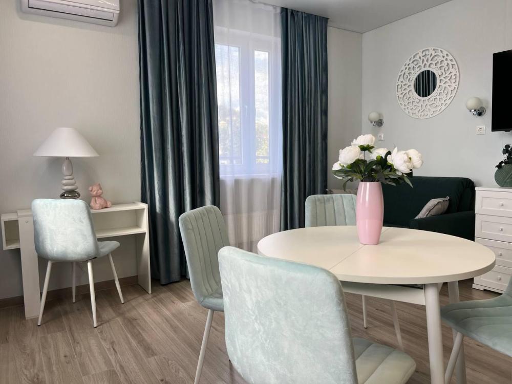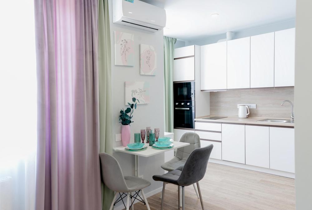 Нежная и уютная студия в клубном ЖК по лучшей цене в Сириусе. Подходит для комфортного проживания пары или семьи из 4-х человек. Кровать 160*200см диван-кровать 140*200см оснащение кухни: индукционная плита, холодильник, эл.чайник, микроволновая печь, посудомоечная машина) Посуда и кухонная утварь Совмещённый санузел с душевой кабиной, стиральной машиной, феном. WiFi, телевизор, Кондиционер Шкаф, плечики для одежды, гладильная доска, утюг, сушилка. постельное белье и полотенца. Средства гигиены, чистящие/моющие средства.