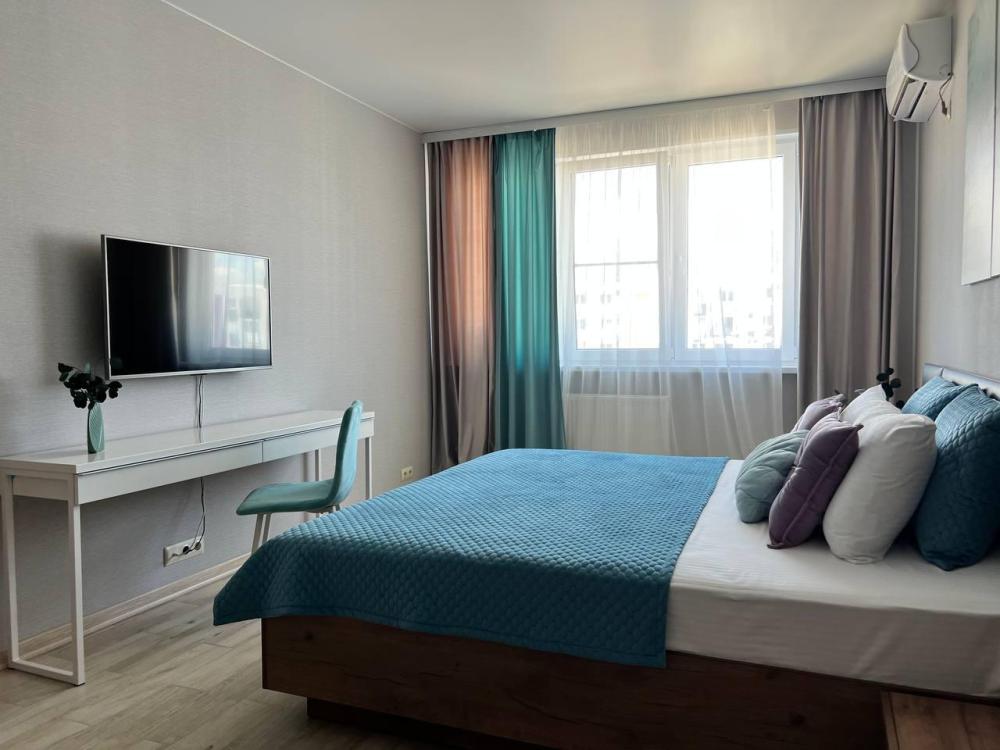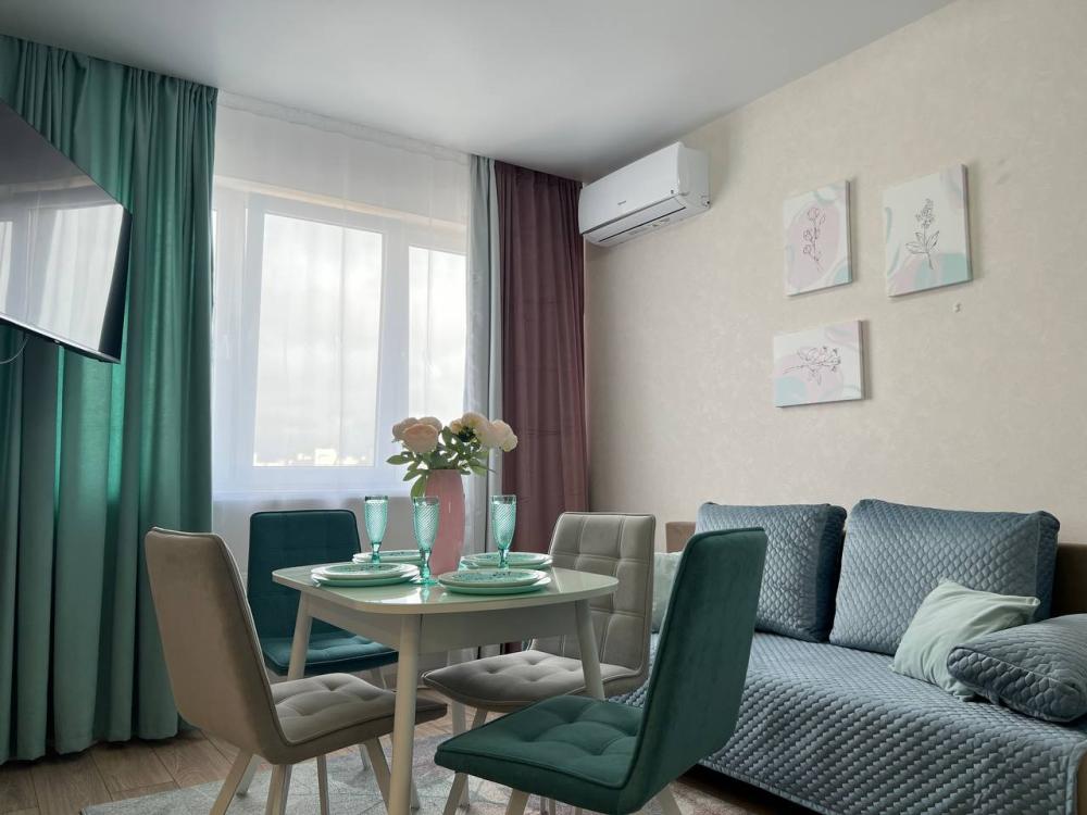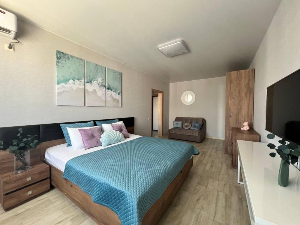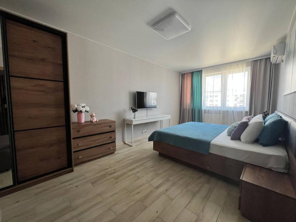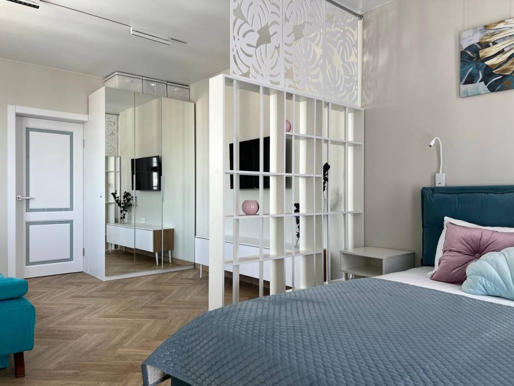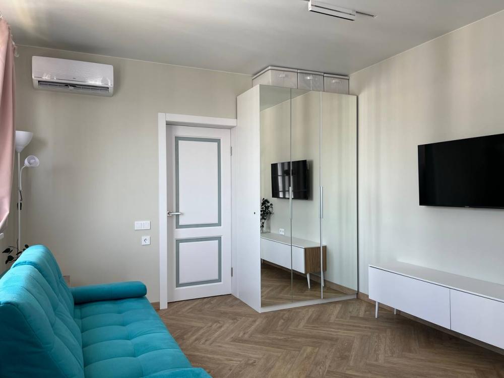 Современная однокомнатная квартира в клубном ЖК. Подходит для комфортного проживания семьи до 5-х человек. Кровать 160*200см диван-кровать 140*200см кресло-кровать 90*200см оснащение кухни: индукционная плита, холодильник, эл. чайник) Посуда и кухонная утварь Совмещённый санузел с душевой кабиной, стиральной машиной, феном. WiFi, телевизор, Кондиционер Шкаф, плечики для одежды, гладильная доска, утюг, сушилка. постельное белье и полотенца. Средства гигиены, чистящие/моющие средства.