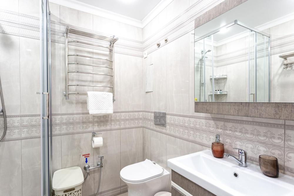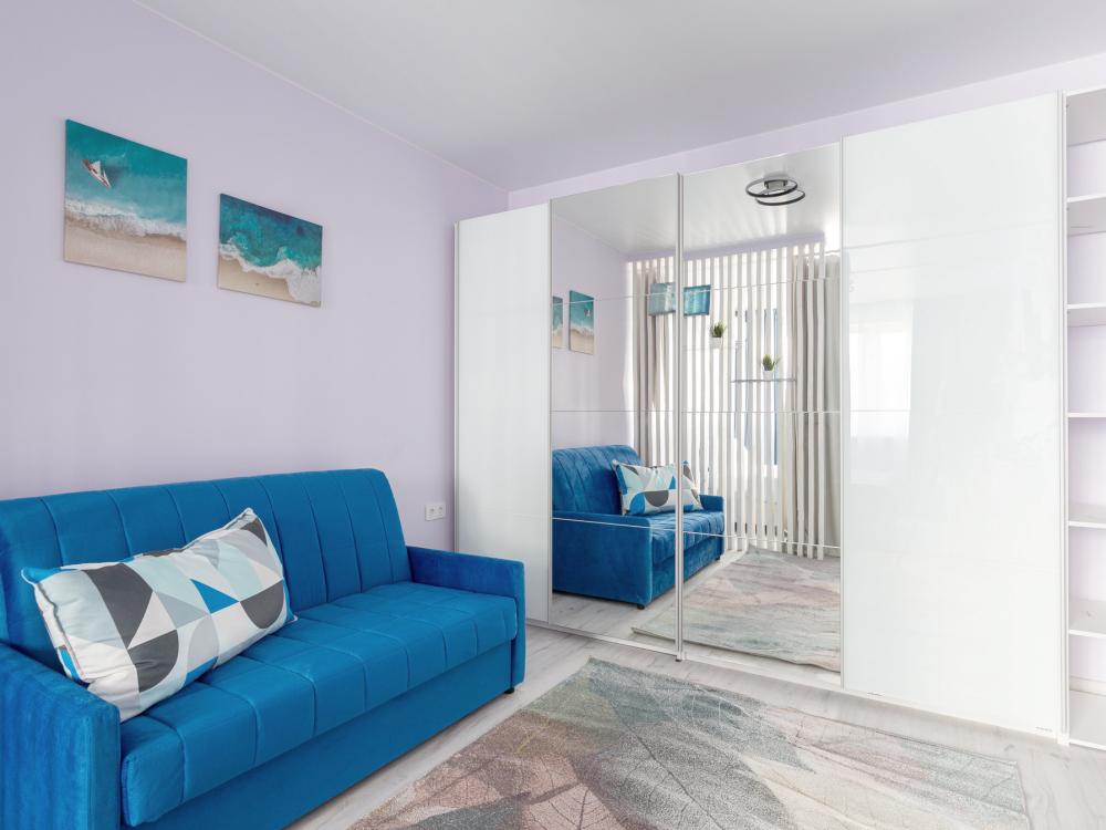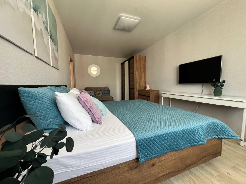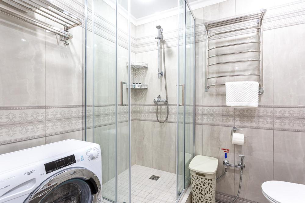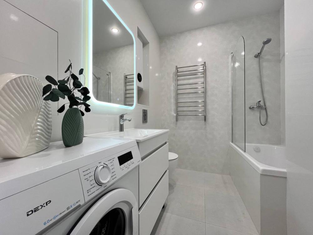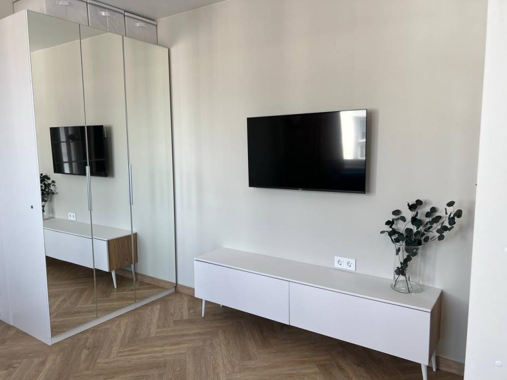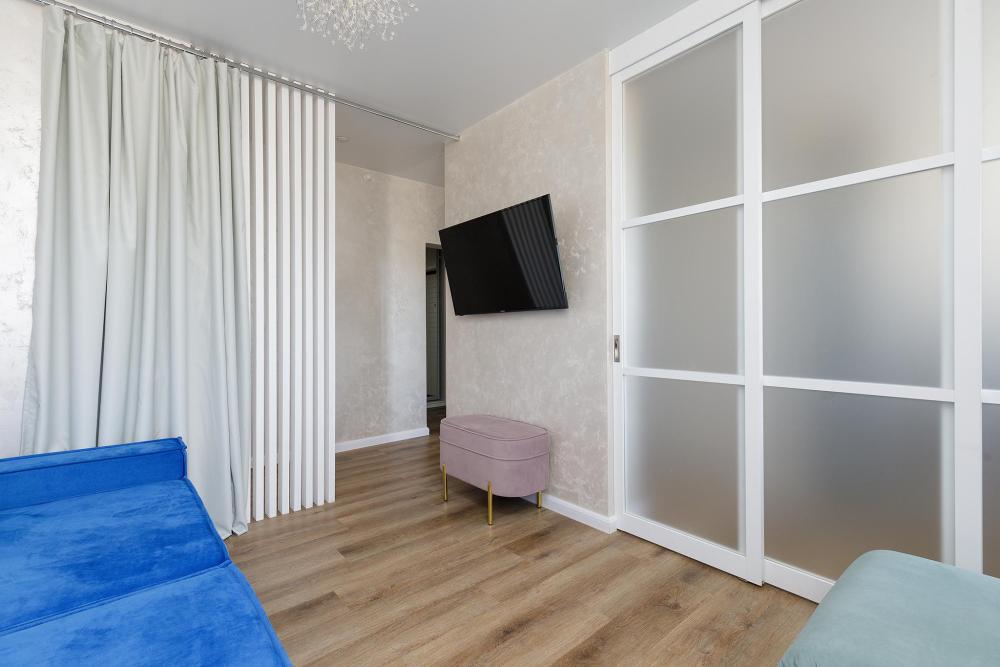 Современная однокомнатная квартира в клубном ЖК. Подходит для комфортного проживания семьи до 5-х человек. Кровать 160*200см диван-кровать 140*200см кресло-кровать 90*200см оснащение кухни: индукционная плита, холодильник, эл. чайник) Посуда и кухонная утварь Совмещённый санузел с душевой кабиной, стиральной машиной, феном. WiFi, телевизор, Кондиционер Шкаф, плечики для одежды, гладильная доска, утюг, сушилка. постельное белье и полотенца. Средства гигиены, чистящие/моющие средства.
