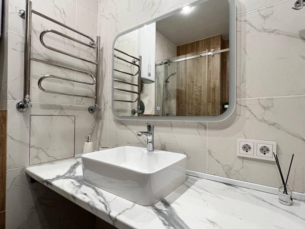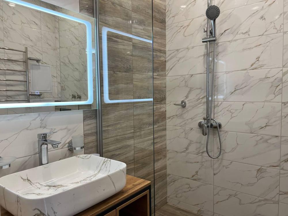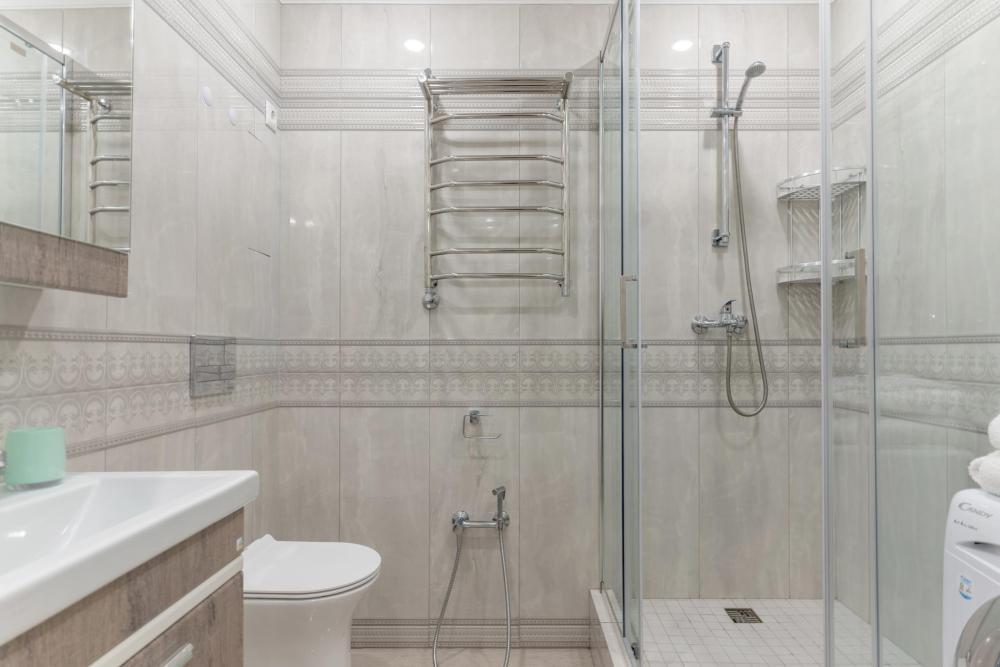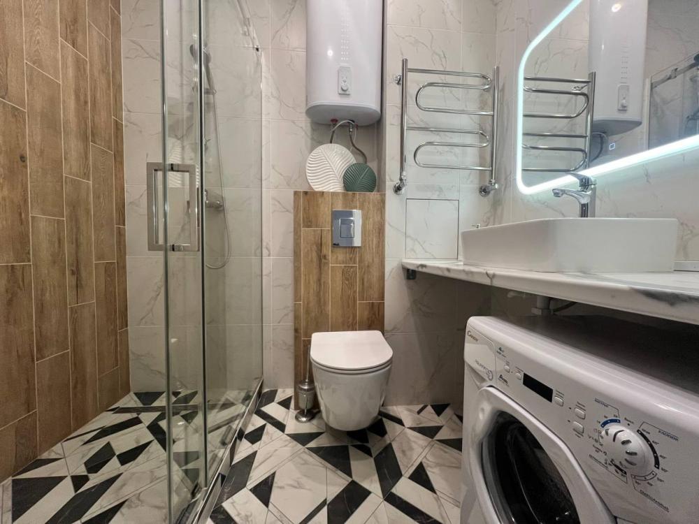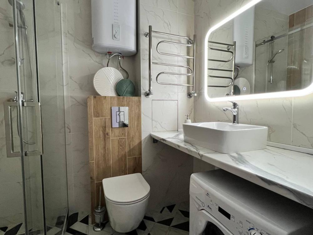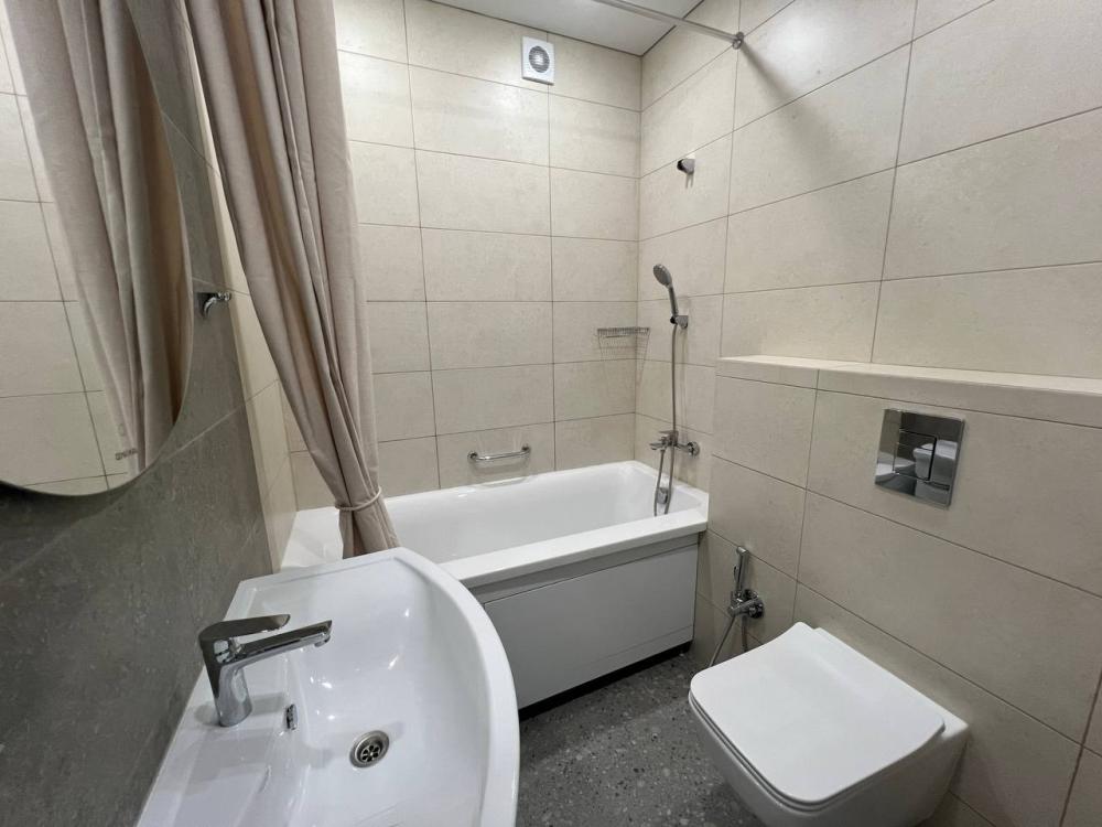 Современная однокомнатная квартира в клубном ЖК. Подходит для комфортного проживания семьи до 5-х человек. Кровать 160*200см диван-кровать 140*200см кресло-кровать 90*200см оснащение кухни: индукционная плита, холодильник, эл. чайник) Посуда и кухонная утварь Совмещённый санузел с душевой кабиной, стиральной машиной, феном. WiFi, телевизор, Кондиционер Шкаф, плечики для одежды, гладильная доска, утюг, сушилка. постельное белье и полотенца. Средства гигиены, чистящие/моющие средства.