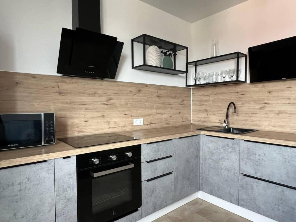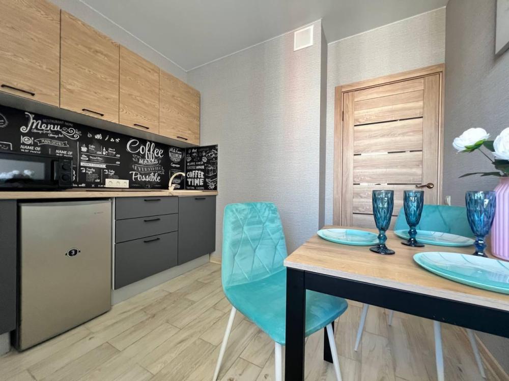 Стильная однокомнатная квартира в клубном ЖК. Подходит для комфортного проживания семьи до 5-х человек. оснащение кухни: плита, холодильник, эл.чайник, микроволновая печь) Посуда и кухонная утварь Совмещённый санузел с душевой кабиной, стиральной машиной, феном. WiFi, телевизор, Кондиционер Шкаф, плечики для одежды, гладильная доска, утюг, сушилка. постельное белье и полотенца. Средства гигиены, чистящие/моющие средства.