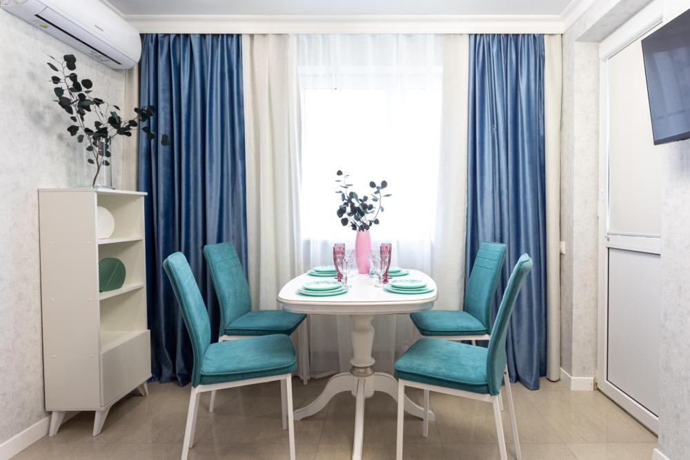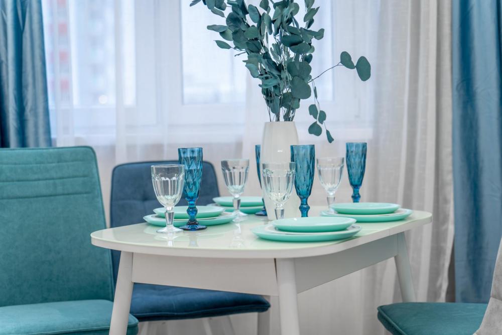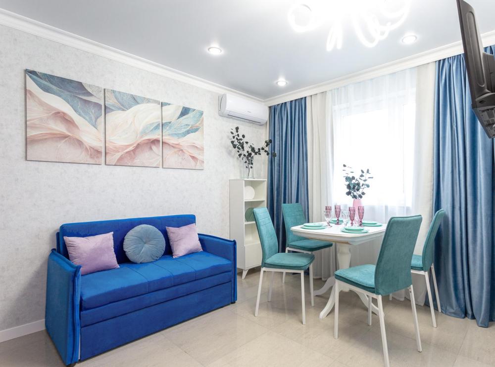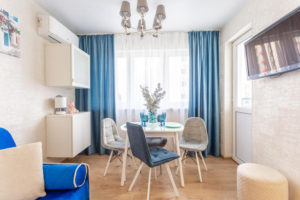 Уникальная двухкомнатная квартира в морском стиле в клубном ЖК. Подходит для комфортного проживания семьи до 5-х человек. Кровать 160*200см диван-кровать 145*200см кресло-кровать оснащение кухни: индукционная плита, холодильник, эл. чайник, микроволновая печь, духовка, посудомоечная машина) Посуда и кухонная утварь Совмещённый санузел с душевой кабиной, стиральной машиной, феном. WiFi, телевизор, Кондиционер Шкаф, плечики для одежды, гладильная доска, утюг, сушилка. постельное белье и полотенца. Средства гигиены, чистящие/моющие средства.