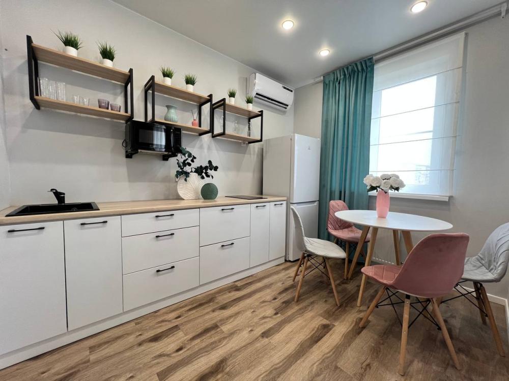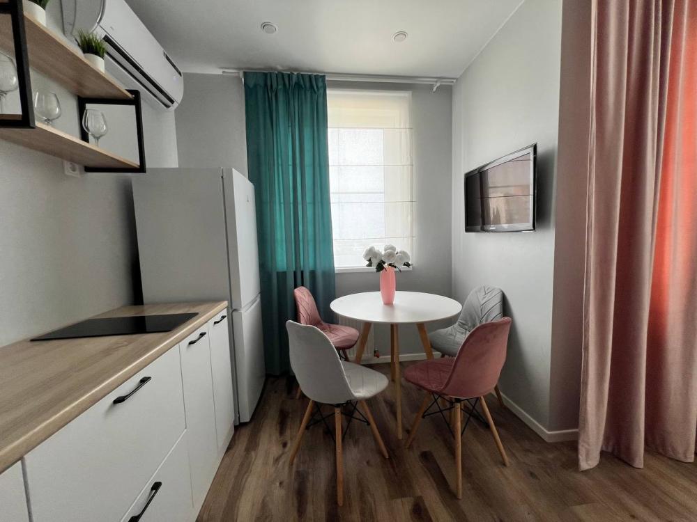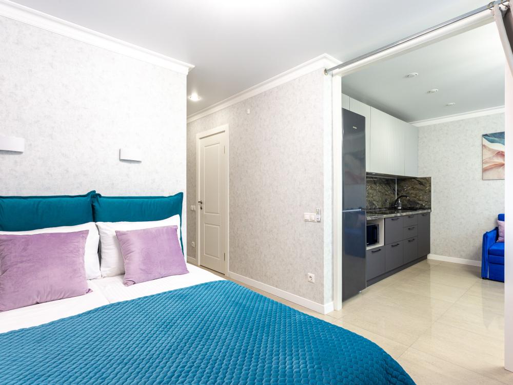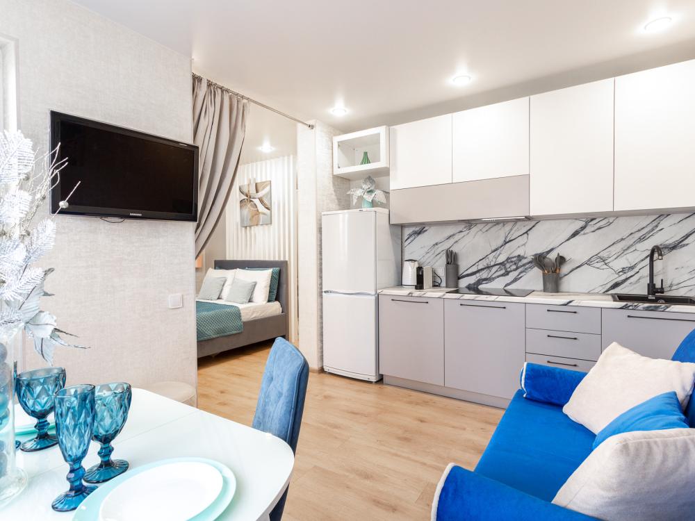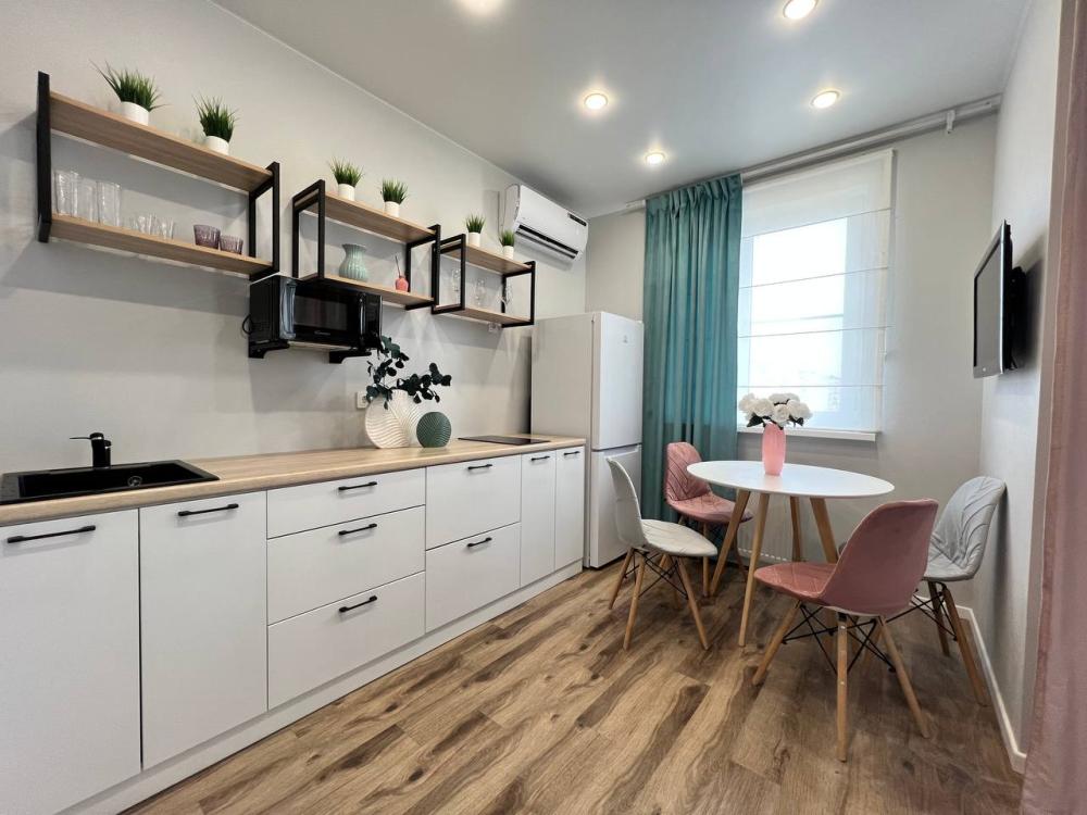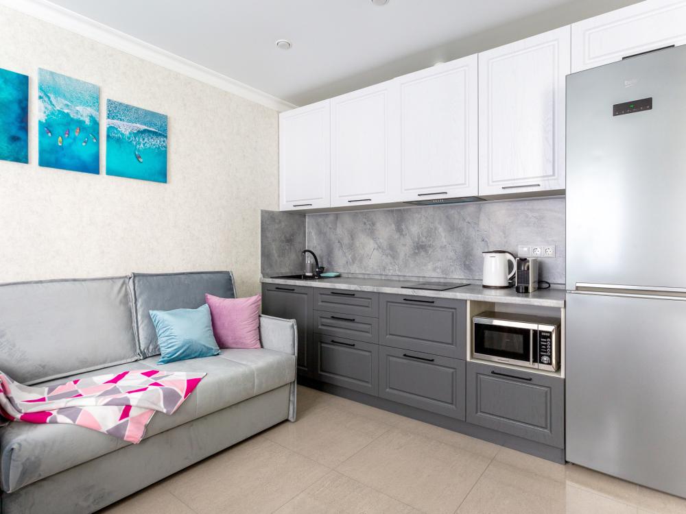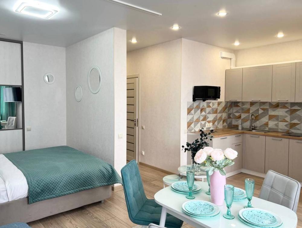 Стильная студия Делюкс в клубном ЖК. Подходит для комфортного проживания пары или семьи из 4-х человек. Оснащение кухни: индукционная плита, холодильник, эл.чайник, микроволновая печь, духовка), посуда и кухонная утварь. Совмещённый санузел с душевой кабиной, стиральной машиной, феном. WiFi, телевизор, Кондиционер. Шкаф, плечики для одежды, гладильная доска, утюг, сушилка. Постельное белье и полотенца. Средства гигиены, чистящие/моющие средства.