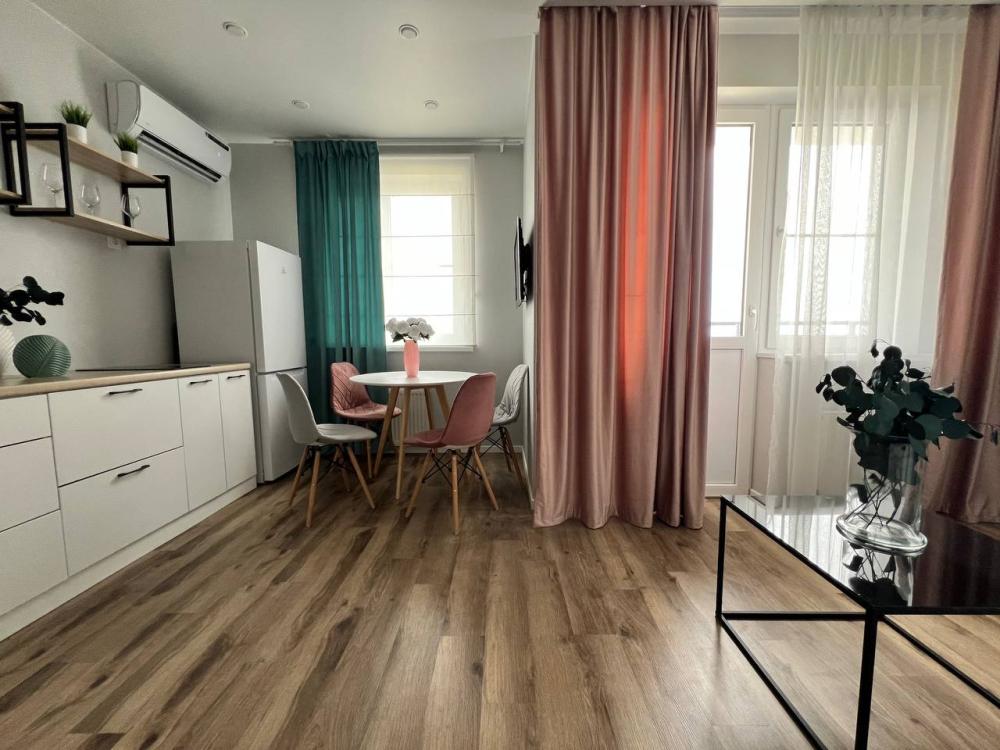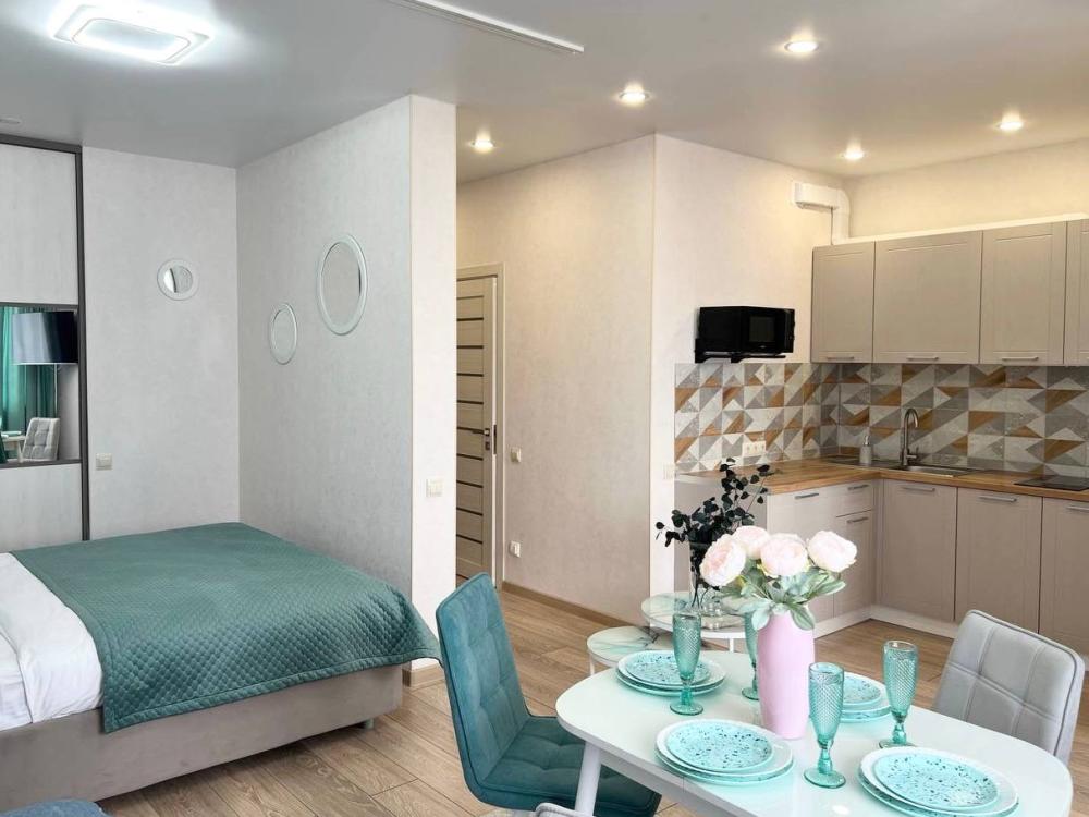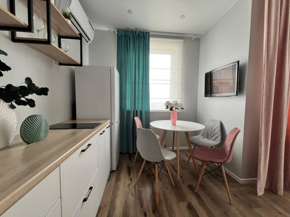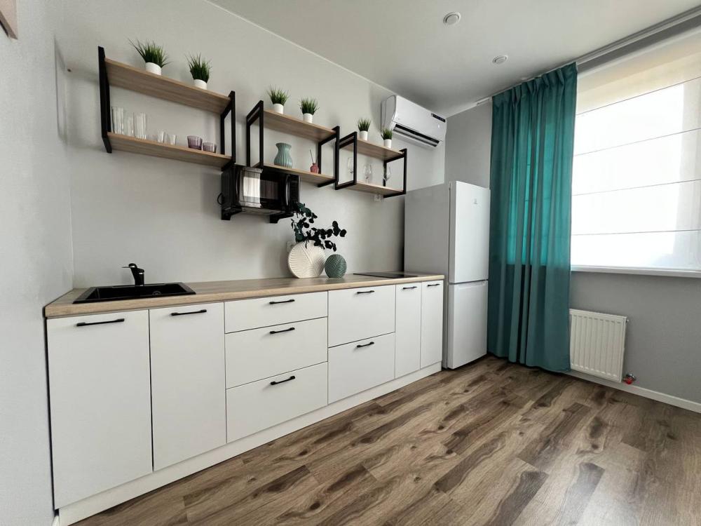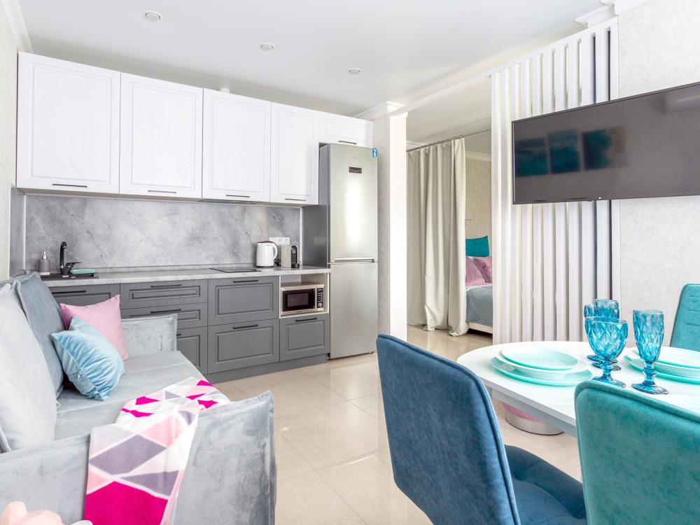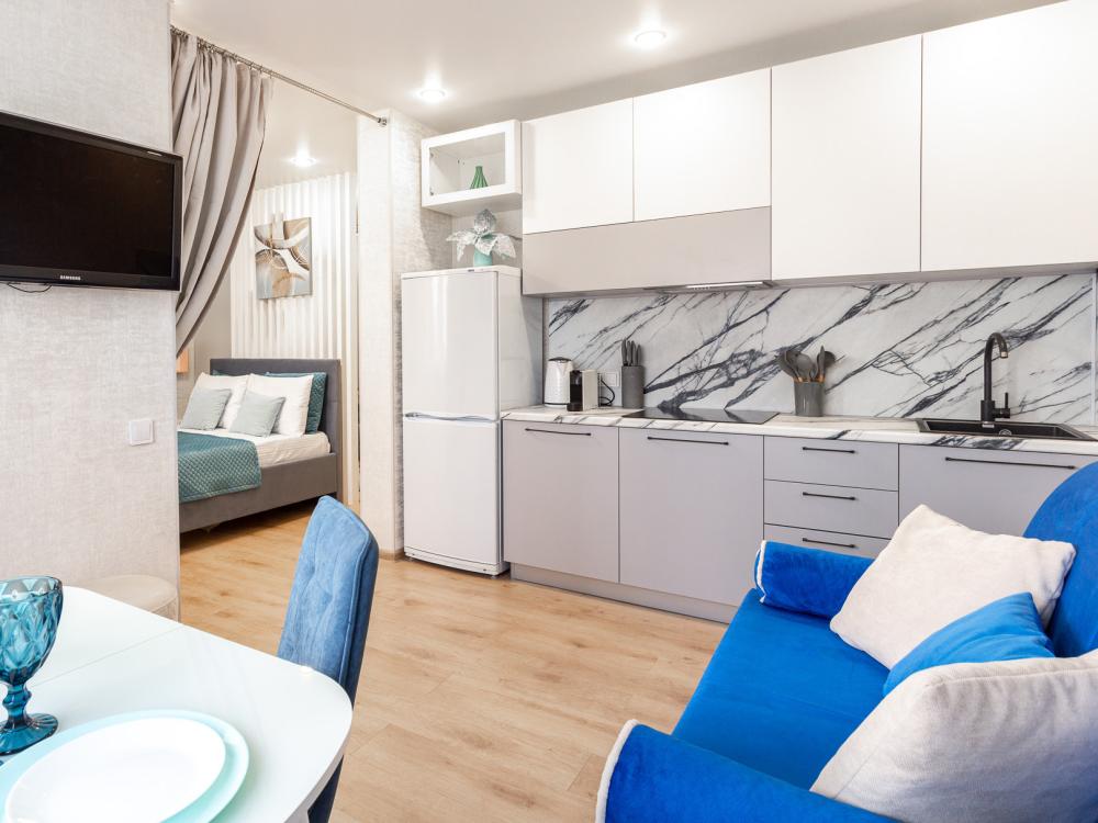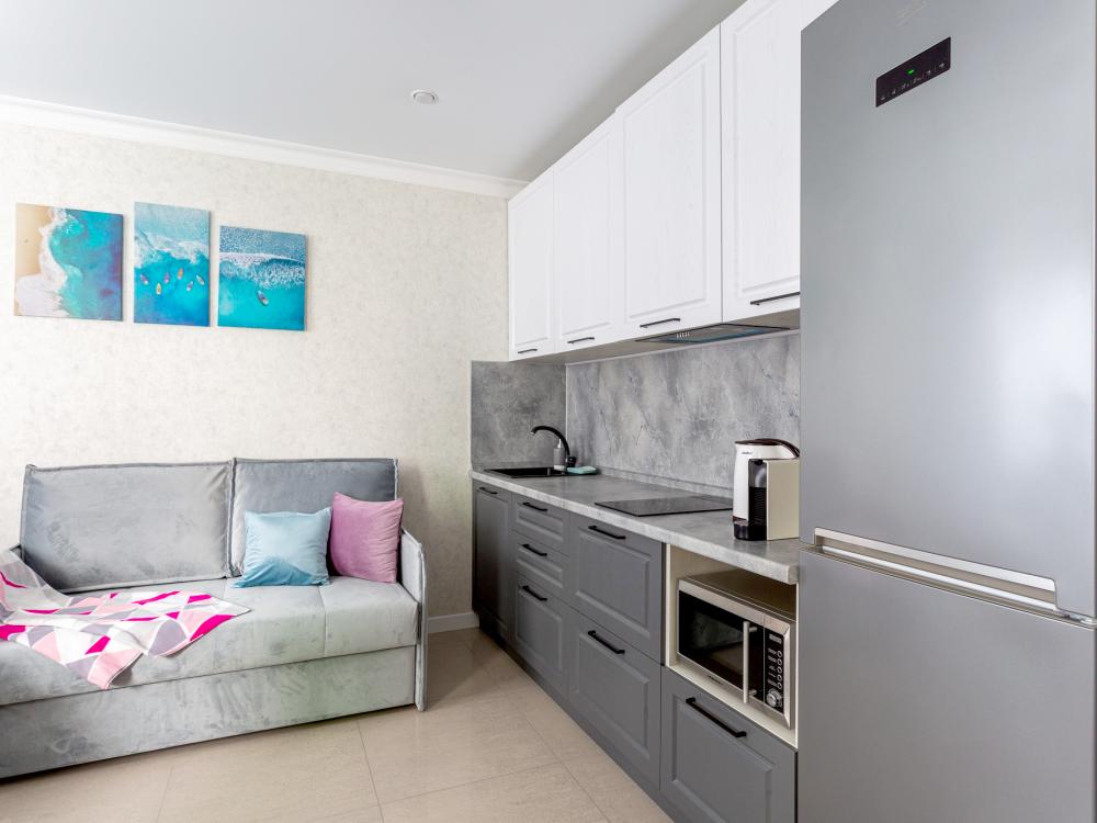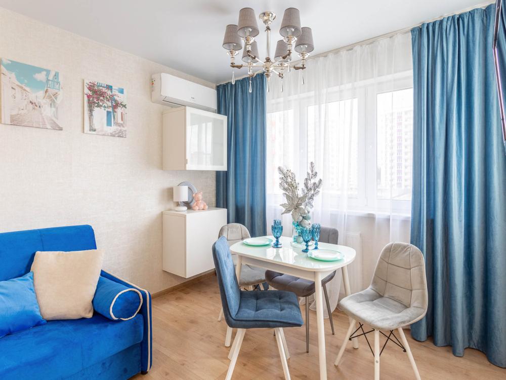 Стильная студия Делюкс в клубном ЖК. Подходит для комфортного проживания пары или семьи из 4-х человек. Оснащение кухни: индукционная плита, холодильник, эл.чайник, микроволновая печь, духовка), посуда и кухонная утварь. Совмещённый санузел с душевой кабиной, стиральной машиной, феном. WiFi, телевизор, Кондиционер. Шкаф, плечики для одежды, гладильная доска, утюг, сушилка. Постельное белье и полотенца. Средства гигиены, чистящие/моющие средства.