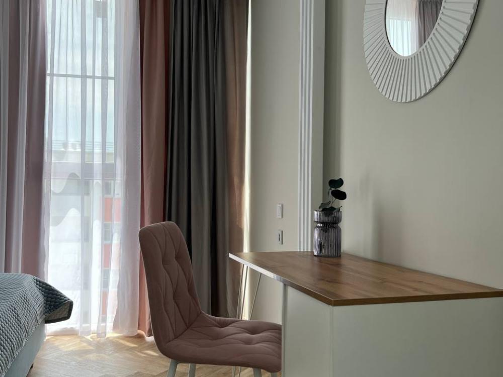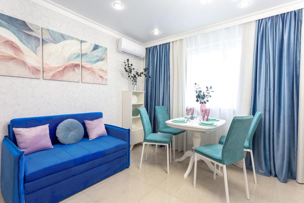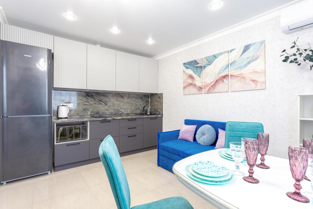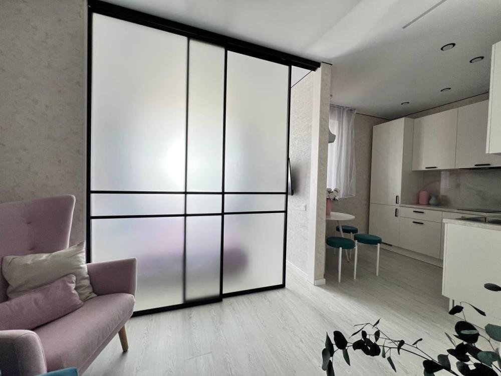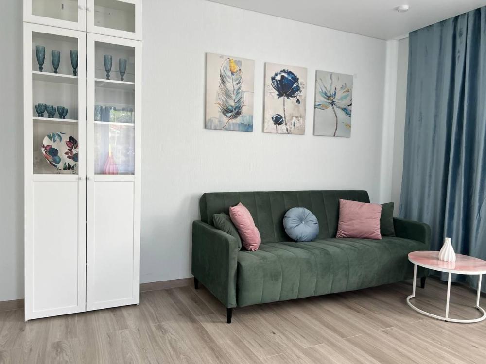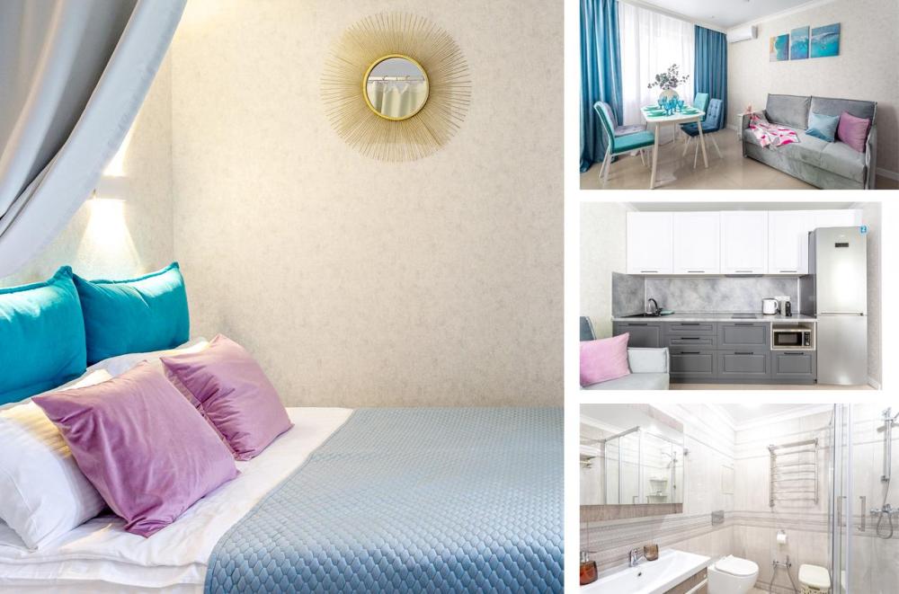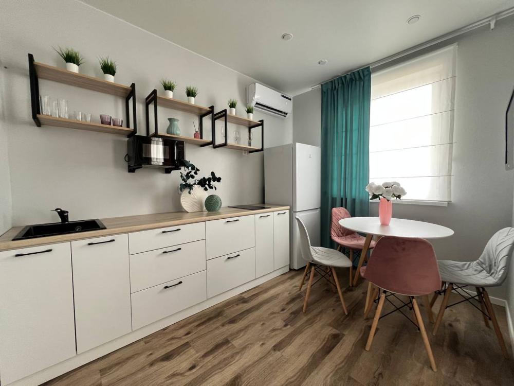 Стильная студия Делюкс в клубном ЖК. Подходит для комфортного проживания пары или семьи из 4-х человек. Оснащение кухни: индукционная плита, холодильник, эл.чайник, микроволновая печь, духовка), посуда и кухонная утварь. Совмещённый санузел с душевой кабиной, стиральной машиной, феном. WiFi, телевизор, Кондиционер. Шкаф, плечики для одежды, гладильная доска, утюг, сушилка. Постельное белье и полотенца. Средства гигиены, чистящие/моющие средства.