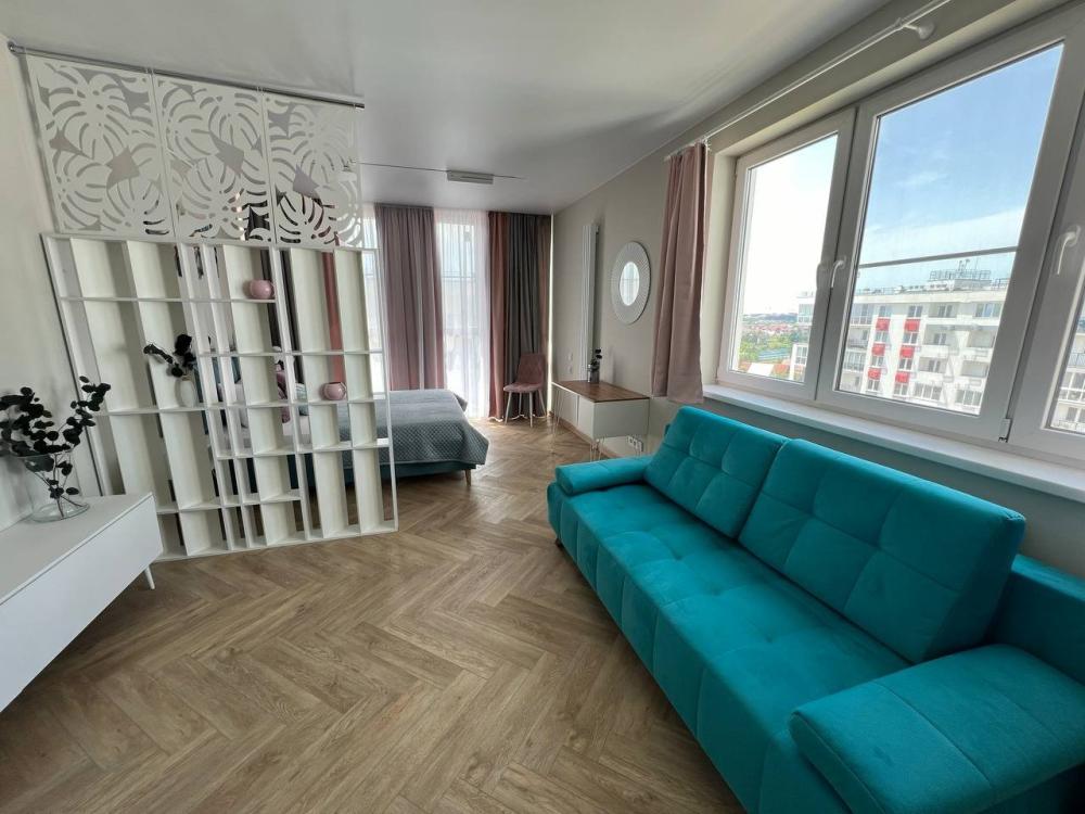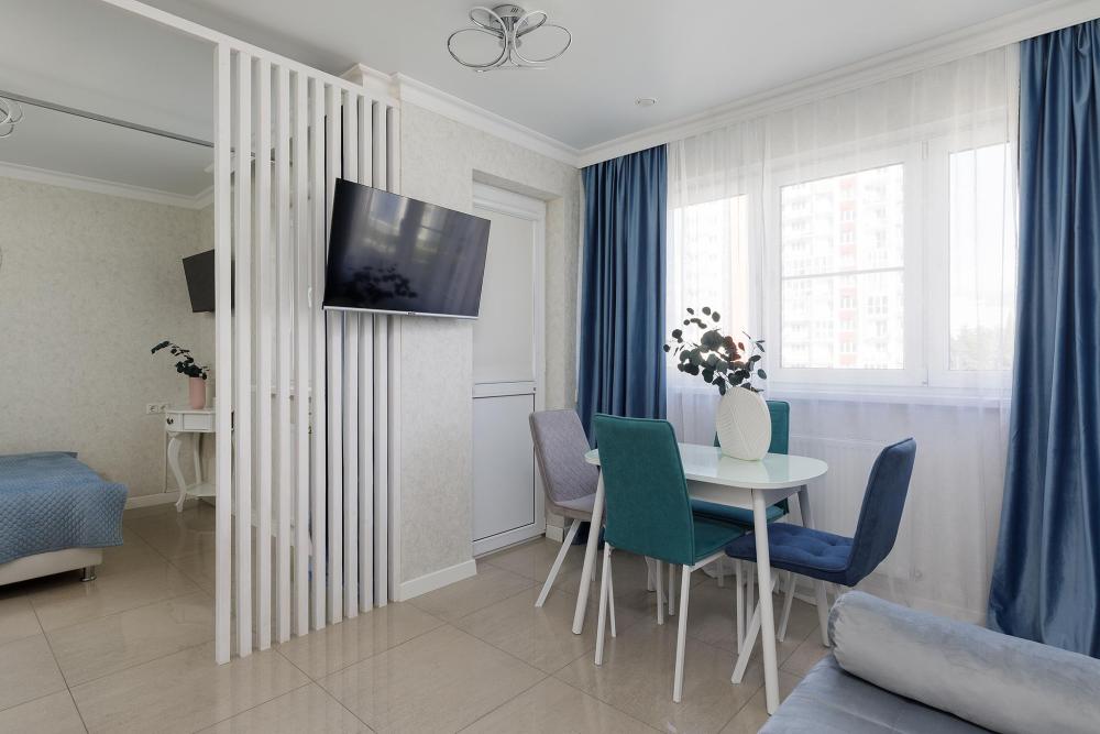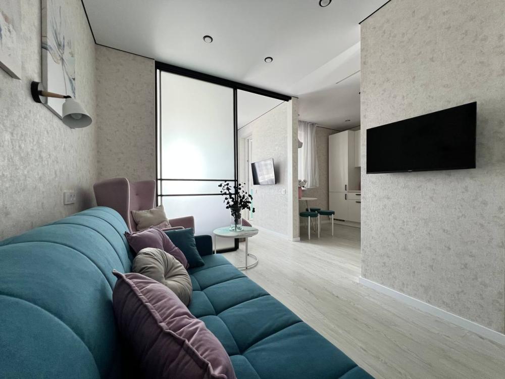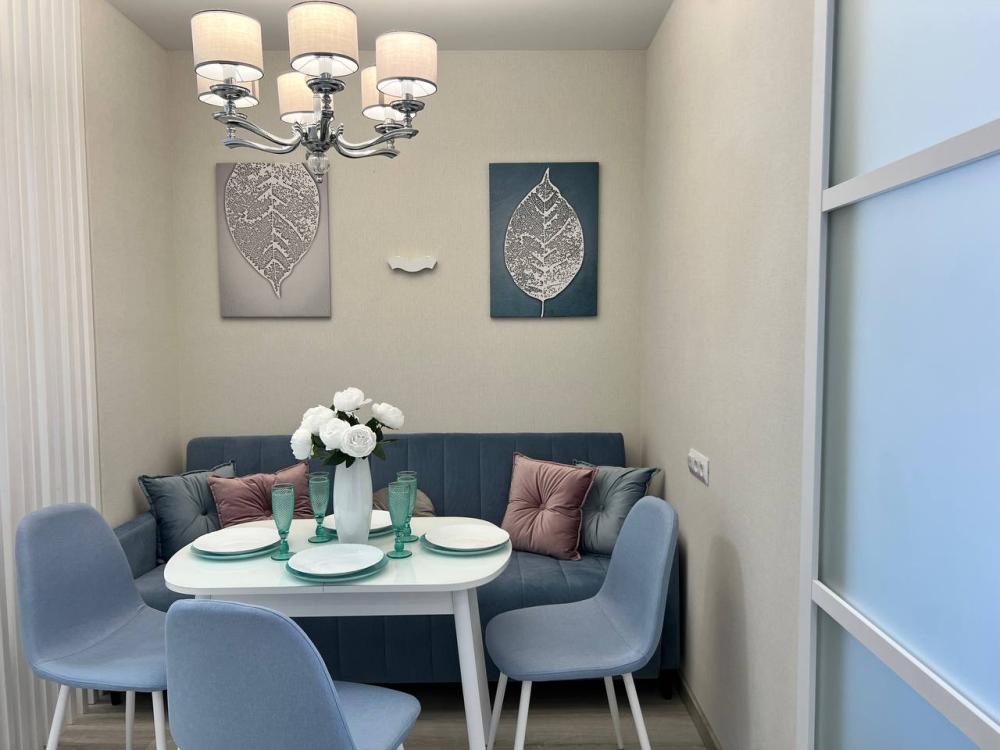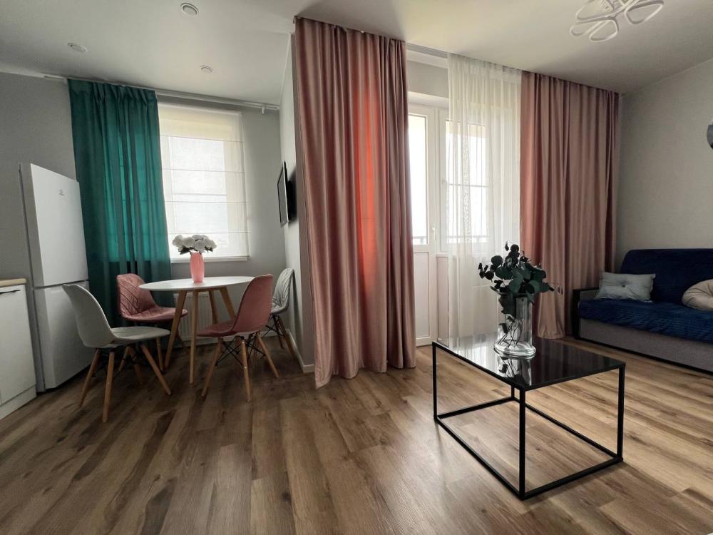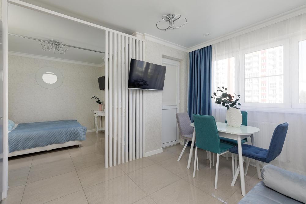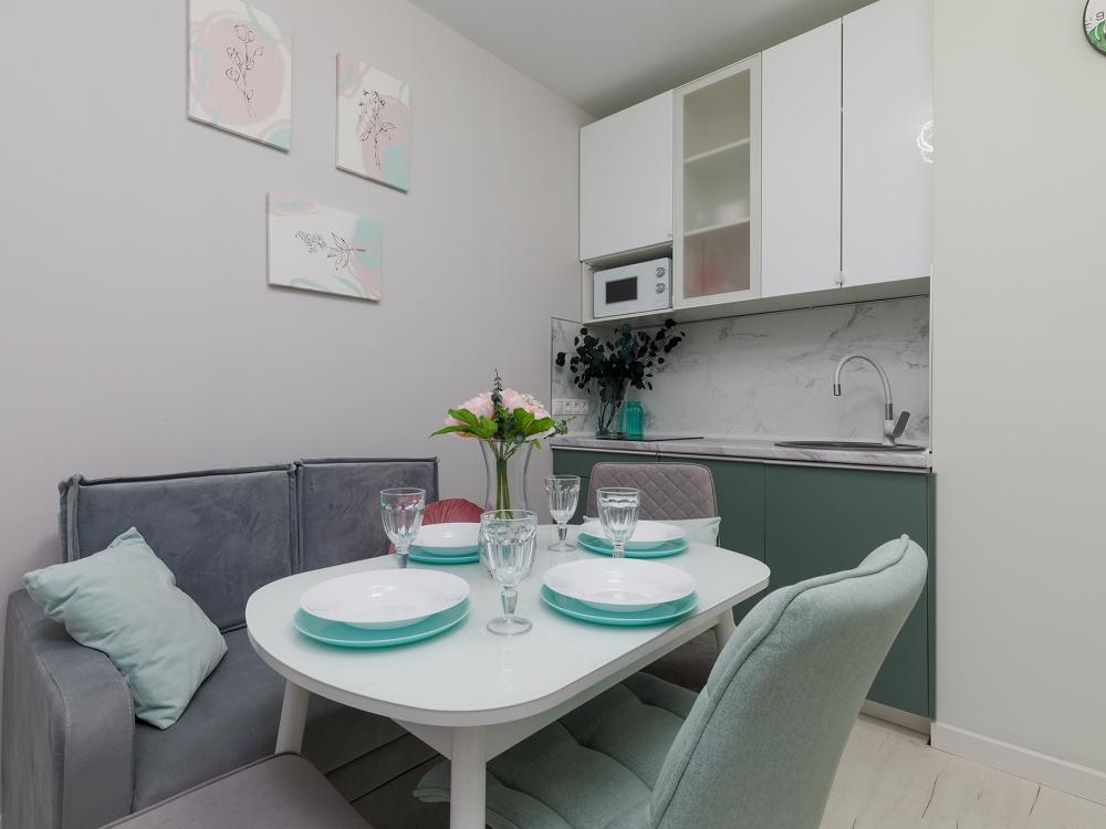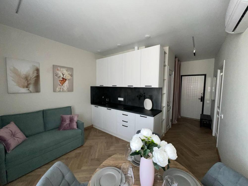 Стильная студия Делюкс в клубном ЖК. Подходит для комфортного проживания пары или семьи из 4-х человек. Оснащение кухни: индукционная плита, холодильник, эл.чайник, микроволновая печь, духовка), посуда и кухонная утварь. Совмещённый санузел с душевой кабиной, стиральной машиной, феном. WiFi, телевизор, Кондиционер. Шкаф, плечики для одежды, гладильная доска, утюг, сушилка. Постельное белье и полотенца. Средства гигиены, чистящие/моющие средства.