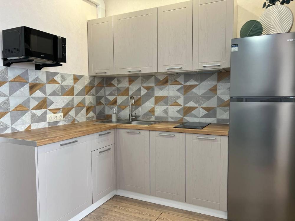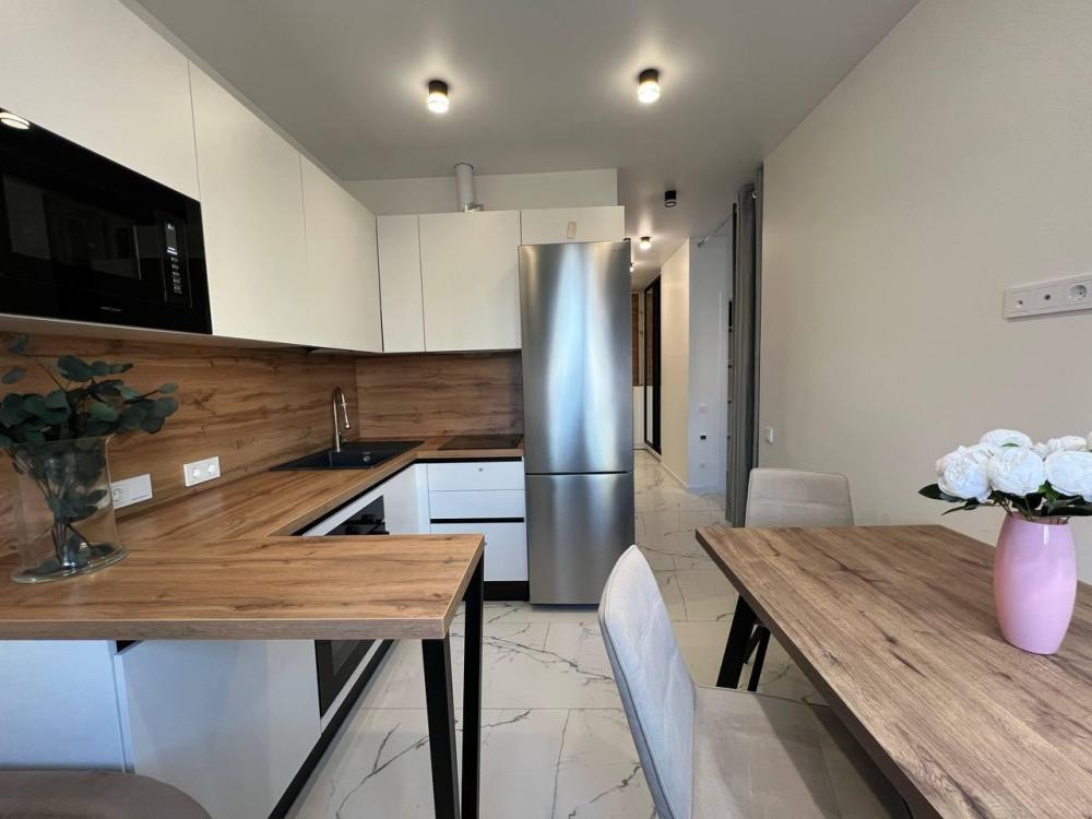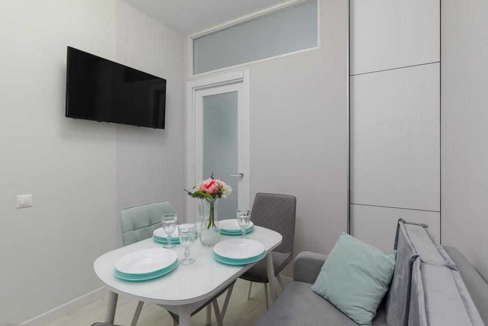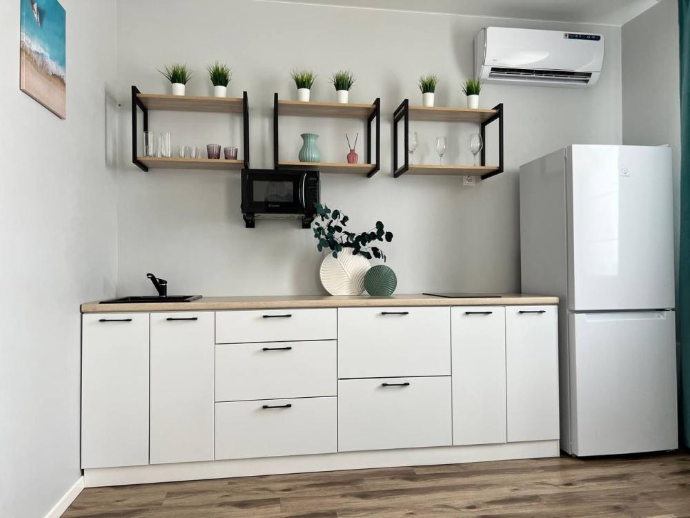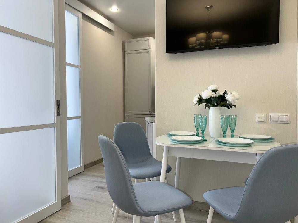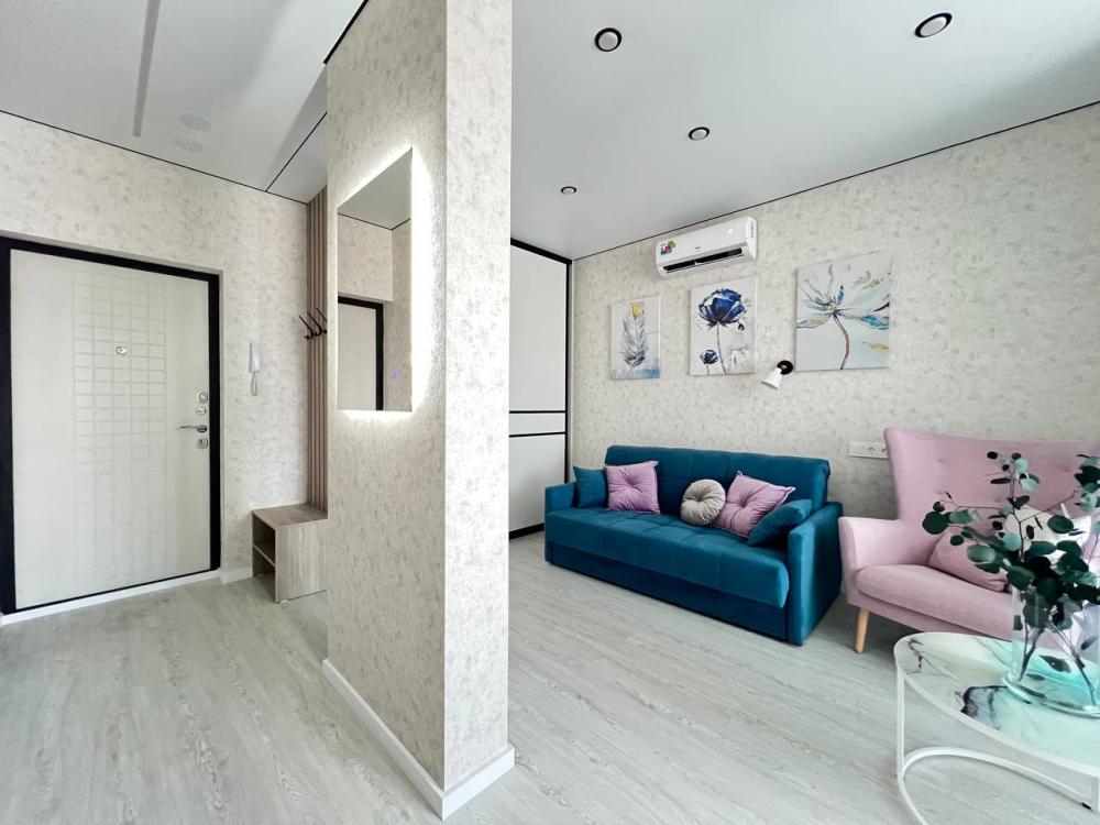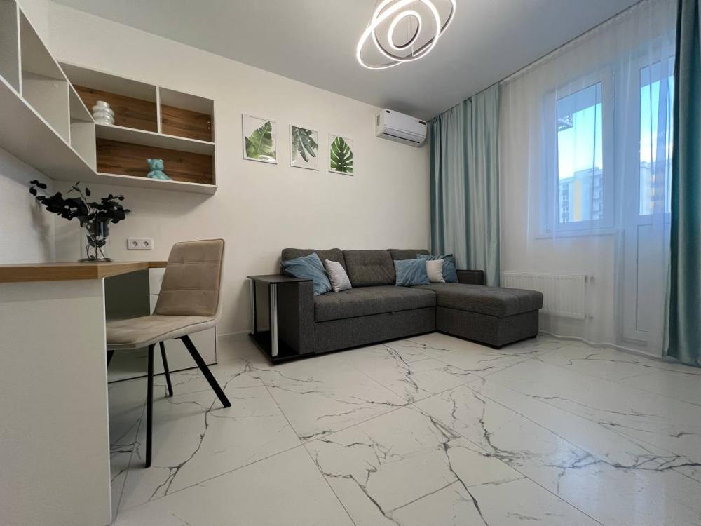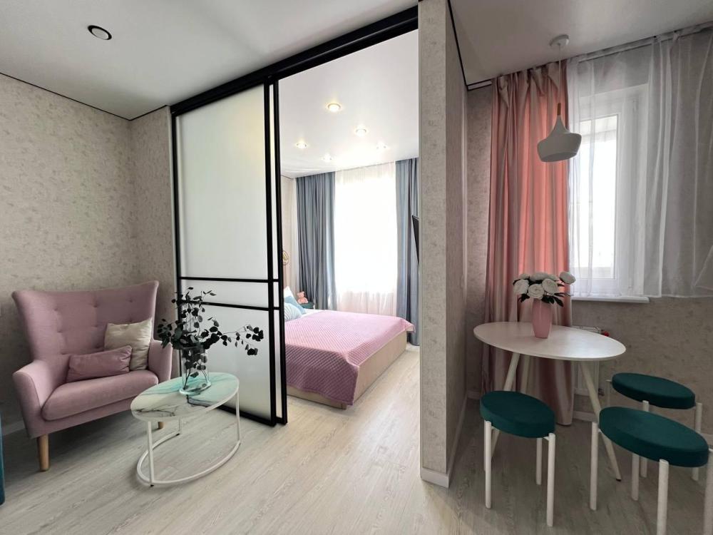 Стильная студия Делюкс в клубном ЖК. Подходит для комфортного проживания пары или семьи из 4-х человек. Оснащение кухни: индукционная плита, холодильник, эл.чайник, микроволновая печь, духовка), посуда и кухонная утварь. Совмещённый санузел с душевой кабиной, стиральной машиной, феном. WiFi, телевизор, Кондиционер. Шкаф, плечики для одежды, гладильная доска, утюг, сушилка. Постельное белье и полотенца. Средства гигиены, чистящие/моющие средства.