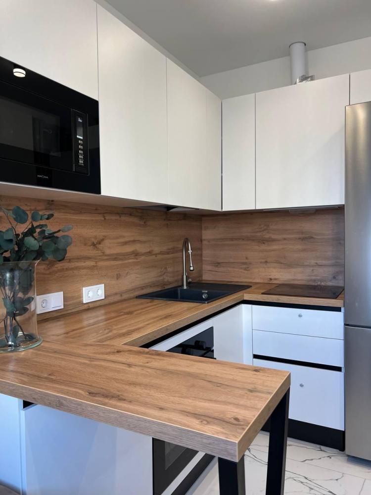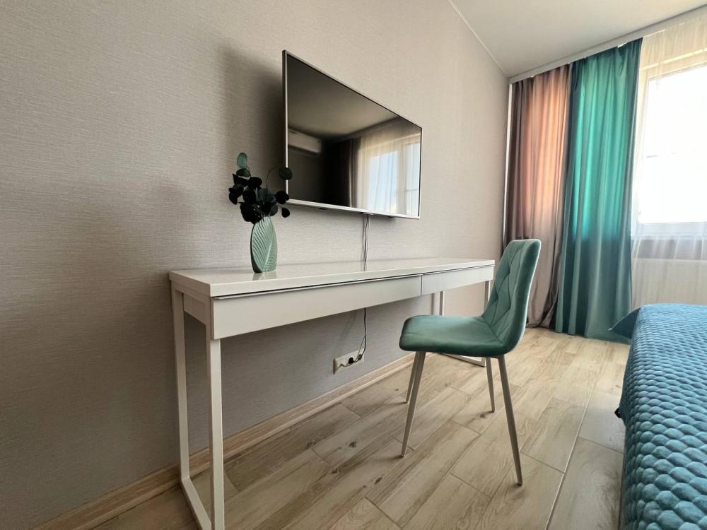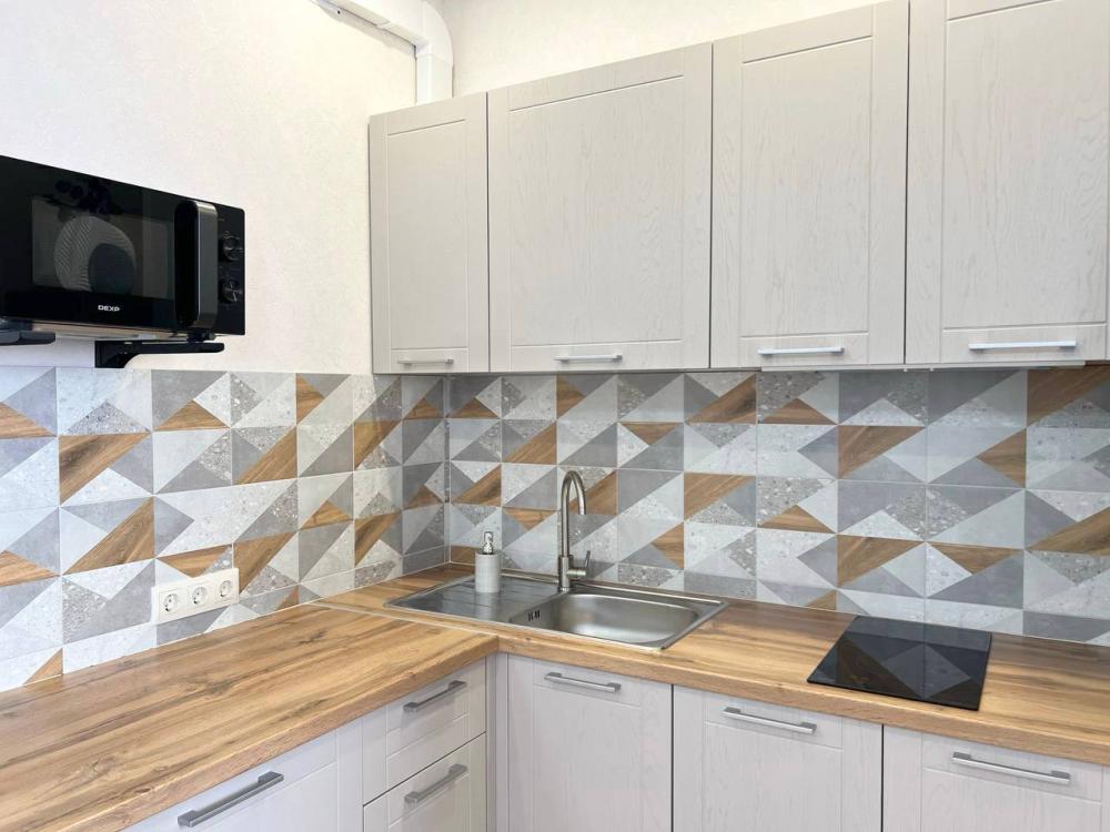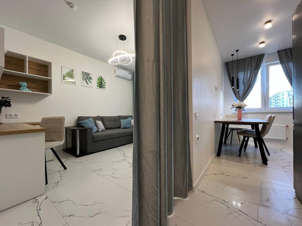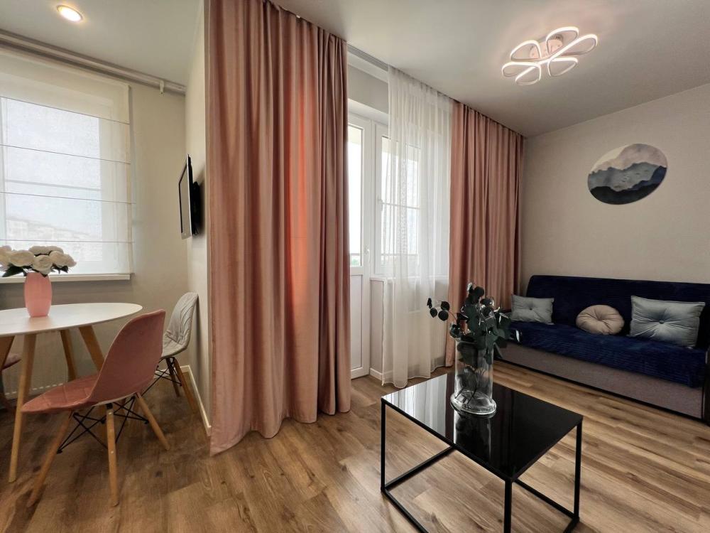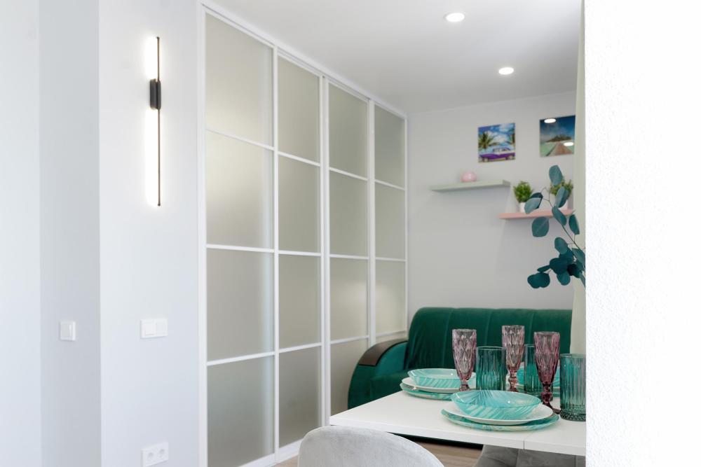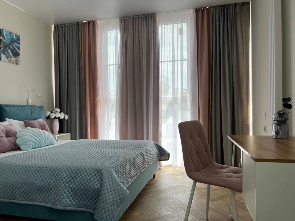 Стильная студия Делюкс в клубном ЖК. Подходит для комфортного проживания пары или семьи из 4-х человек. Оснащение кухни: индукционная плита, холодильник, эл.чайник, микроволновая печь, духовка), посуда и кухонная утварь. Совмещённый санузел с душевой кабиной, стиральной машиной, феном. WiFi, телевизор, Кондиционер. Шкаф, плечики для одежды, гладильная доска, утюг, сушилка. Постельное белье и полотенца. Средства гигиены, чистящие/моющие средства.