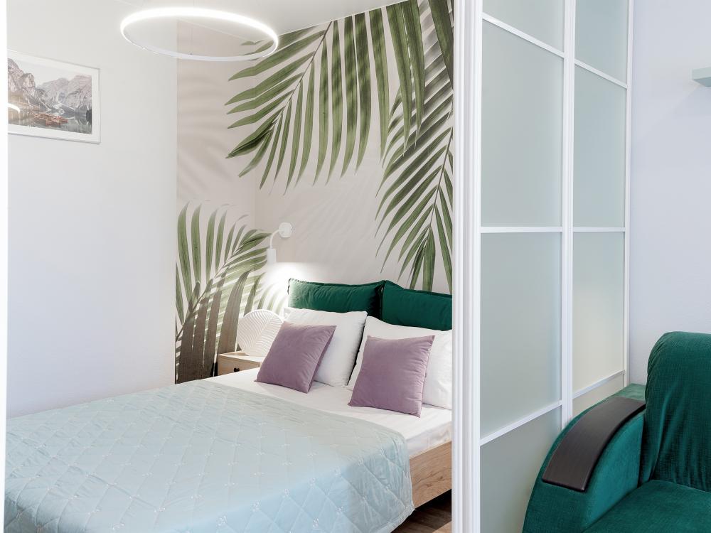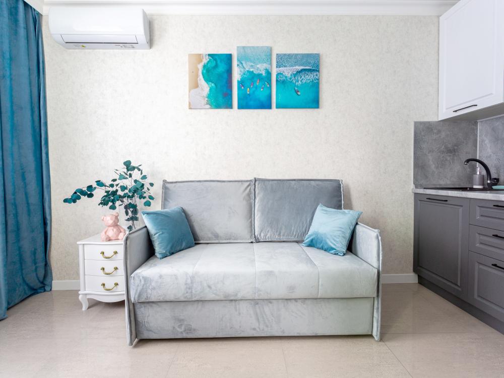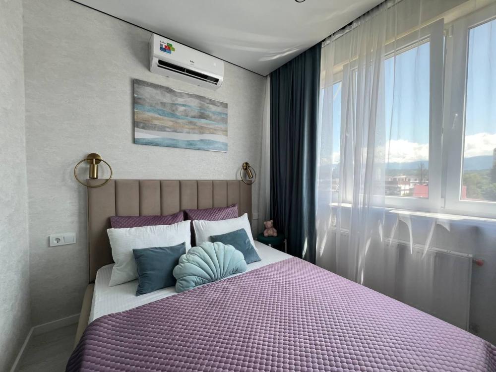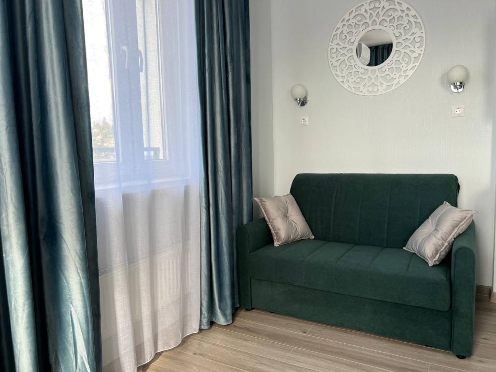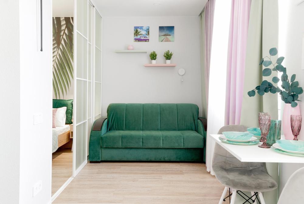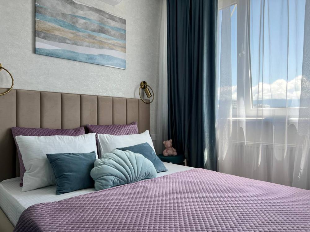 Уютная студия с восхитительным видом на горы в клубном ЖК. Подходит для комфортного проживания пары или семьи из 4-х человек. Кровать 140*200см диван-кровать 140*200см оснащение кухни: индукционная плита, холодильник, эл. чайник) Посуда и кухонная утварь Совмещённый санузел с душевой кабиной, стиральной машиной, феном. WiFi, телевизор, Кондиционер Шкаф, плечики для одежды, гладильная доска, утюг, сушилка. постельное белье и полотенца. Средства гигиены, чистящие/моющие средства.