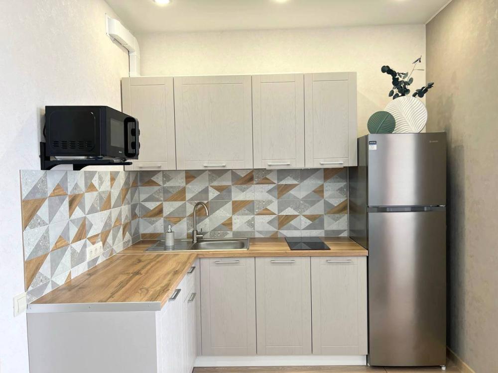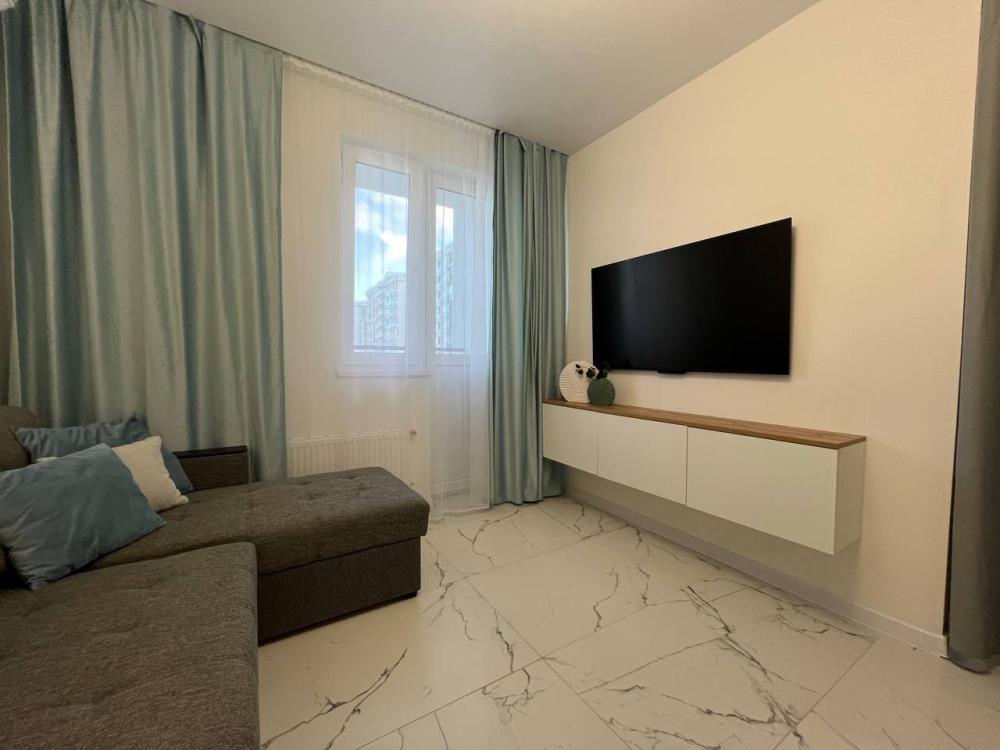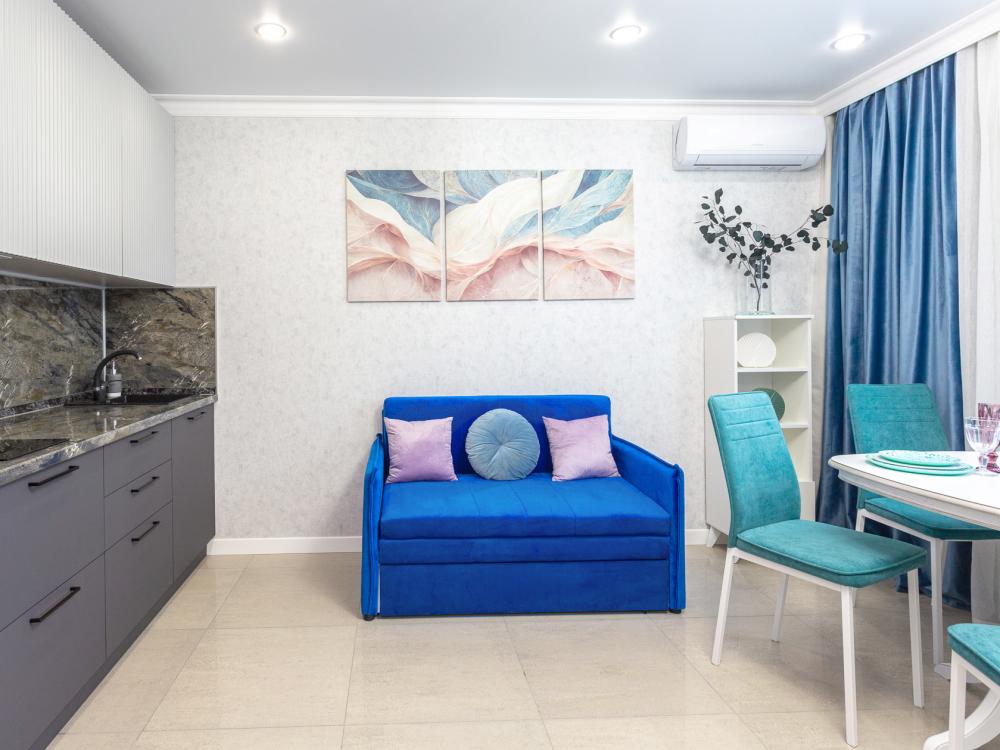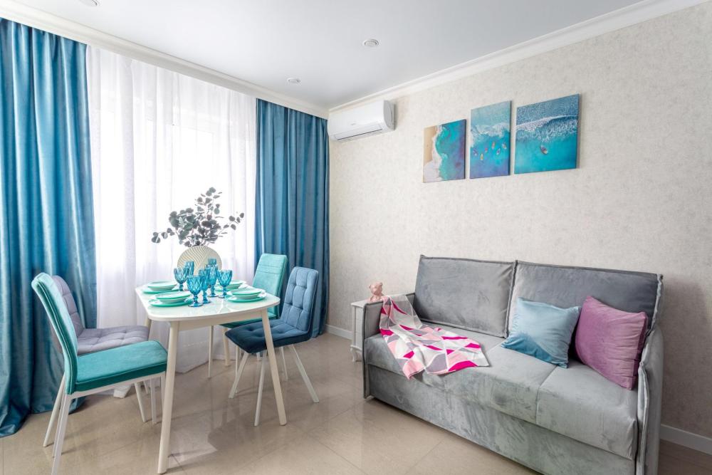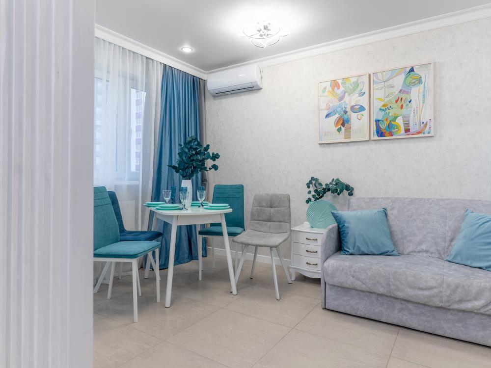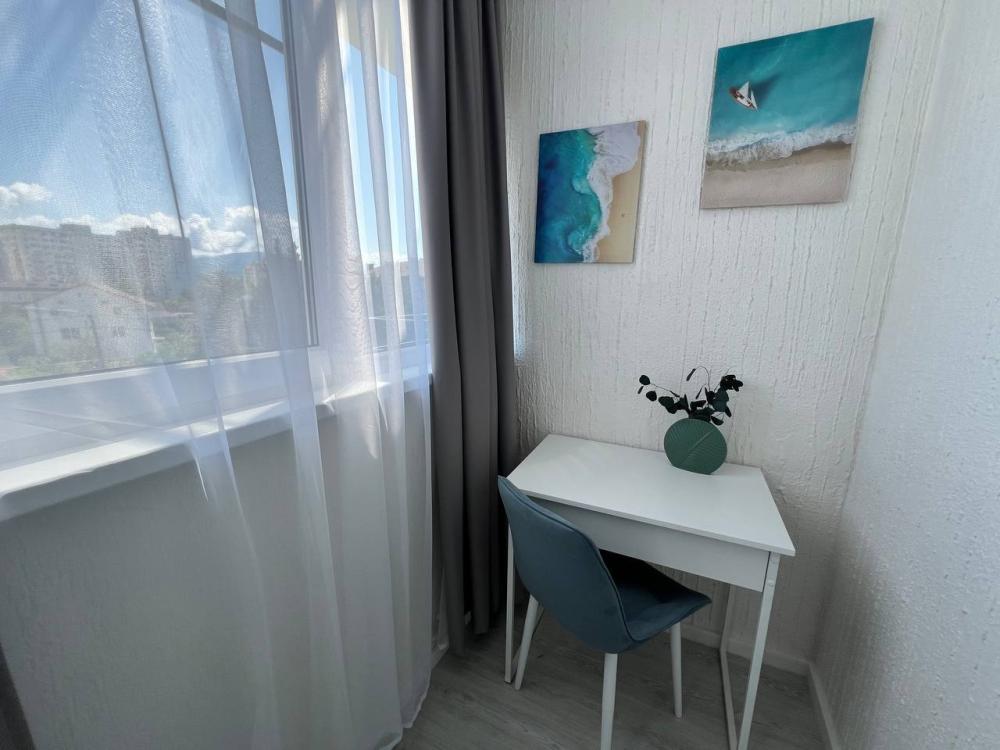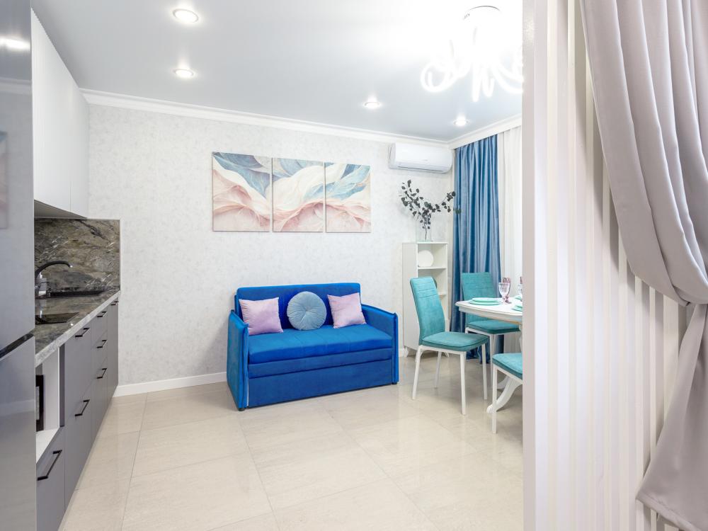 Уютная однокомнатная квартира с видом на море в клубном ЖК. Подходит для комфортного проживания пары или семьи из 4-х человек. оснащение кухни: индукционная плита, холодильник, эл.чайник, микроволновая печь) Посуда и кухонная утварь Совмещённый санузел с душевой кабиной, стиральной машиной, феном. WiFi, телевизор, Кондиционер Шкаф, плечики для одежды, гладильная доска, утюг, сушилка. постельное белье и полотенца. Средства гигиены, чистящие/моющие средства.
