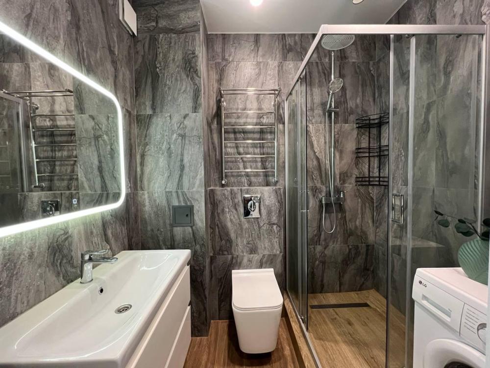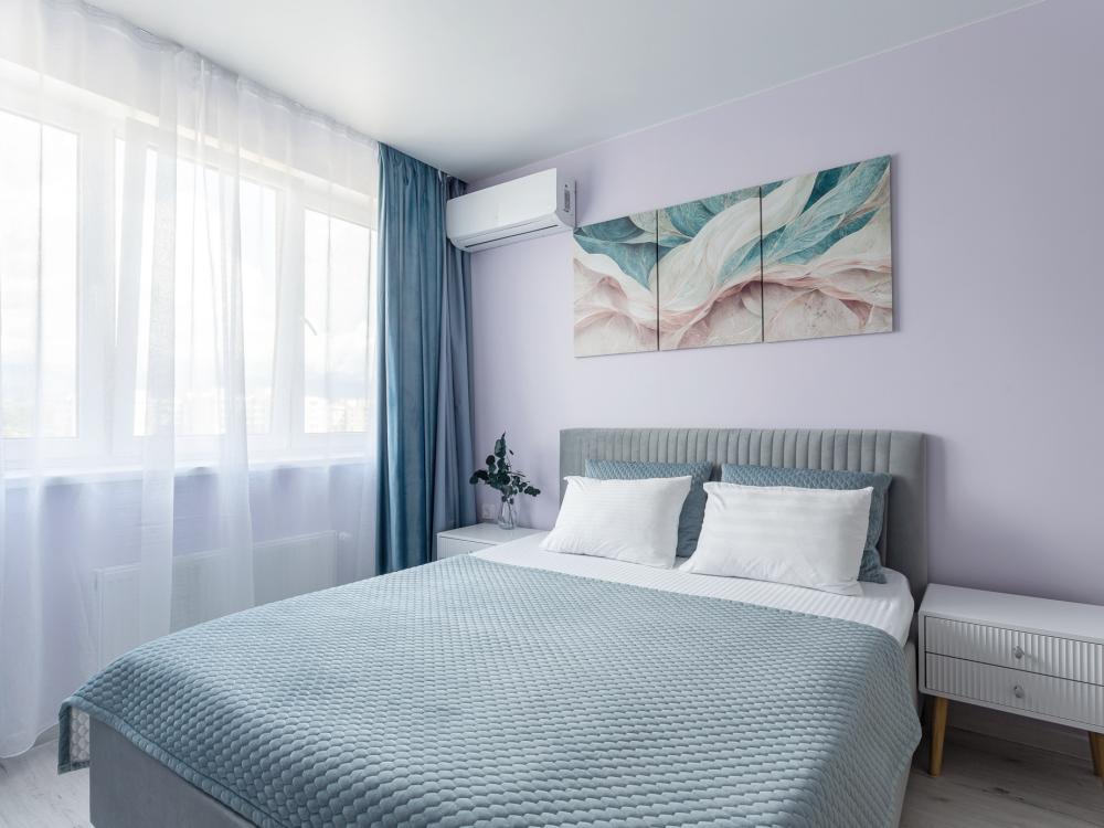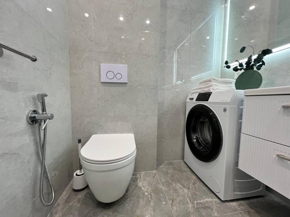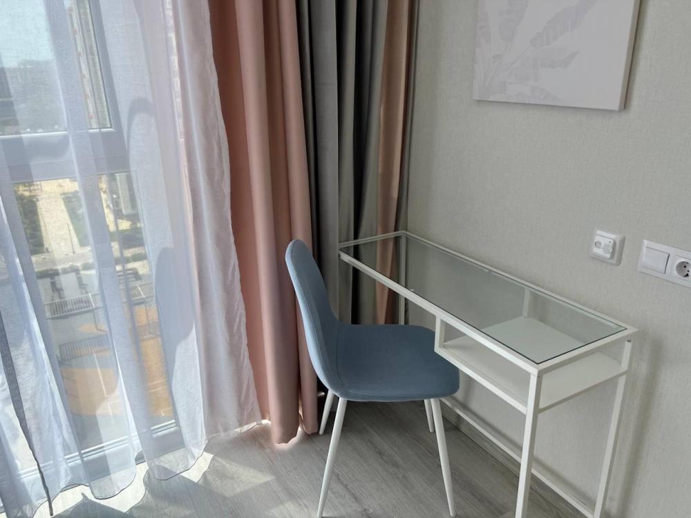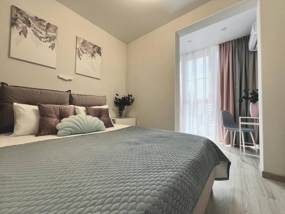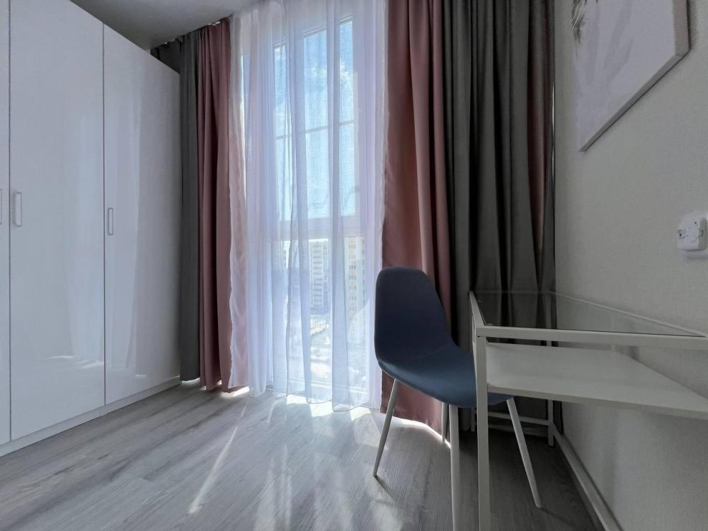 Стильная квартира с панорамными окнами в клубном ЖК. Подходит для комфортного проживания семьи до 5-х человек. кровать 160*200см диван-кровать 140*200см кресло кровать оснащение кухни: индукционная плита, холодильник, эл. чайник) Посуда и кухонная утварь Совмещённый санузел с душевой кабиной, стиральной машиной, феном. WiFi, телевизор, Кондиционер Шкаф, плечики для одежды, гладильная доска, утюг, сушилка. постельное белье и полотенца. Средства гигиены, чистящие/моющие средства.