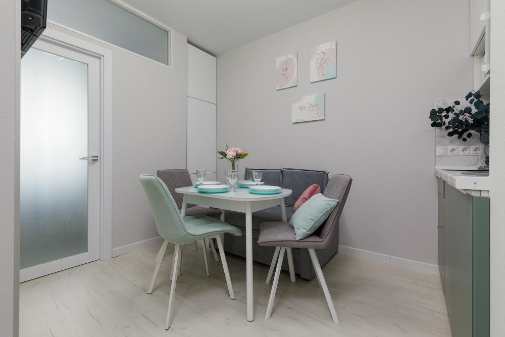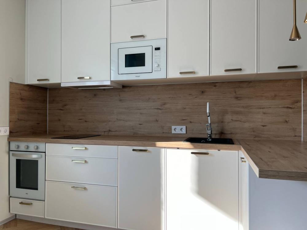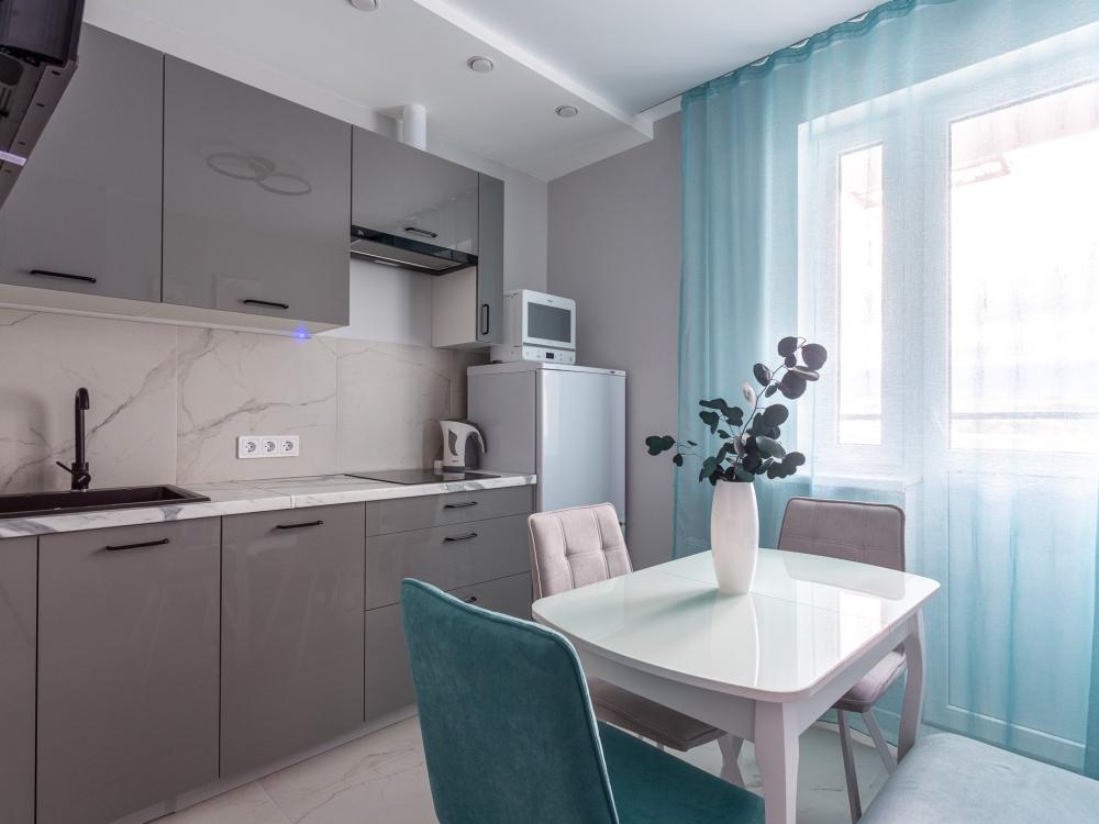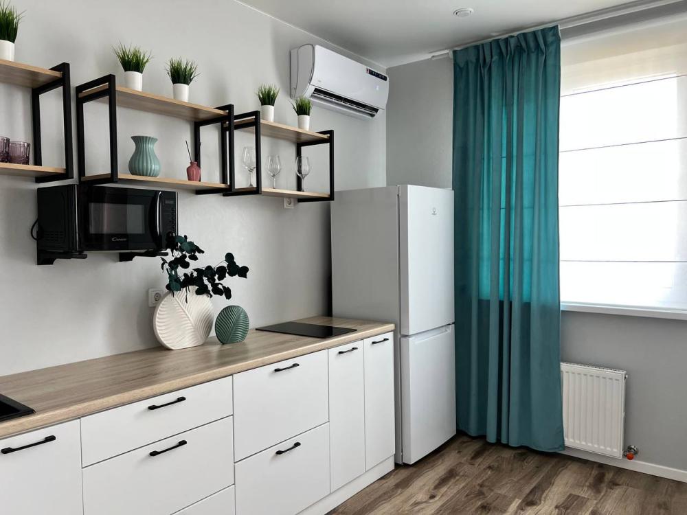 Светлая однокомнатная квартира в клубном ЖК. Подходит для комфортного проживания пары или семьи из 4-х человек. оснащение кухни: индукционная плита, холодильник, эл.чайник, микроволновая печь) Посуда и кухонная утварь Совмещённый санузел с душевой кабиной, стиральной машиной, феном. WiFi, телевизор, Кондиционер Шкаф, плечики для одежды, гладильная доска, утюг, сушилка. постельное белье и полотенца. Средства гигиены, чистящие/моющие средства.