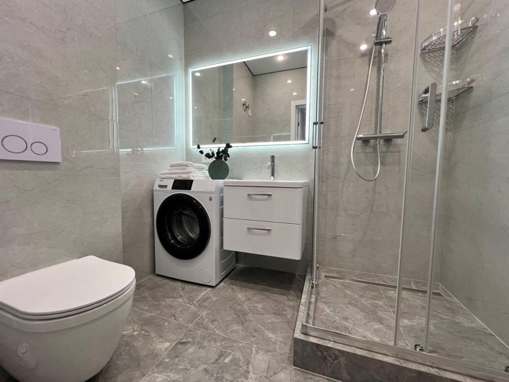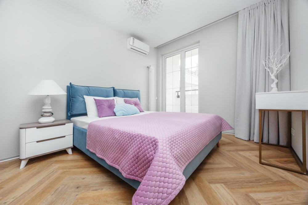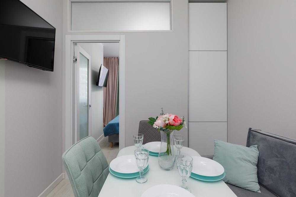 Вместительная двухкомнатная квартира в клубном ЖК. Подходит для комфортного проживания семьи до 6-х человек. Кровать 140*200см (спринбокс) диван-кровать 160*200см диван-кровать 140*200см оснащение кухни: индукционная плита, холодильник, эл.чайник, микроволновая печь) Посуда и кухонная утварь Совмещённых санузла с душевой кабиной, стиральной машиной, феном. WiFi, телевизор, Кондиционер Шкаф, плечики для одежды, гладильная доска, утюг, сушилка. постельное белье и полотенца. Средства гигиены, чистящие/моющие средства.