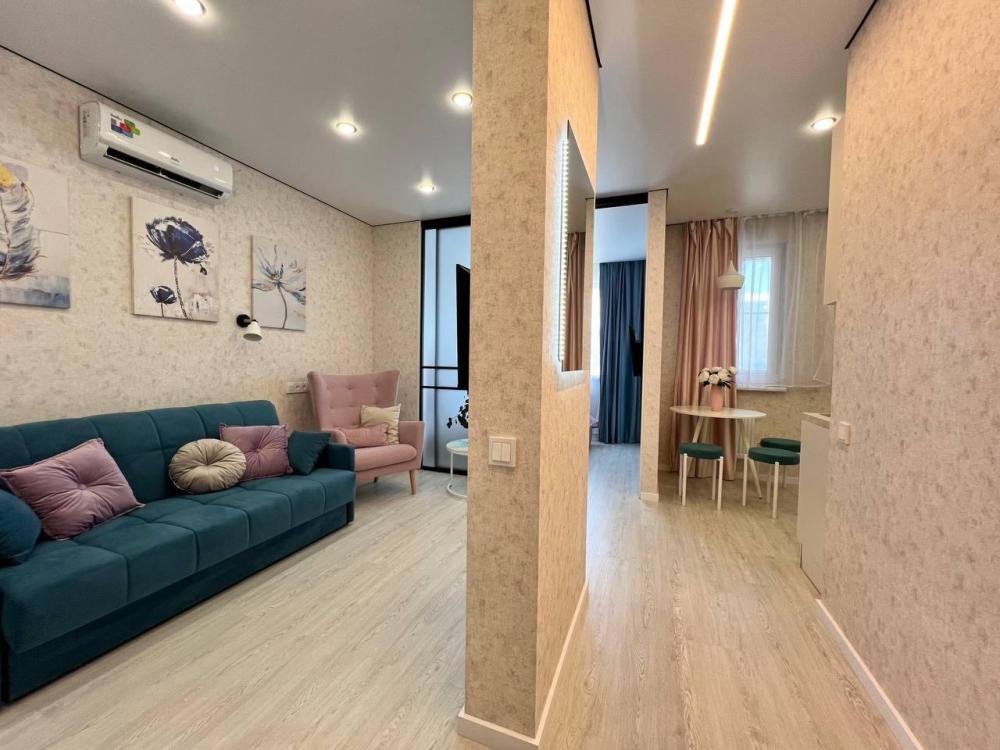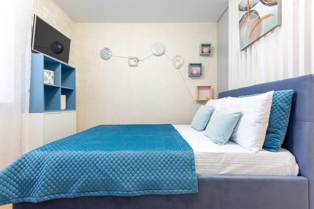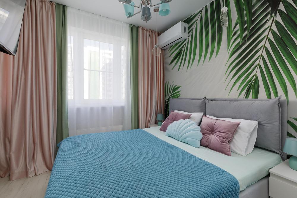 Оригинальная однокомнатная квартира в клубном ЖК. Подходит для комфортного проживания семьи до 5-х человек. кровать 160*200см диван-кровать 140*200см кресло кровать оснащение кухни: индукционная плита, холодильник, эл. чайник) Посуда и кухонная утварь Совмещённый санузел с душевой кабиной, стиральной машиной, феном. WiFi, телевизор, Кондиционер Шкаф, плечики для одежды, гладильная доска, утюг, сушилка. постельное белье и полотенца. Средства гигиены, чистящие/моющие средства.