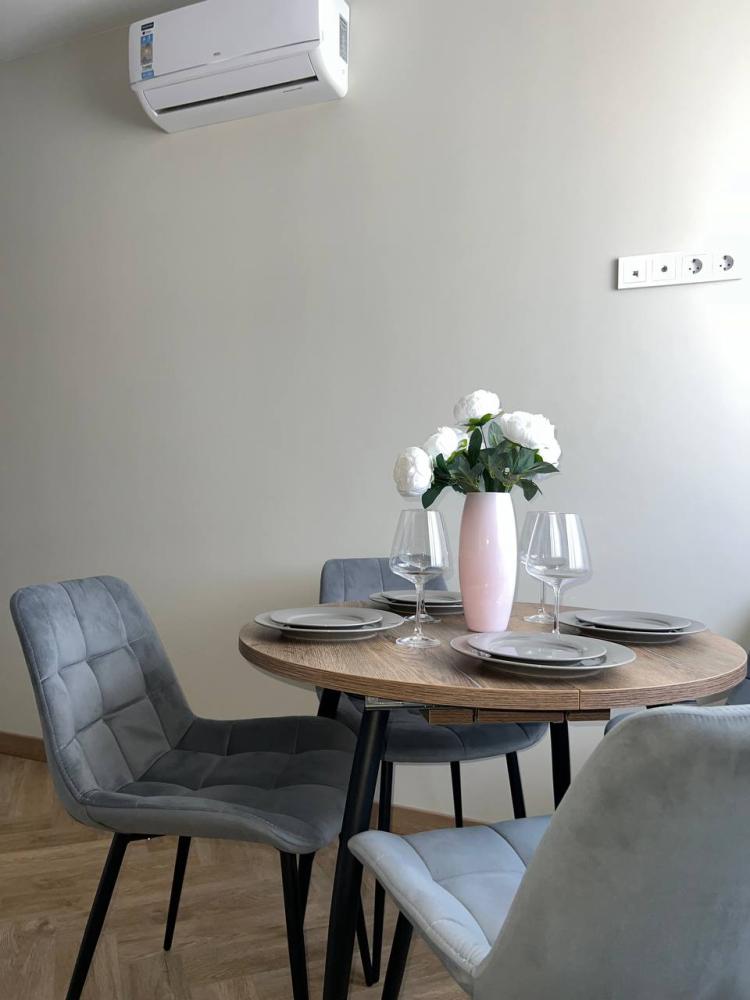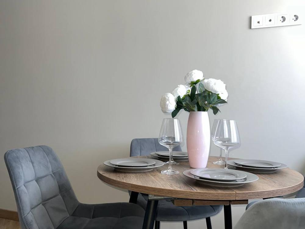 Стильная однокомнатная квартира в клубном ЖК. Подходит для комфортного проживания пары или семьи из 4-х человек. Кровать 160*200см диван-кровать 140*200см оснащение кухни: индукционная плита, холодильник, эл. чайник) Посуда и кухонная утварь Совмещённый санузел с душевой кабиной, стиральной машиной, феном. WiFi, телевизор, Кондиционер Шкаф, плечики для одежды, гладильная доска, утюг, сушилка. постельное белье и полотенца. Средства гигиены, чистящие/моющие средства.
