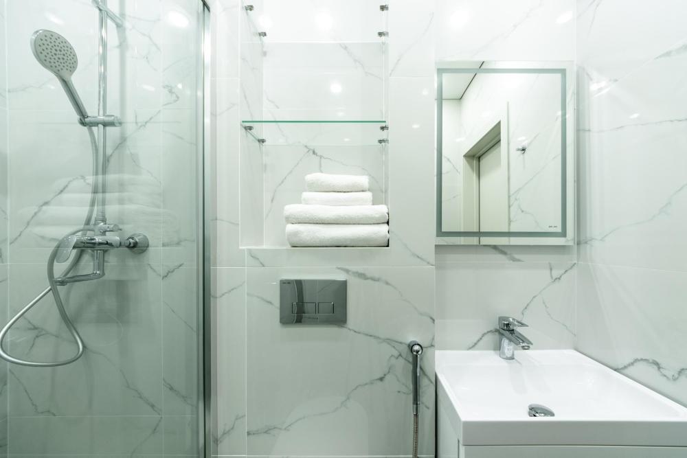 Просторная однокомнатная квартира в клубном ЖК. Подходит для комфортного проживания семьи до 6-х человек. Кровать 160*200см диван-кровать 140*200см Кровать 140*200см оснащение кухни: индукционная плита, холодильник, эл.чайник, микроволновая печь) Посуда и кухонная утварь Совмещённый санузел с душевой кабиной, стиральной машиной, феном. WiFi, телевизор, Кондиционер Шкаф, плечики для одежды, гладильная доска, утюг, сушилка. постельное белье и полотенца. Средства гигиены, чистящие/моющие средства.