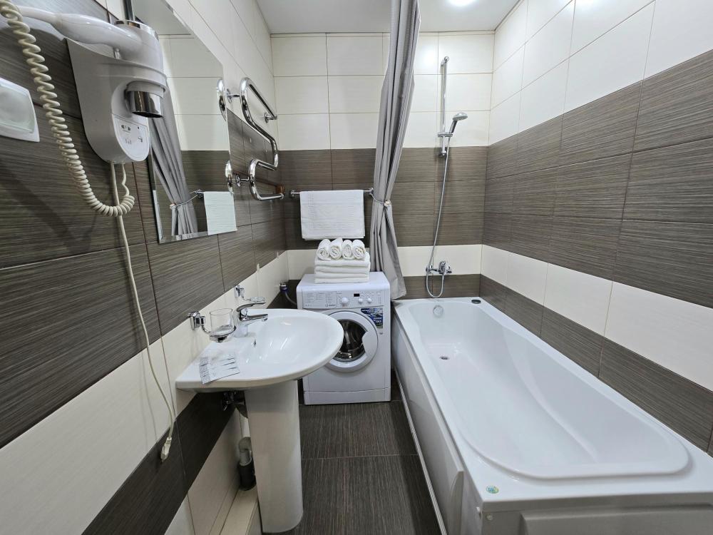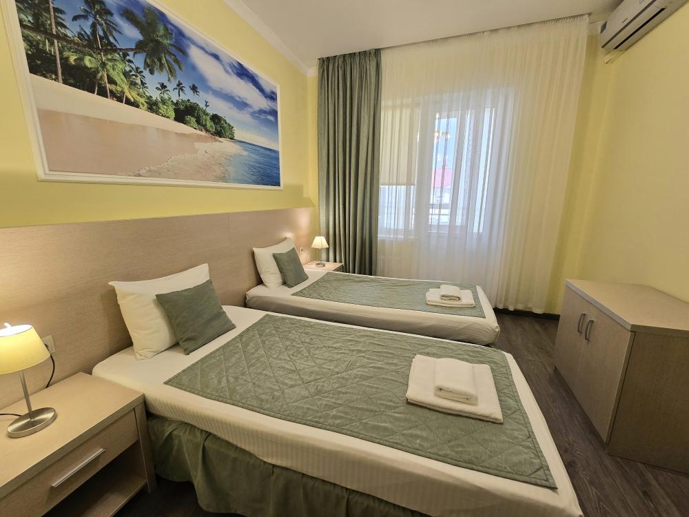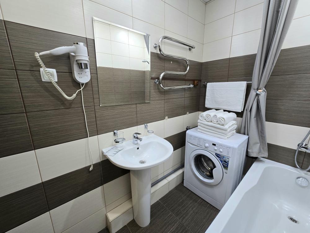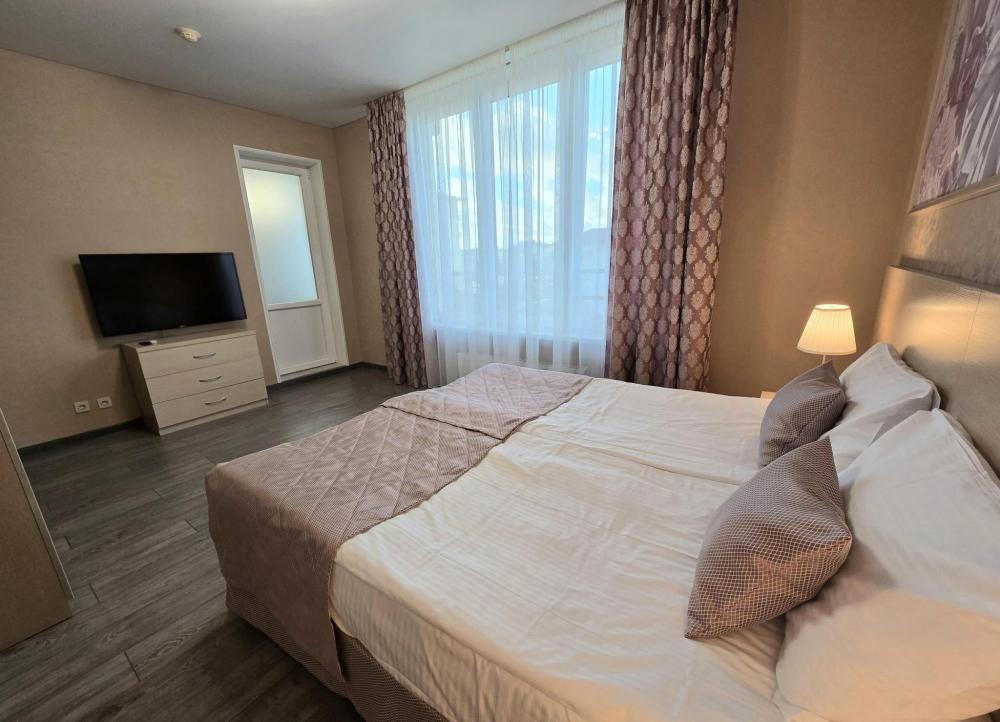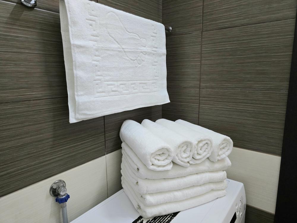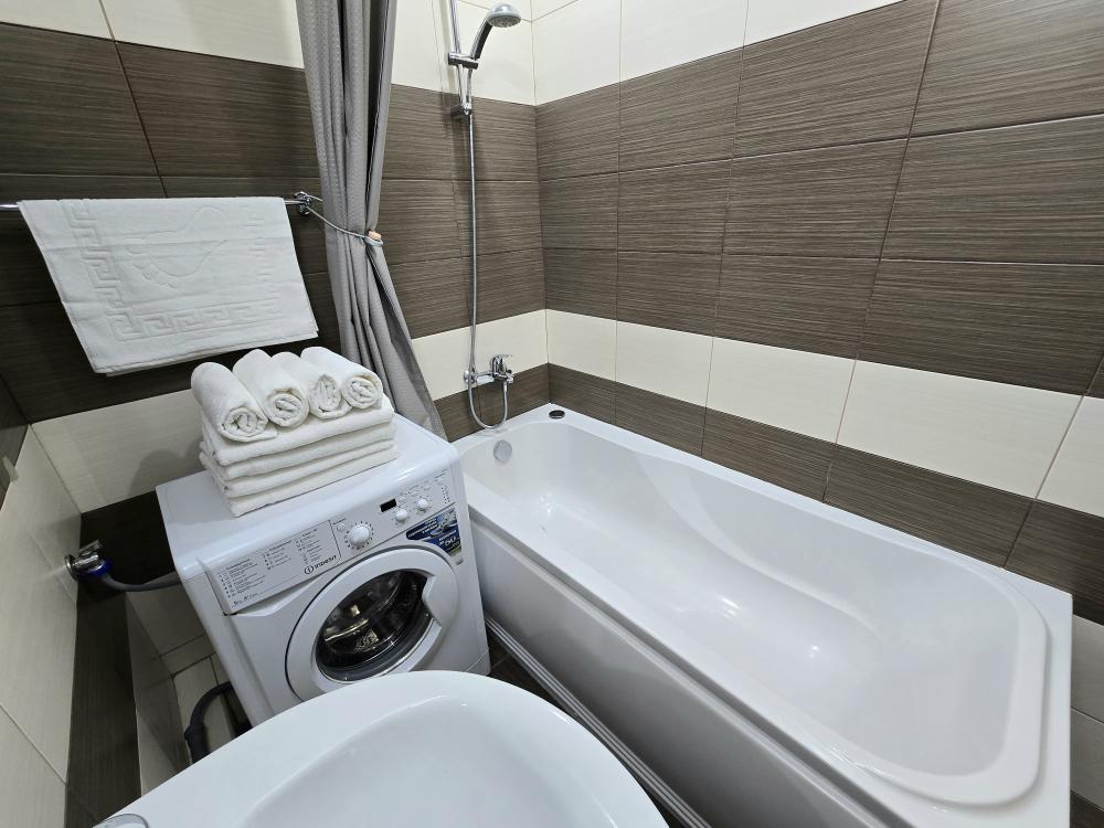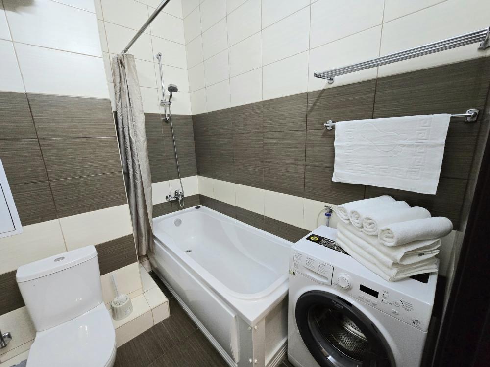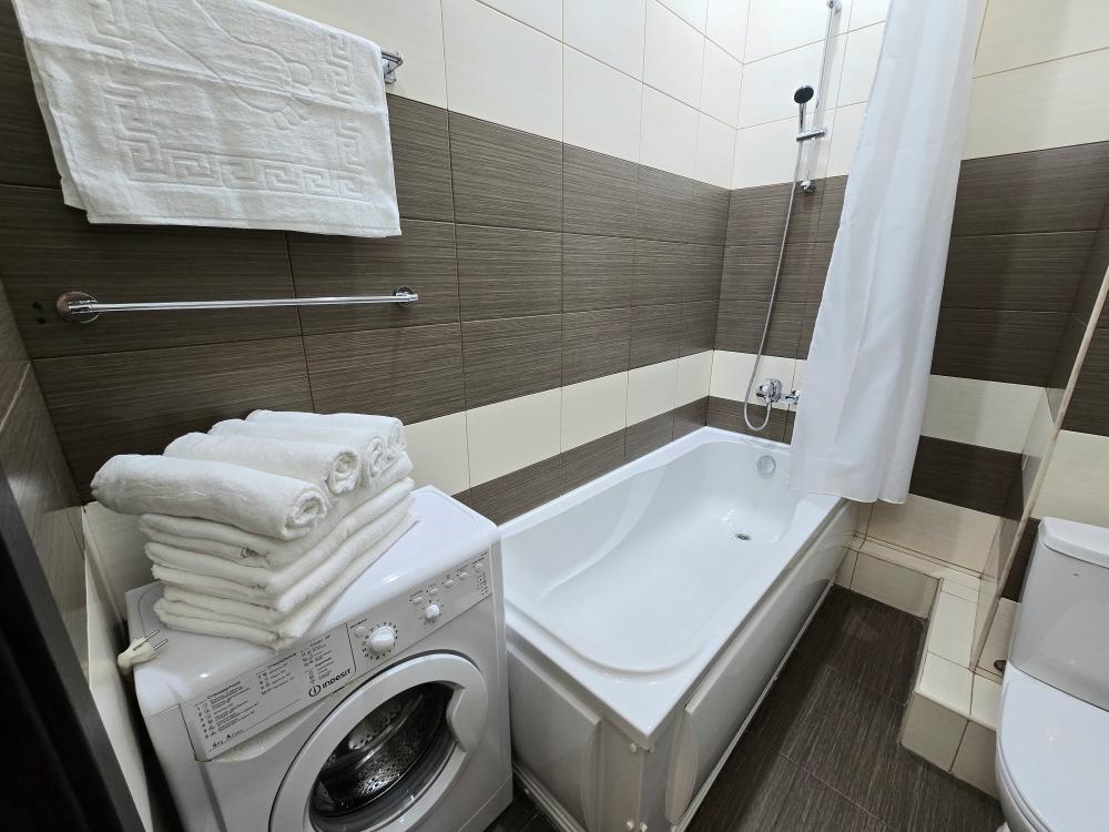 В квартире есть все необходимое для комфортного проживания : две двуспальные кровати, кухонная зона с техникой (холодильник, чайник, микроволновка, плита), постельное белье, полотенца, ванная комната, стиральная машина, кондиционер.