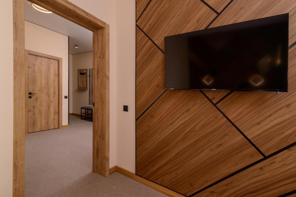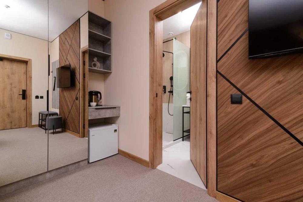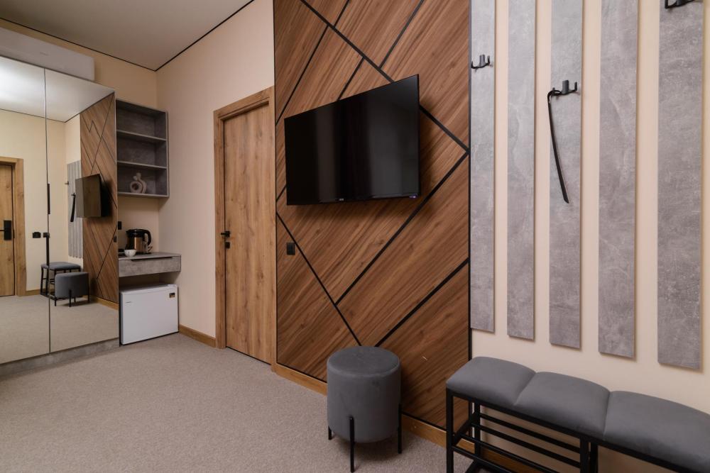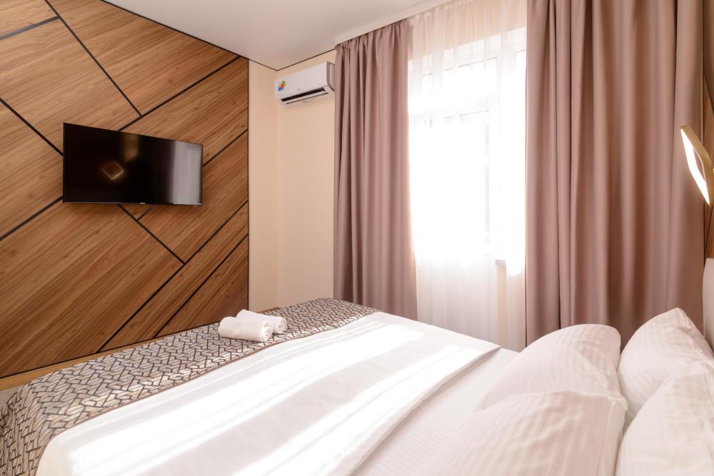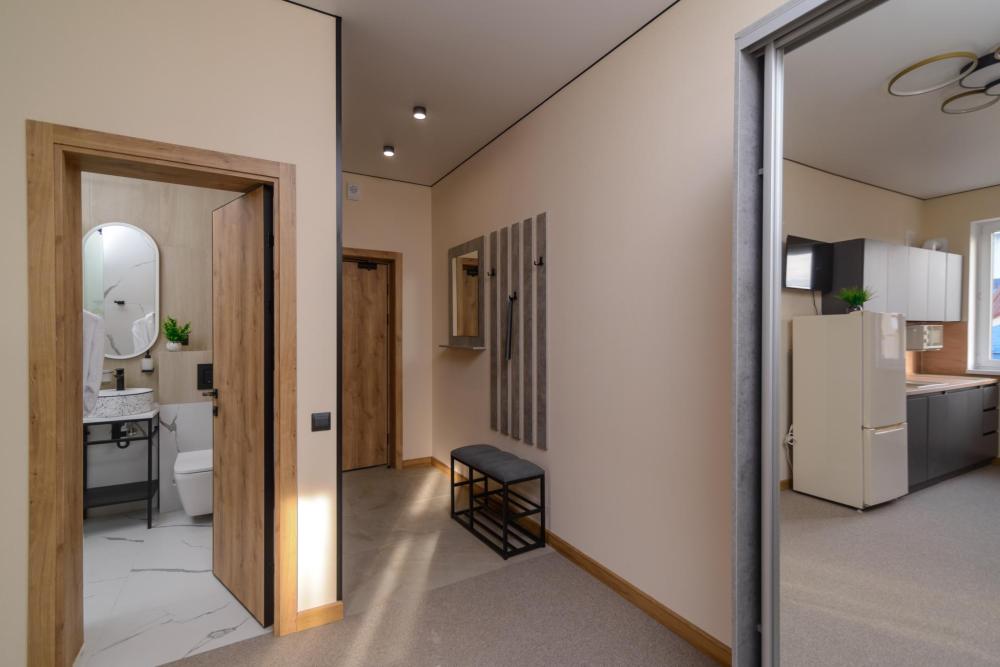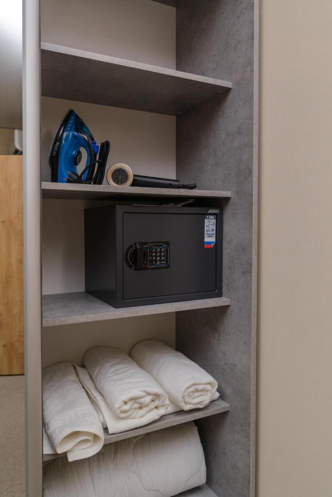 Комната "Комфорт" с кухонной зоной. Каждая комната продумана до мелочей: современный эргономичный дизайн гармонично сочетается с теплыми цветовыми гаммами — бежевыми и коричневыми тонами, создающими атмосферу уюта и спокойствия. Спальные места: двуспальная или две односпальные кровати. Для удобства в предусмотрена полностью оборудованная кухонная зона, с посудой и техникой. Постельное белье и полотенца предоставляются. Ванная комната с душем. Есть сейф, фен, лампа для чтения, телевизор.