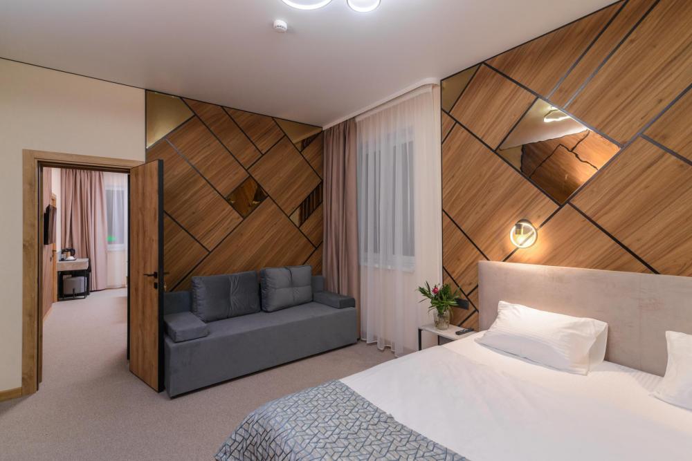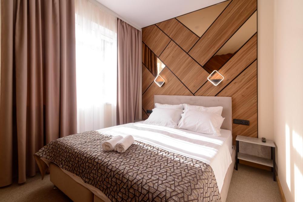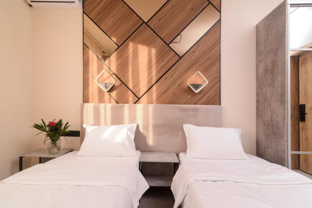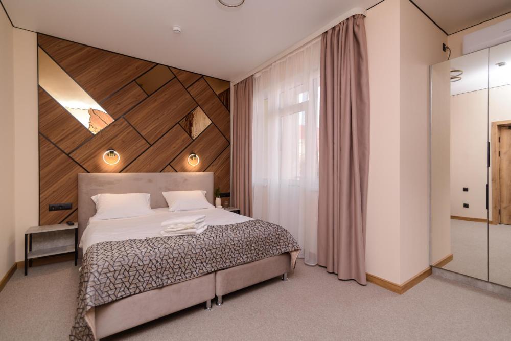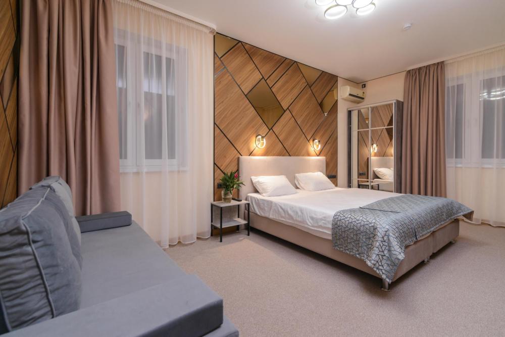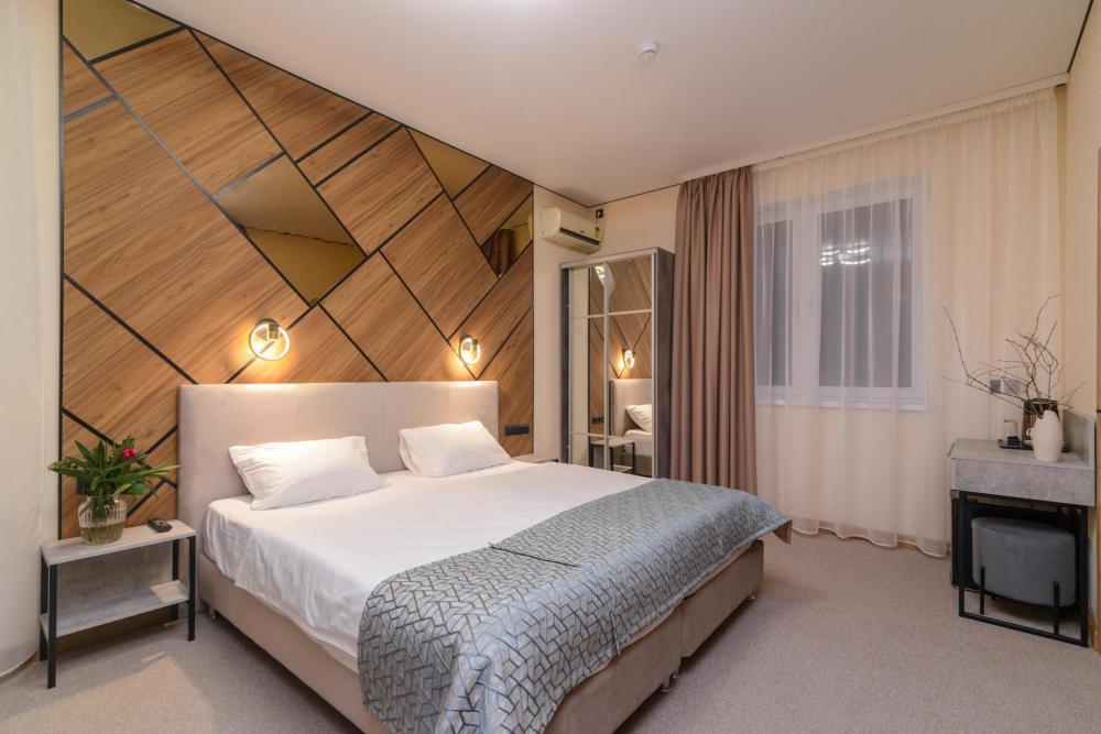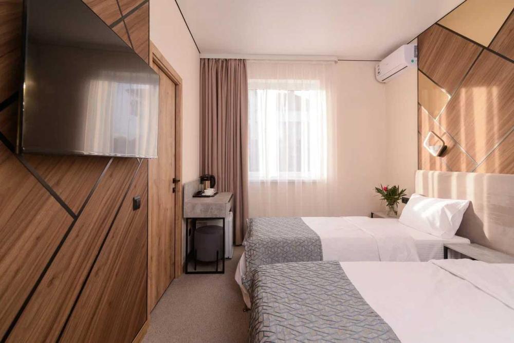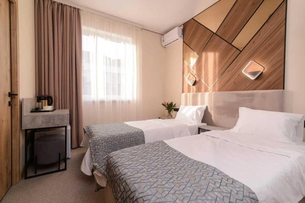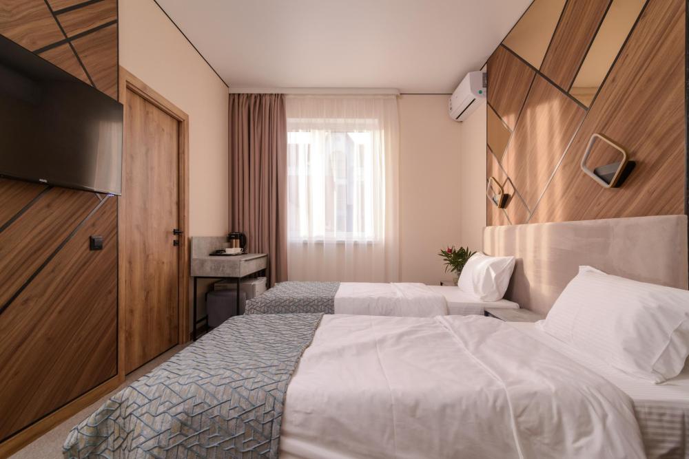 Двухместная комната стандарт. Каждая комната продумана до мелочей: современный эргономичный дизайн гармонично сочетается с теплыми цветовыми гаммами — бежевыми и коричневыми тонами, создающими атмосферу уюта и спокойствия. Спальные места: двуспальная или две односпальные кровати. Постельное белье и полотенца предоставляются. Ванная комната с душем. Есть сейф, фен, лампа для чтения, телевизор.