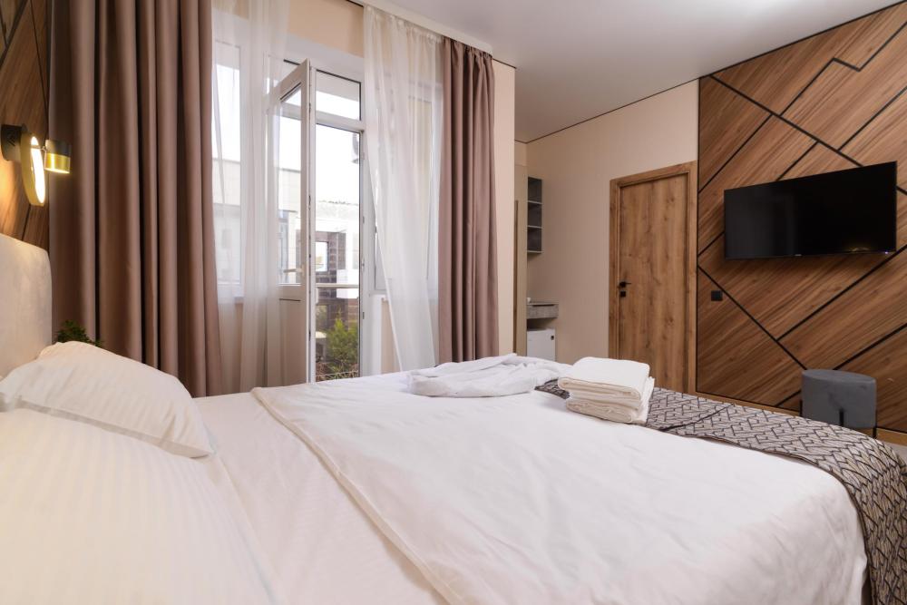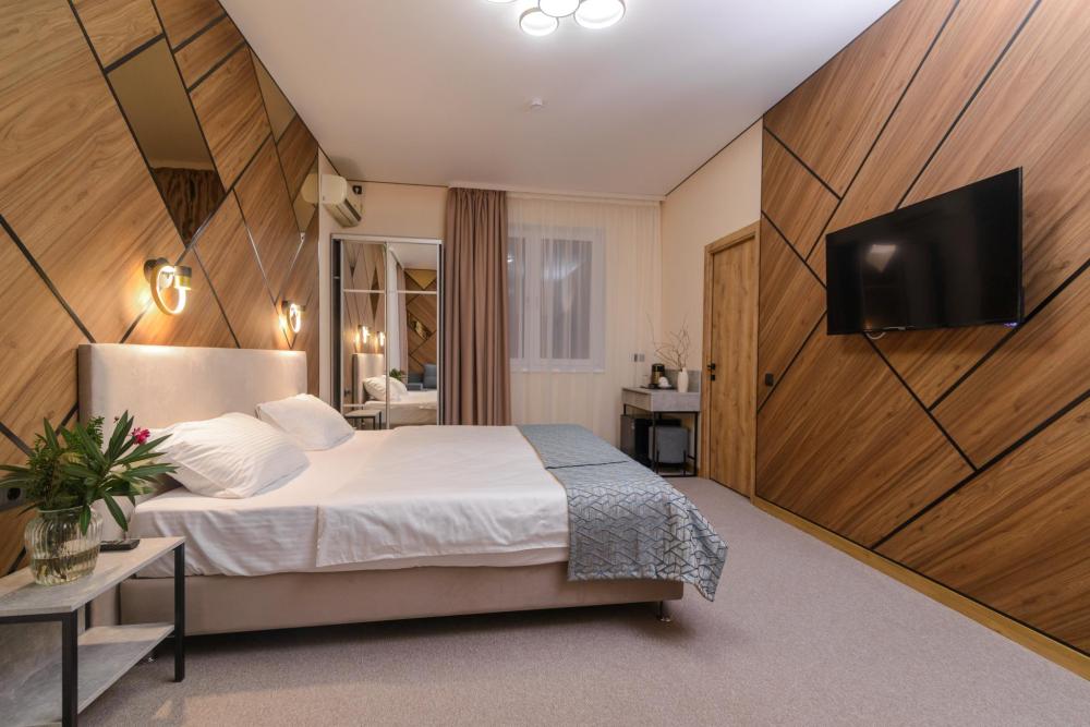 Двухместная комната стандарт с балконом. Каждая комната продумана до мелочей: современный эргономичный дизайн гармонично сочетается с теплыми цветовыми гаммами — бежевыми и коричневыми тонами, создающими атмосферу уюта и спокойствия. Спальные места: двуспальная или две односпальные кровати. Постельное белье и полотенца предоставляются. Ванная комната с душем. Есть сейф, фен, лампа для чтения, телевизор.