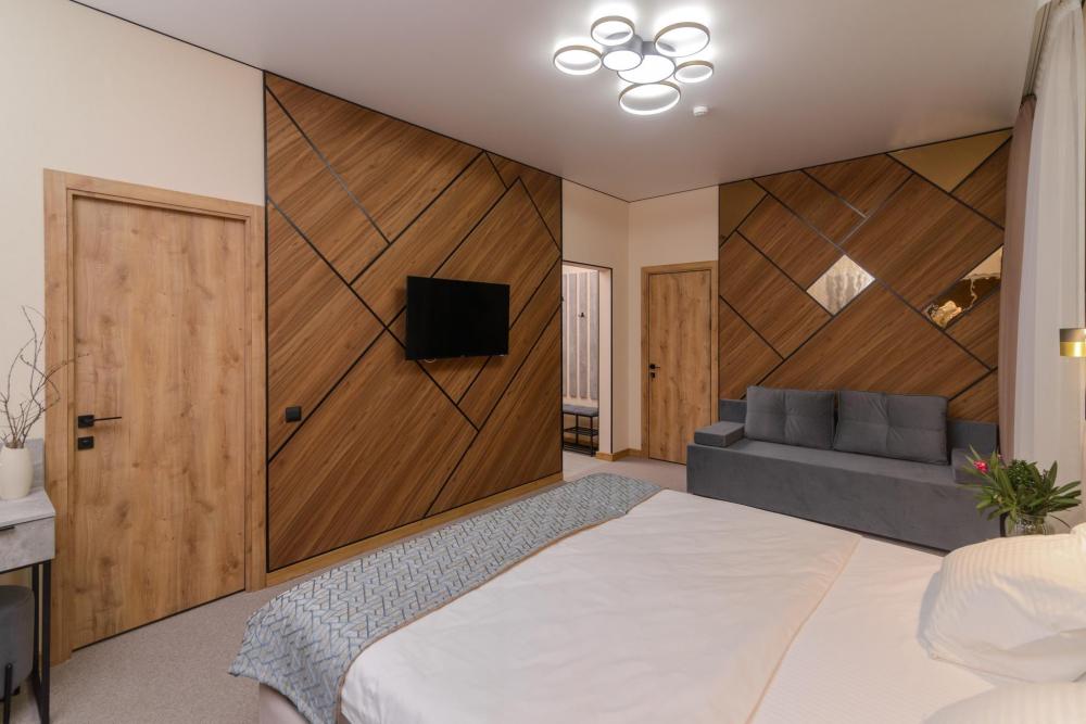 Комната Комфорт "Семейная". Спальные места: двуспальная кровать, диван. Постельное белье и полотенца предоставляются. Ванная комната с душем. Есть сейф, фен, лампа для чтения, телевизор.