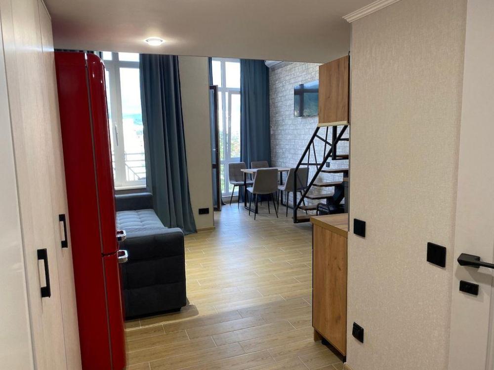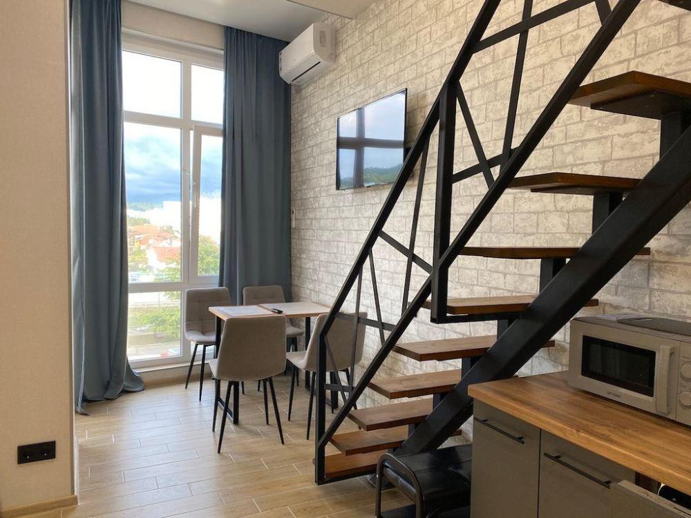 Уютная двухуровневая студия с балконом для 5 человек находится в Адлерском районе г.Сочи ФТ Сириус жилой комплекс "Грин Сейл Парк". В студии на первом уровне: раскладной диван (180 х 200), кухонный уголок с новой бытовой техникой (индукционная плита, чайник, посудомоечная машина, микроволновая печь, полноценный холодильник, кофемашина, миксер), а также есть все необходимое для самостоятельного приготовления. В вашем распоряжении Wi-Fi, Смарт-телевизор, кондиционер, вместительный шкаф. Обеденная зона расположена у окна с рядом с балконом. На балконе для вас предусмотрена возможность посидеть с чашкой кофе или бокалом вина. В распоряжении гостей на втором уровне: двуспальный (160 х 200) и односпальный (90 х 200) матрасы, столик со стульчиком и мягким пуфом. В ванной комнате для вас стиральная машина, фен, пылесос, водонагреватель и необходимые принадлежности.
