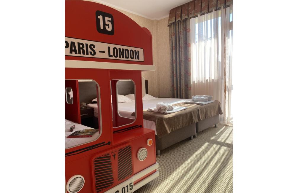 Идеальный семейный номер на четверых человек, площадью 21 кв метр. В номере: 2-х спальная кровать и двухъярусная кровать, заправленные чистым постельным бельем. Есть все, для вашего удобства: холодильник, телевизор, письменный стол, 2 стула, 2 тумбочки, кондиционер, быстрый интернет, шкаф для одежды, фен, балкон. Номер с удобствами, каждому гостю выдается гигиенический набор и 3 полотенца