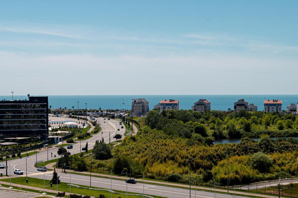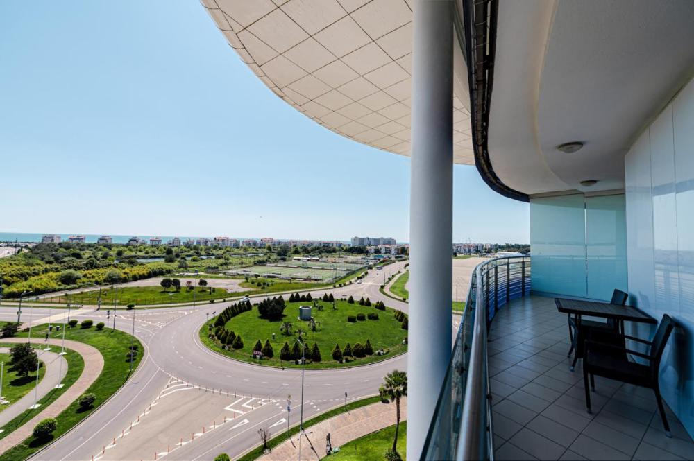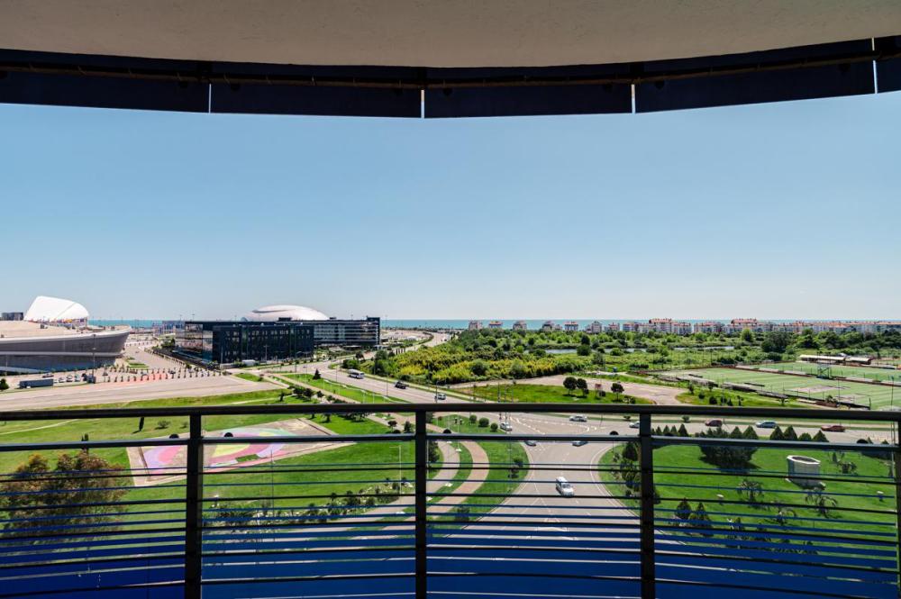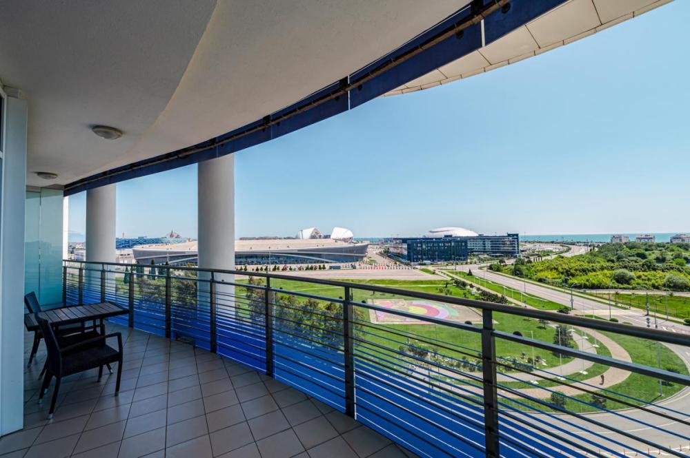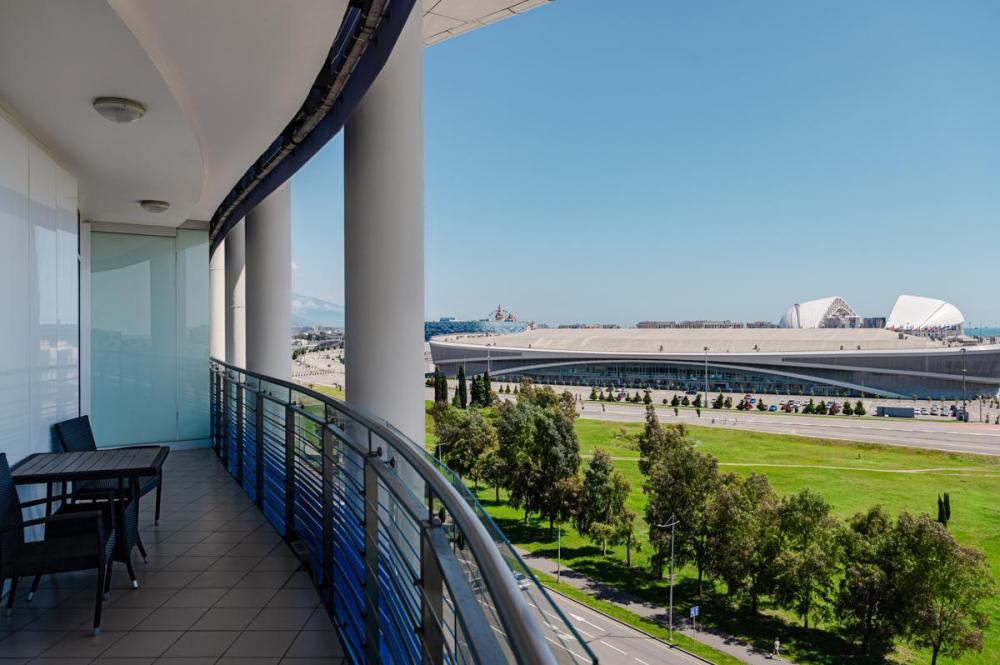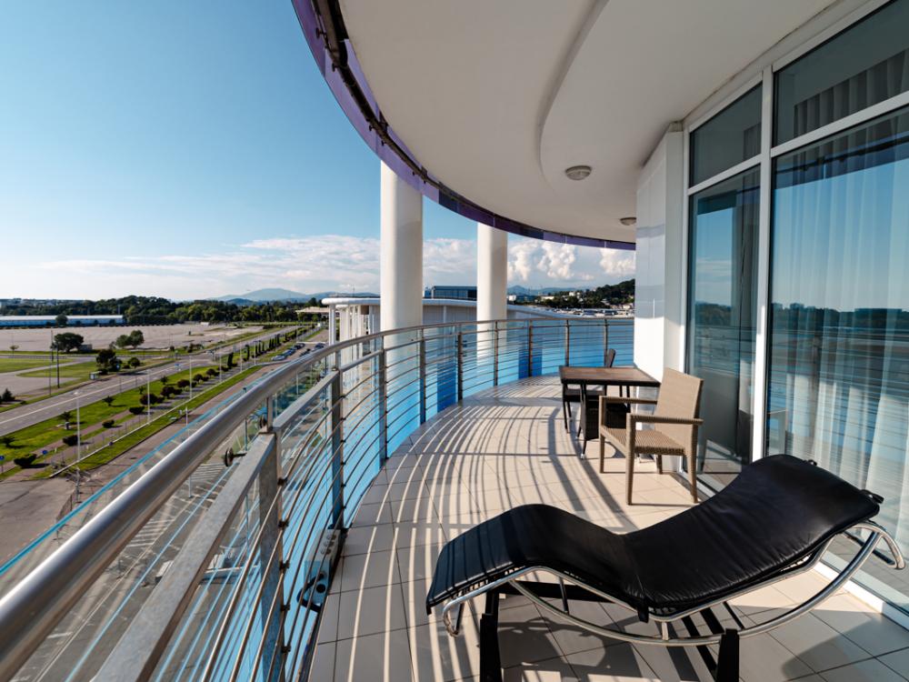 Уютные однокомнатные номера оборудованы большой двуспальной кроватью и всем необходимым для комфортного отдыха. В каждом номере имеется балкон с потрясающими видами на достопримечательности Олимпийского парка, Чёрное море или Кавказские горы.». Новое значение «Однокомнатный номер с панорамными окнами. На первых этажах находится терраса, остальные апартаменты с балконом. Из номера открывается красивый вид на порт, горы, парк или внутренний двор. Первая категория.