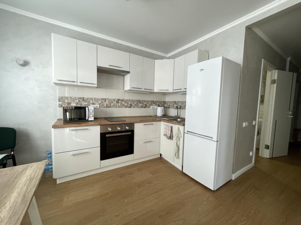 Современная светлая квартира с новым ремонтом ждет Вас! В квартире есть все, что необходимо для комфортного проживания и отдыха. Выделенная зона спальни с просторной двуспальной кроватью с ортопедическим матрасом, широкий и очень удобный раскладывающийся диван....