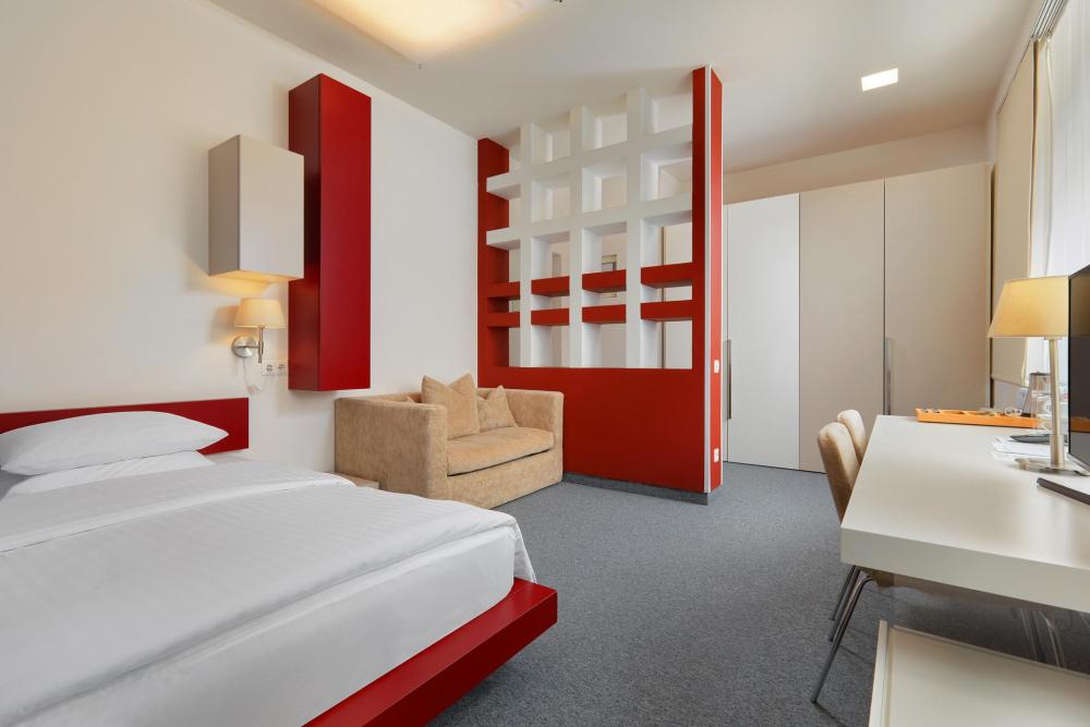 В номере: - Кровать (120х200 см) - Диван, который можно использовать в качестве дополнительного спального места - Платяной шкаф с вешалками - Индивидуальная система кондиционирования воздуха - Телефон с возможностью междугородних и международных звонков - Мини-сейф для хранения документов и ценных вещей - Мини-холодильник - Утюг и гладильная доска - Электрический чайник и чайный сервиз - Ванная комната оснащена душевой кабиной, феном, полотенцами и необходимыми банными принадлежностями
