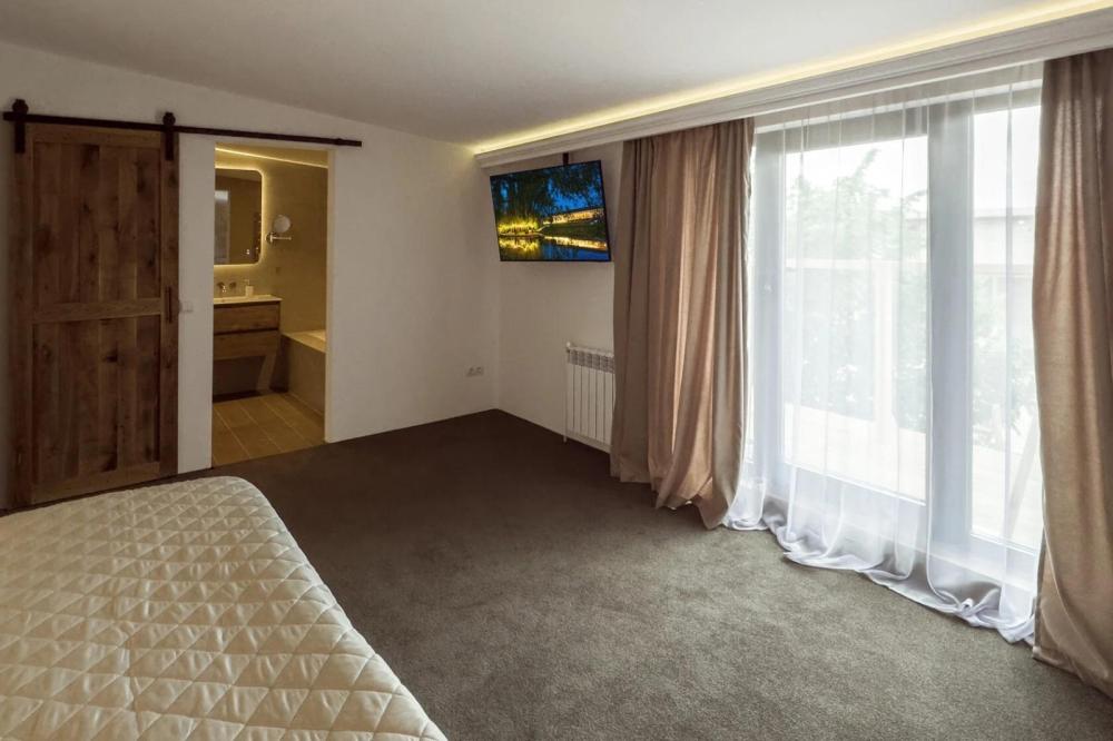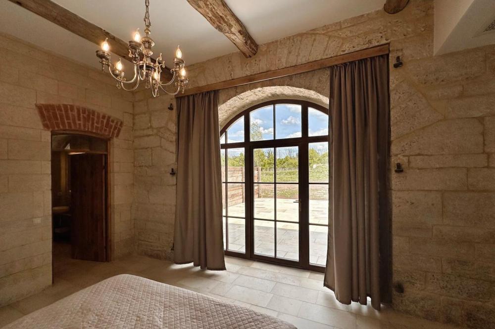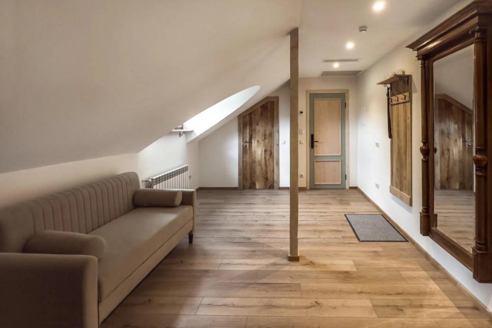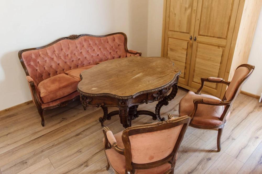 Вместимость номера до 4-х гостей (двухспальная кровать 180сх200см + раскладной диван 140х200см). Номер расположен в восстановленной крепости XIX века на первом этаже, имеет оборудованную кухню и обеденную зону. Панорамное окно с выходом на большую площадку для барбекю с уличной мебель. Размещение с животными в номерах данной категории запрещено.