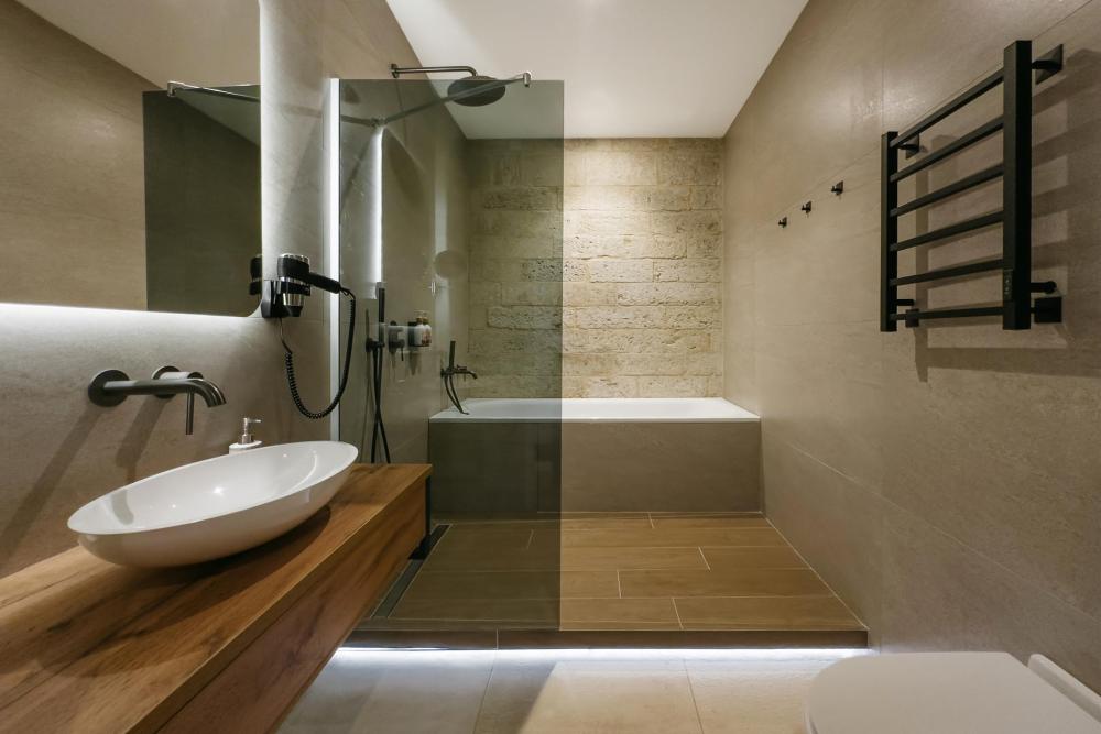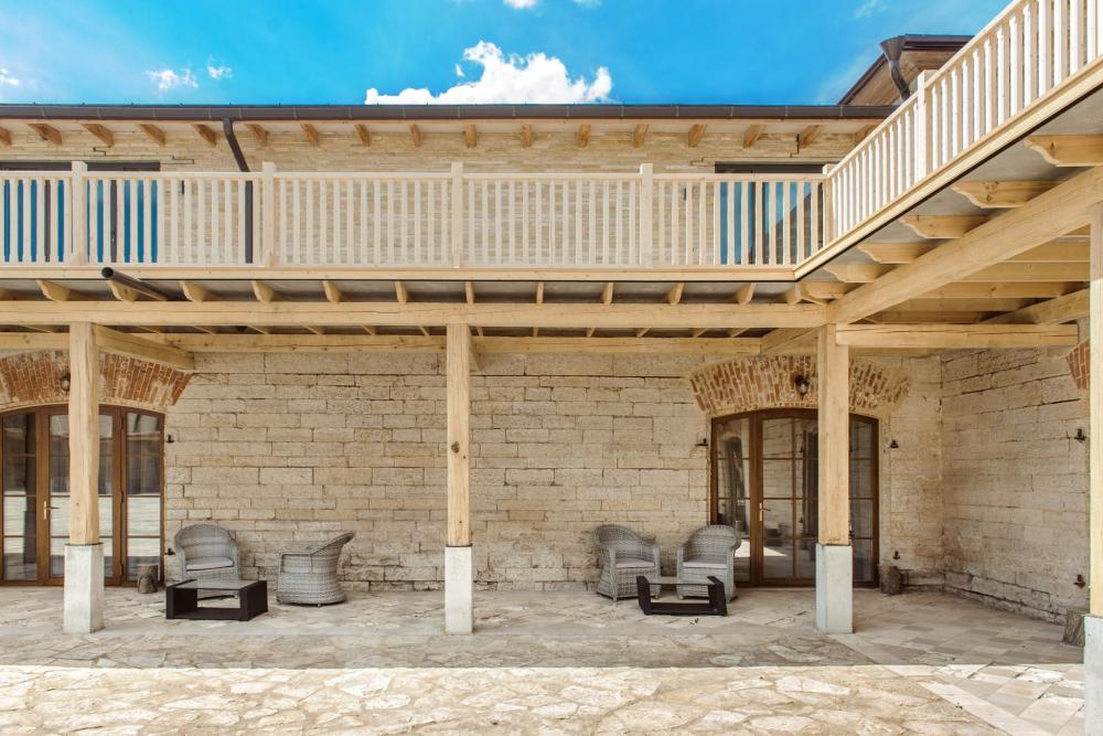 2 номера категории «Улучшенный стандарт» находятся на втором этаже в Крепости; Однокомнатный номер - 24-26 кв.м.; Двухспальная кровать 160*200см; Отдельно стоящая ванная, душ, амбарная дверь в санузел; Кондиционер, Smart-ТВ, Wi-Fi, чайник, стол, стул, шкаф; Вид во внутренний дворик; Лаунж-зона на балконе с шезлонгами; Номера одной категории могут отличаться ввиду исторических планировок. Размещение с домашними животными в номерах данной категории запрещено.
