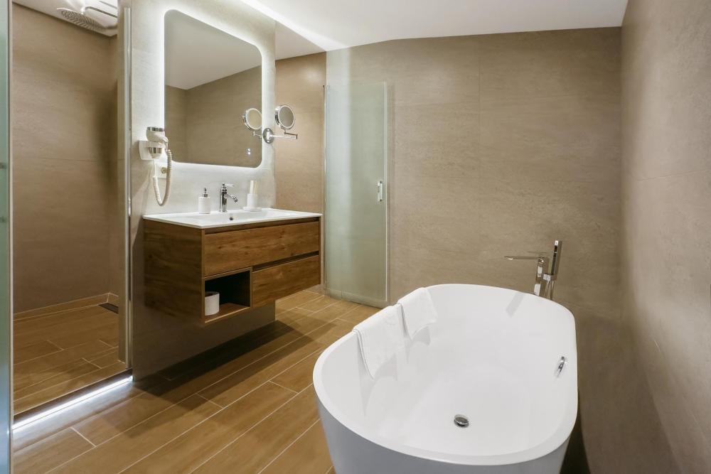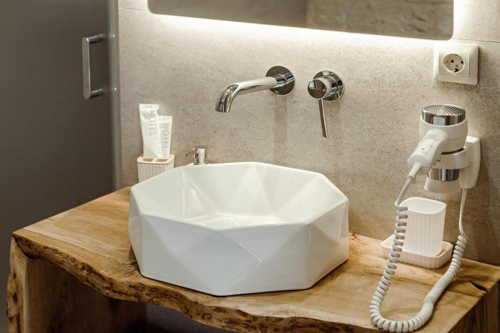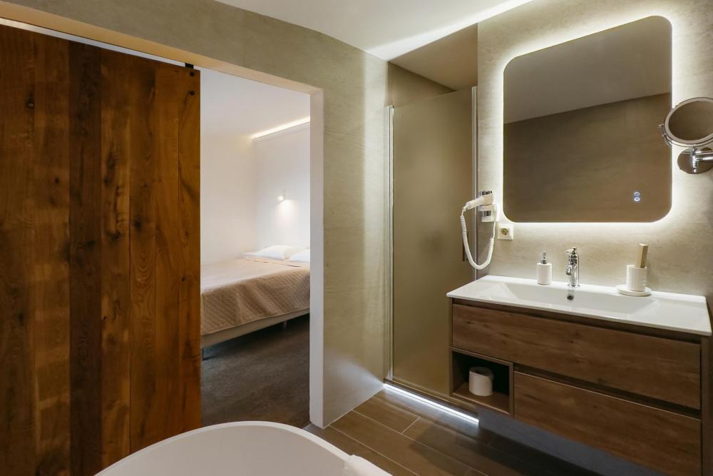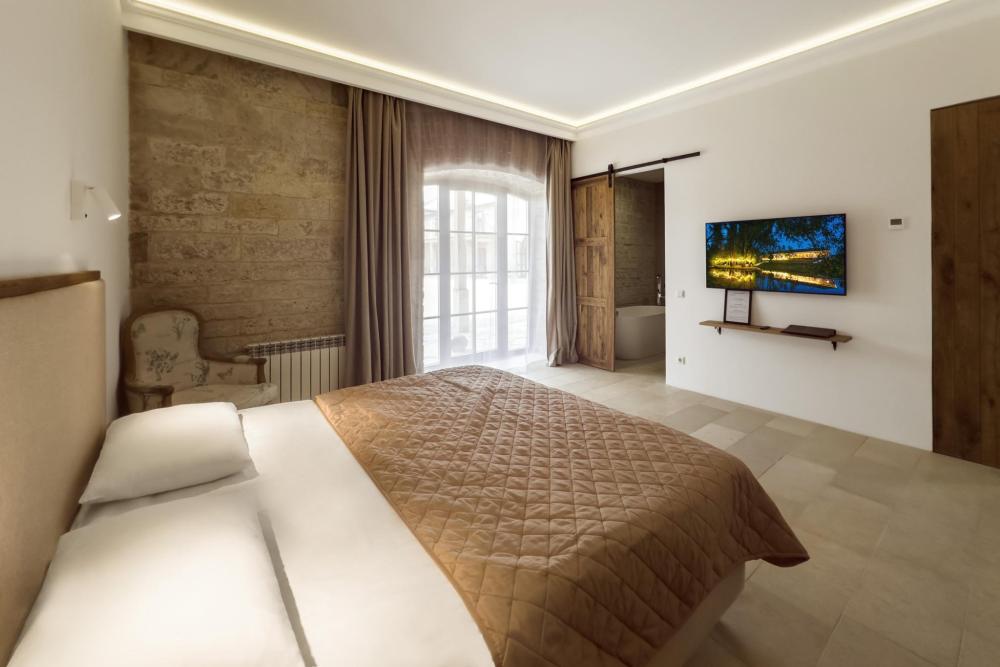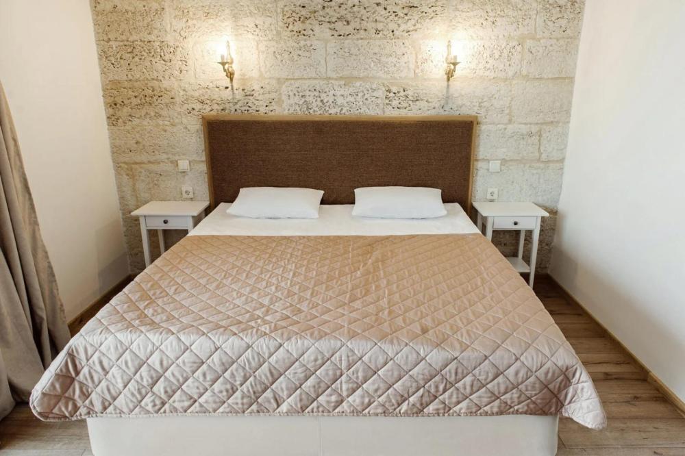 2 номера категории «Люкс» находятся на втором этаже в Крепости; Двухкомнатный номер - 50-55 кв.м.; Двухспальная кровать 180*200см; Мягкий раскладной диван (спальное место 140*200см); Отдельно стоящая ванная, душ, 2 санузла в разных комнатах; Кондиционер, Smart-ТВ, Wi-Fi, чайник, шкаф, стол, стул, минибар; Вид во внутренний дворик; Лаунж-зона на балконе с шезлонгами; Номера одной категории могут отличаться ввиду исторических планировок. Размещение с животными в номерах данной категории запрещено.
