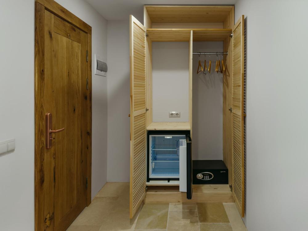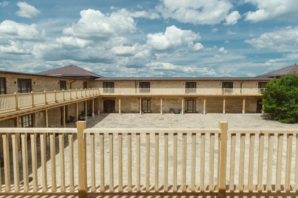 1 номер категории «Сюит с площадкой для барбекю» находится на первом этаже в Крепости; Однокомнатный номер - 28 кв.м.; Двухспальная кровать 180*200см; Мягкое кресло; Душ, ванная, 2 раковины; Кондиционер, Smart-ТВ, Wi-Fi, чайник, шкаф, стол, стул, минибар; Вид на запад; Барбекю-площадка рядом с номером площадью 60 кв.м.с внешней стороны Крепости; Номера одной категории могут отличаться ввиду исторических планировок. Размещение с домашними животными в номерах данной категории запрещено.
