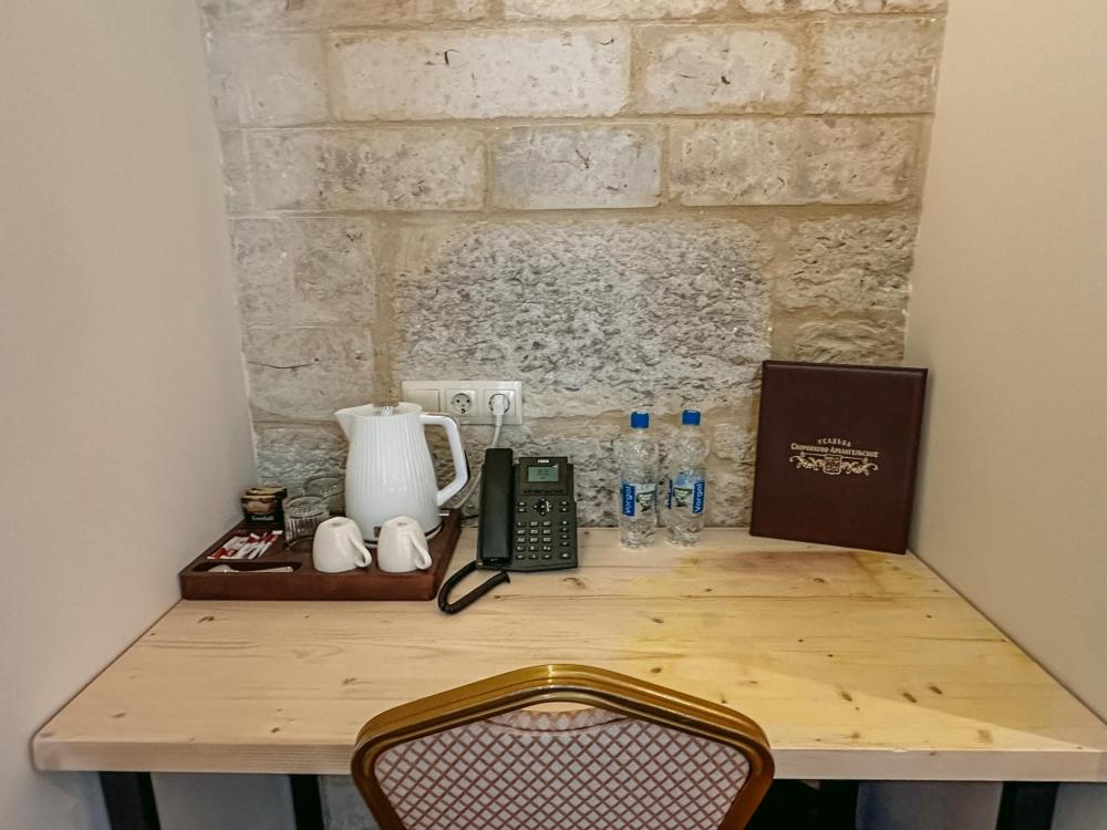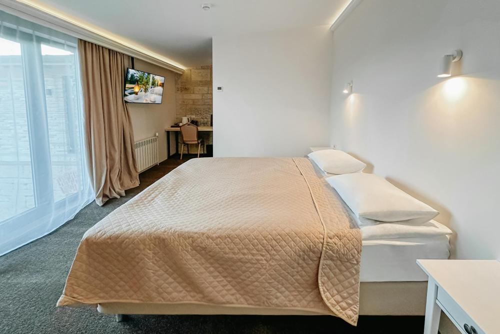 Номера категории «Стандарт» находятся на втором этаже в Крепости; Однокомнатный номер - 18-22 кв.м.; Двухспальная кровать 160*200см; Душ, в некоторых номерах ванная; Кондиционер, Smart-ТВ, Wi-Fi, чайник, стол, стул, шкаф; Вид во внутренний дворик; Лаунж-зона на балконе с шезлонгами; Номера одной категории могут отличаться ввиду исторических планировок. Размещение с домашними животными в номерах данной категории запрещено.