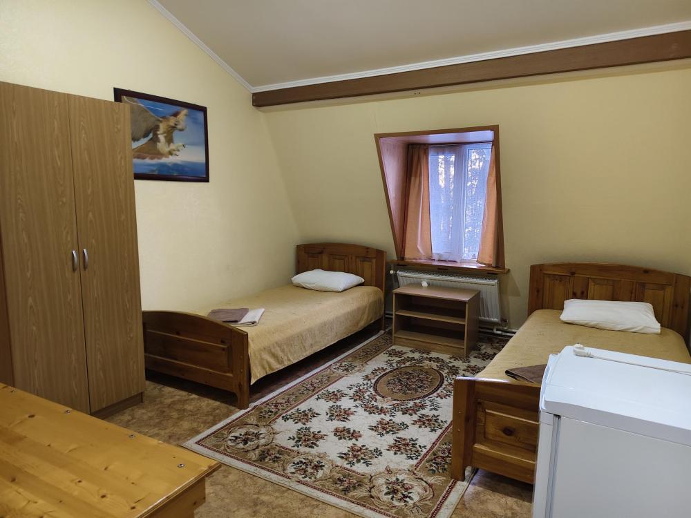 Одноместный однокомнатный стандарт . ТВ,холодильник,чайник, туалет умывальник, душ, полотенца, одноразовое мыло, стол, шкаф, качественное белье, ,ортопедические матрасы .Дополнительно: бесплатная закрытая парковка, возможность готовить (большая общая кухня),мангалы беседки на территории. Русская баня оплачивается отдельно.