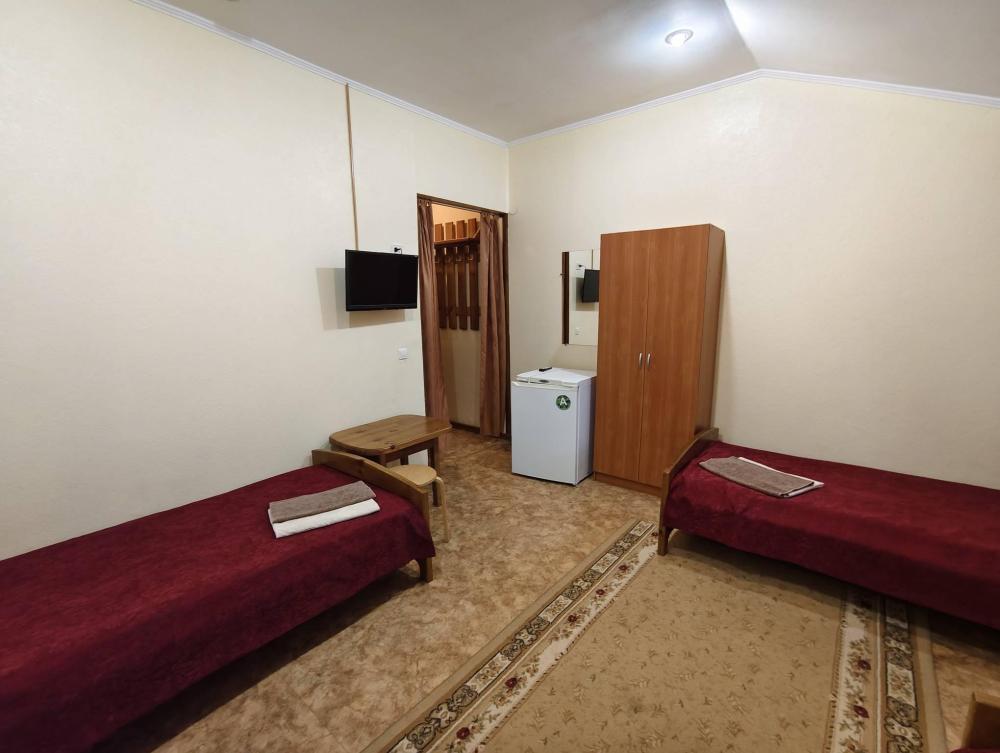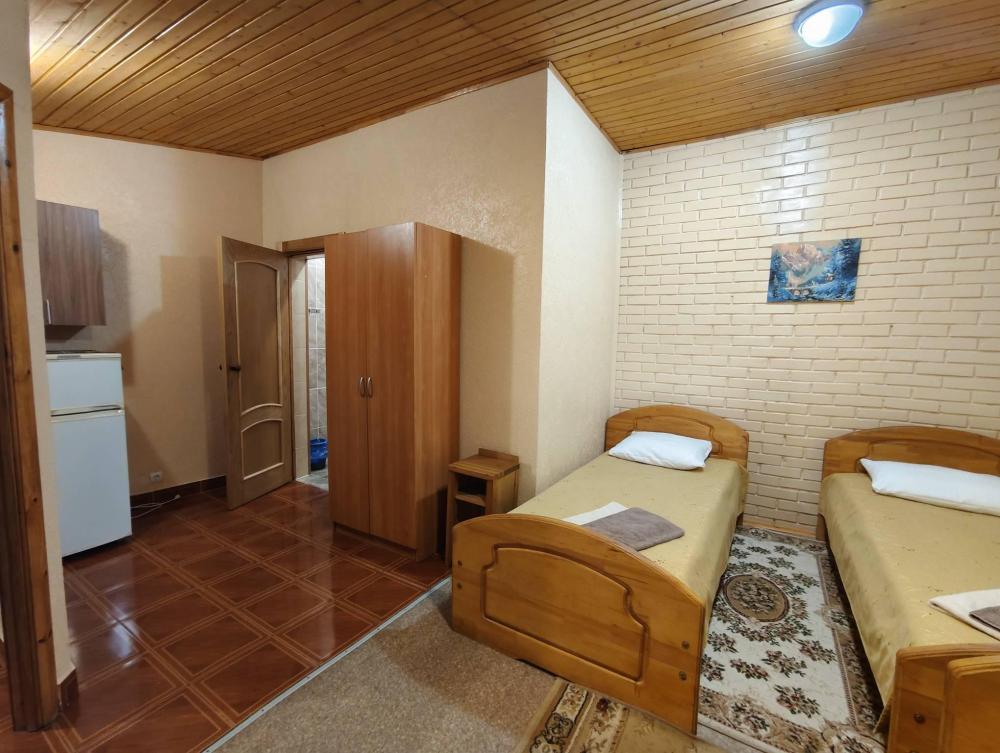 Двухместный однокомнатный номер со всеми удобствами: качественное белье и полотенца ,Душ ,туалет ,умывальник, мыло шампунь гель для душа ,холодильник ТВ,стол,шкаф ,чайник. На на территории гостевого дома есть беседки,мангалы. Есть большая общая кухня полностью укомплектованная -можно готовить, большой зал для приема пищи ,бесплатная парковка на территории под видео наблюдением. Бесплатный чай и кофе для гостей .