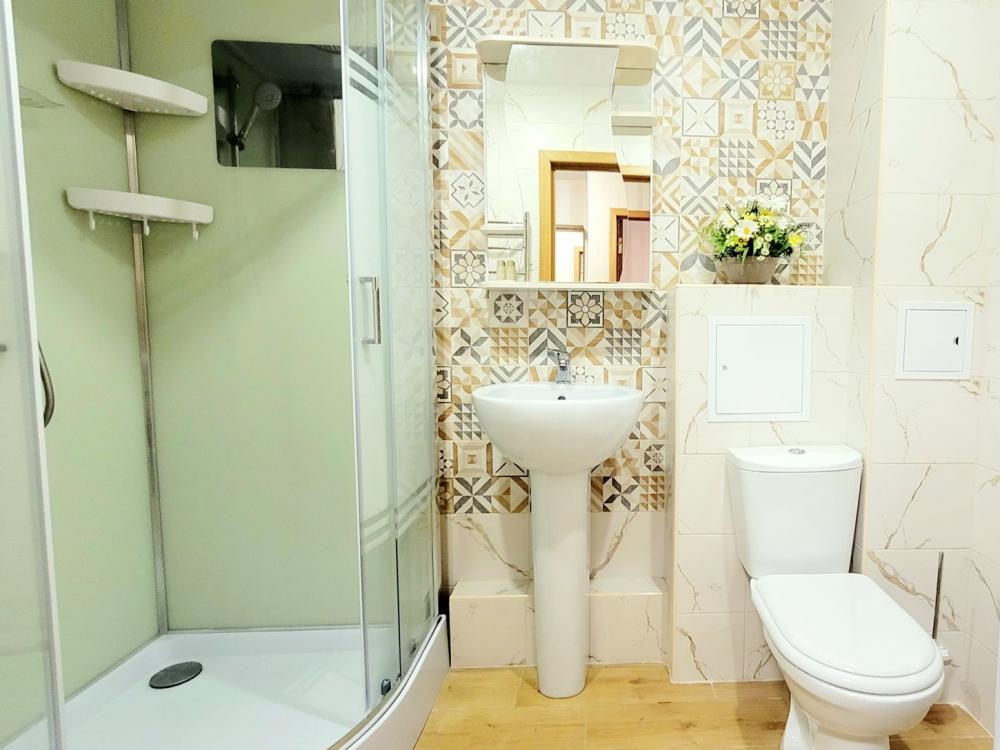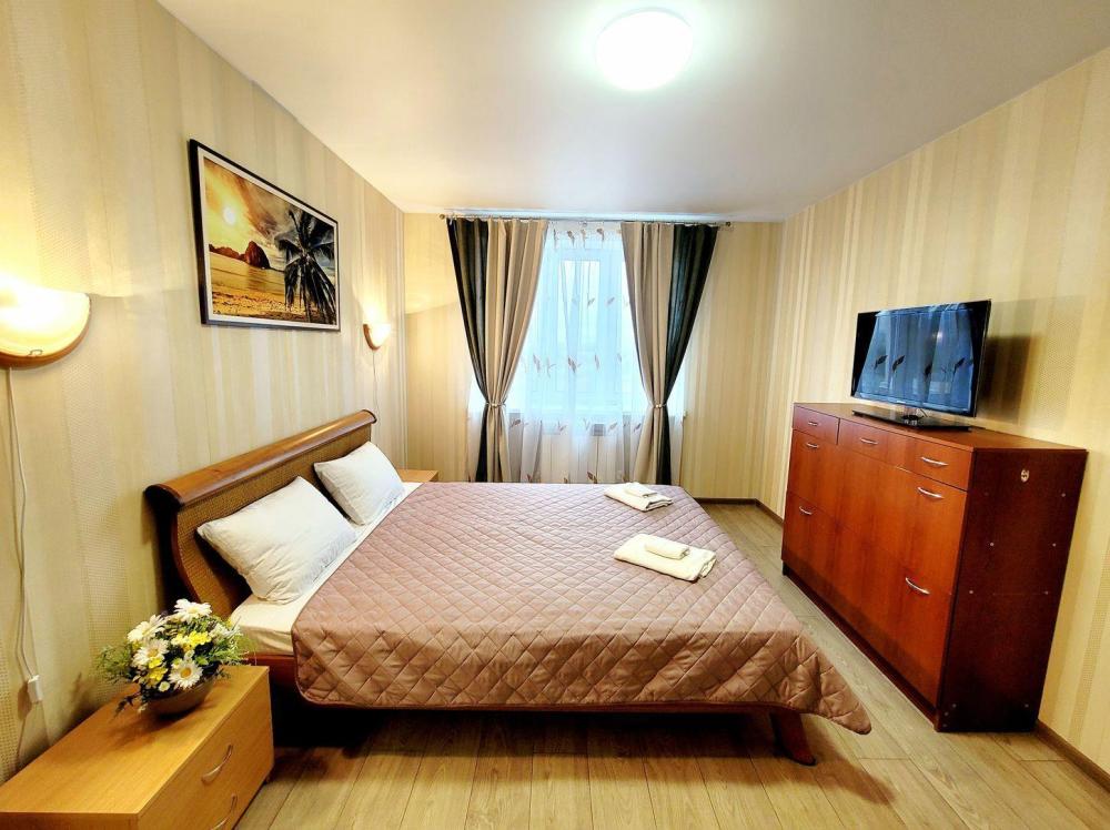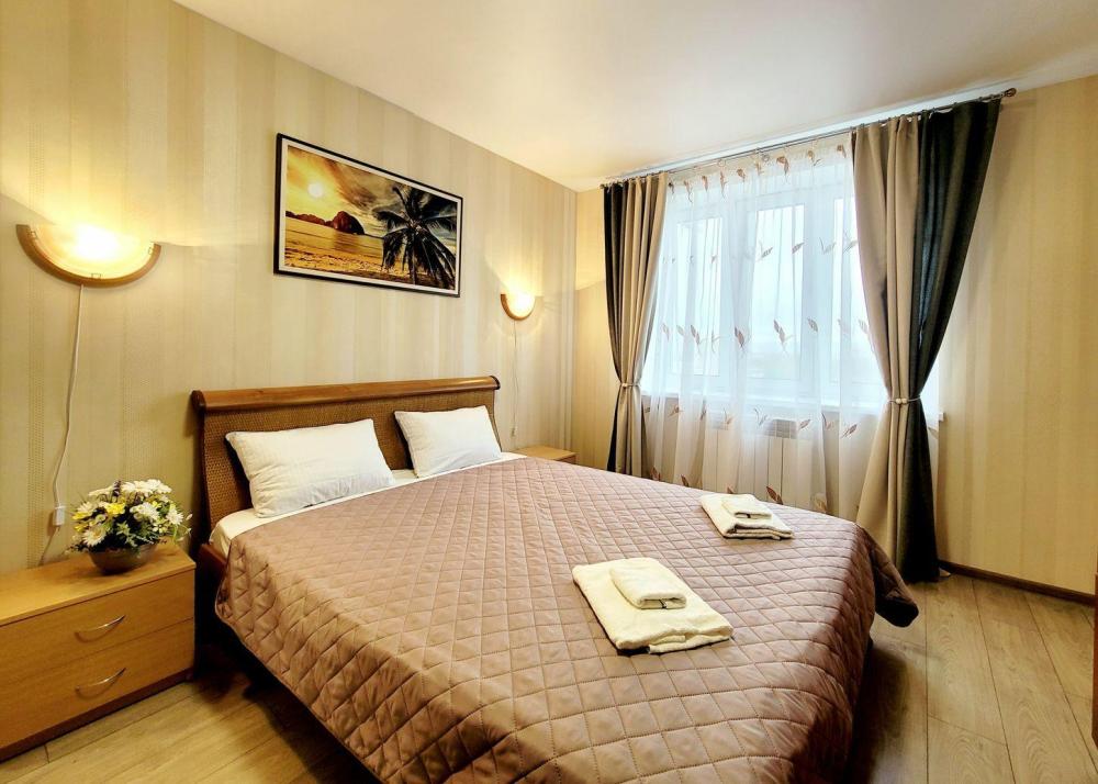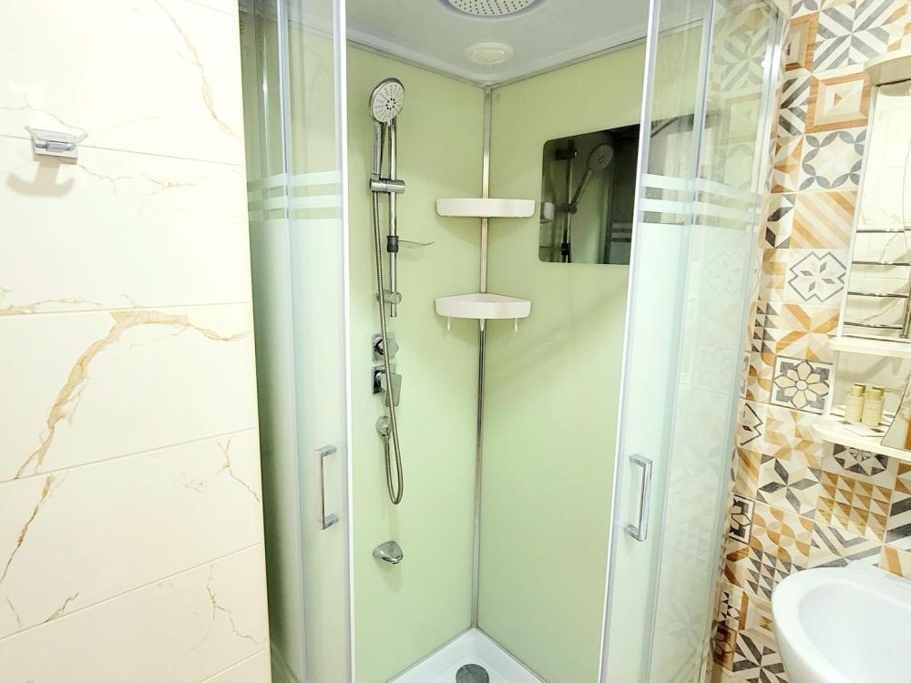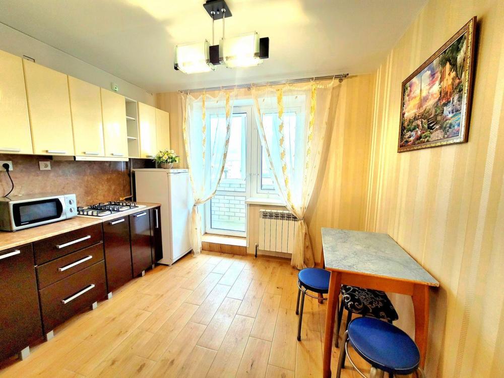 Великолепные 2 двуспальные кровати с ортопедическим матрасом и стильные портьеры в светлой комнате обеспечат качественный сон до 4 человек. Кабельное ТV и Wi-Fi помогут провести свободное время, а настенные светильники-бра способствуют приятному чтению перед сном. Прекрасная новая кухня с оригинальным освещением, оснащена стильным гарнитуром и встроенной бытовой техникой. Имеется полный комплект разнообразной посуды на четыре персоны гостей для приготовления по-настоящему вкусного домашнего рациона. Элегантная обеденная зона сделает душевной любую трапезу или чаепитие. На этаже есть также большой светлый балкон с прекрасным видом открывающимся с 14 этажа на Крепостную стену и центральный Собор. Чистейший санузел оборудован белоснежной сантехникой и душевой кабинкой с тропическим душем. В наличии все принадлежности для полноценного личного ухода гостей - от стиральной машины-автомат до фена и нужных мелочей.