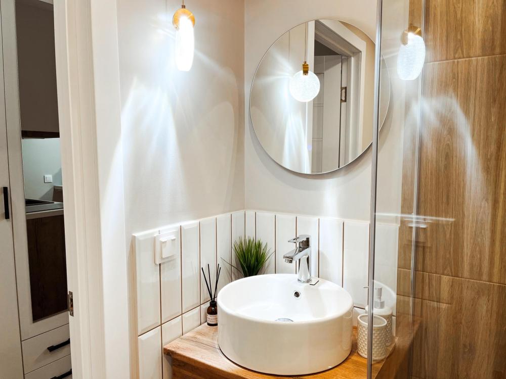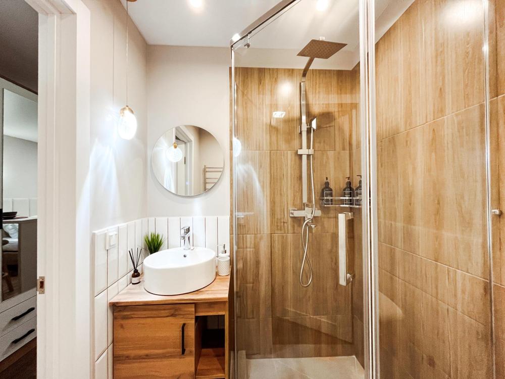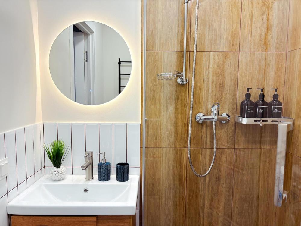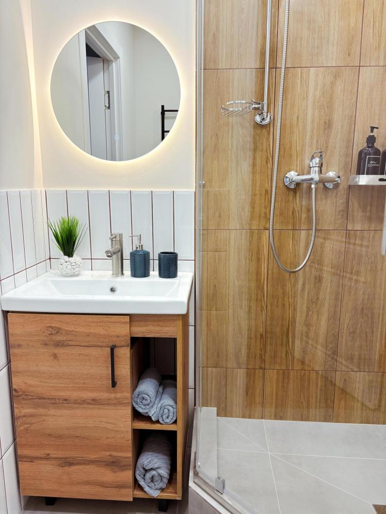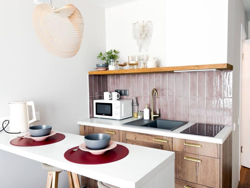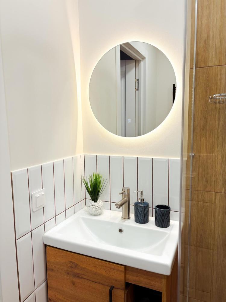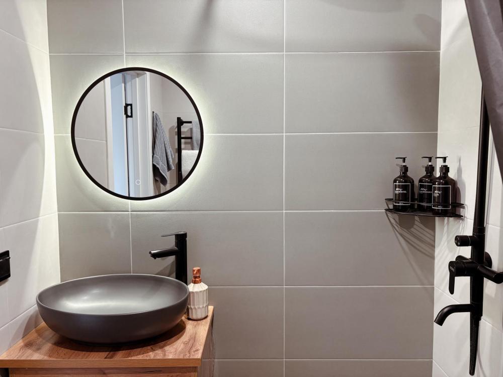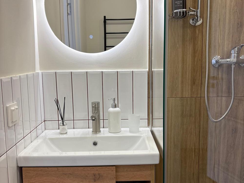 Уютные апартаменты студия. В апартаментах возможно как размещение с двуспальной кроватью, так и размещение с раздельными кроватями. Качественный текстиль, интернет и телевидение (ULTRA HD), стиральная машина, кондиционер, шторы настоящий блэкаут. Апартаменты полностью укомплектованы, чтобы гости могли получить максимальный комфорт. В апартаментах есть: утюг и гладильная доска, электрический чайник, холодильник, кондиционер, полотенца для тела, лица, гигиенический душ, гель для душа, качественный шампунь и кондиционер для волос, а также куча приятных мелочей как ватные диски, предметы гигиены и прочее.