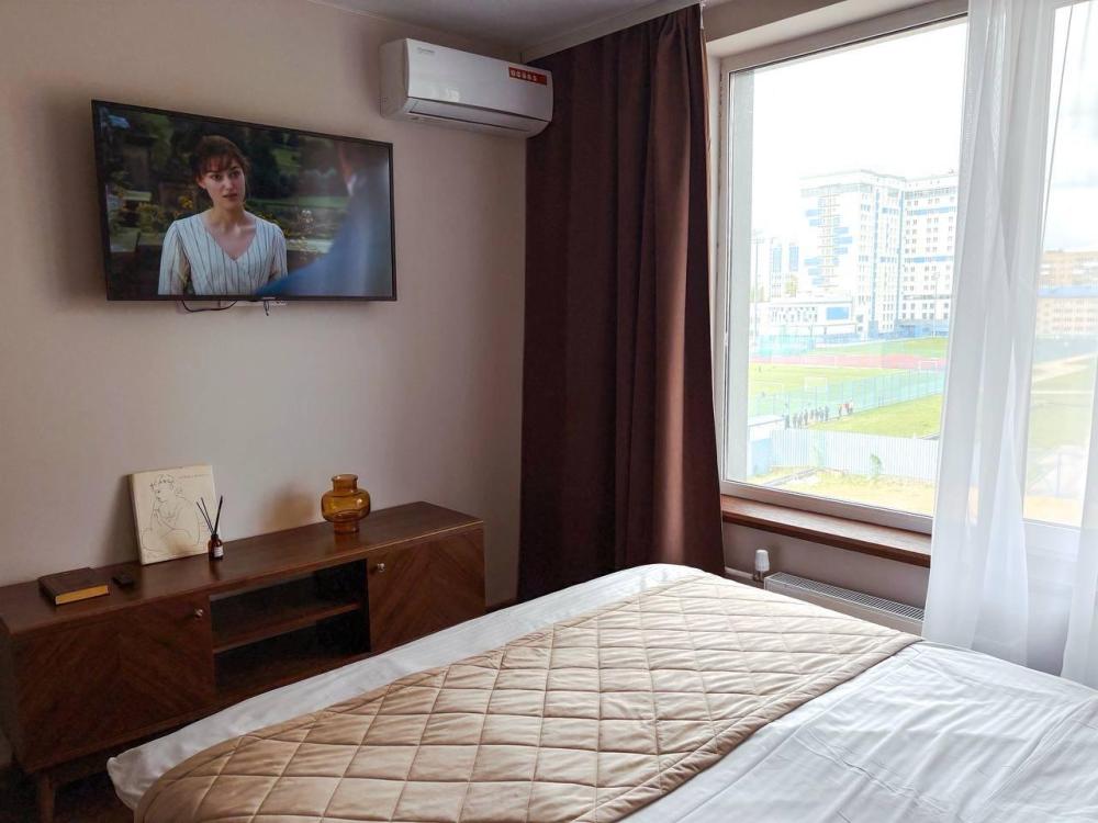 Квартира-студия в новом современном комплексе, консьерж сервис! Возможно бесконтактное заселение! Бесплатный коворкинг и СПОРТЗАЛ?️! Отчетные документы + чек командировочным! Возможна оплата на расчетный счет. Рядом со зданием современная столовая с хорошей домашней кухней! В пешей доступности расположен университет спорта, стадион, областная больница, медицинский университет, в пешей доступности супермаркет Пятерочка! ‼️Размещение как с двуспальной кроватью, так и размещение с раздельными кроватями (заранее предупредите если нужен второй вариант размещения). ?️ Качественный текстиль☁️ (белый страйп-сатин), интернет и телевидение (ULTRA HD 43 дюйма), стиральная машина, кондиционер, шторы настоящий БЛЭКАУТ (совершенно не пропускают солнечный свет пока Вы спите). ‼️Наши апартаменты полностью укомплектованы, чтобы вы могли получить максимальный комфорт! У нас есть: утюг и гладильная доска, электрический чайник, холодильник, кондиционер, полотенца для тела, лица, гигиенический душ, гель для душа, качественный шампунь и кондиционер для волос, а также куча приятных мелочей как ватные диски, предметы гигиены и прочее - все абсолютно новое!? На первом этаже комплекса работает прачечная! На первом этаже консьерж сервис, бесплатный коворкинг, зона отдыха с комфортными дизайнерскими диванчиками и креслами, где можно расслабиться и выпить кофе ☕️ или посидеть на улице в удобных летних креслах. Заселение после 14:00, выезд до 12:00. Заселение 3х человек возможно при условии заселения 2 взрослых + 1 ребенок. (Без дополнительного места) запрещено курение, проживание с животными без согласования, а также проведение вечеринок и праздников. Возможно вы нас по запросу: апартаменты