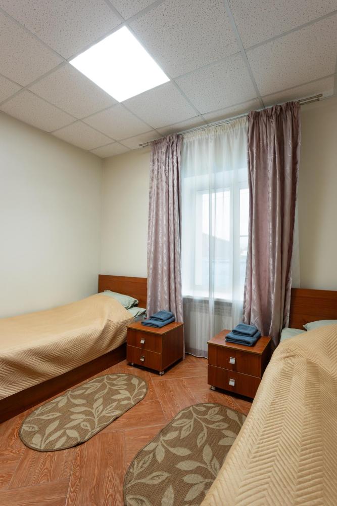 Комфортный двухместный номер на первом этаже с двумя односпальными кроватями, телевизором и удобствами в номере Фен находится у администратора В холле есть кулер с водой