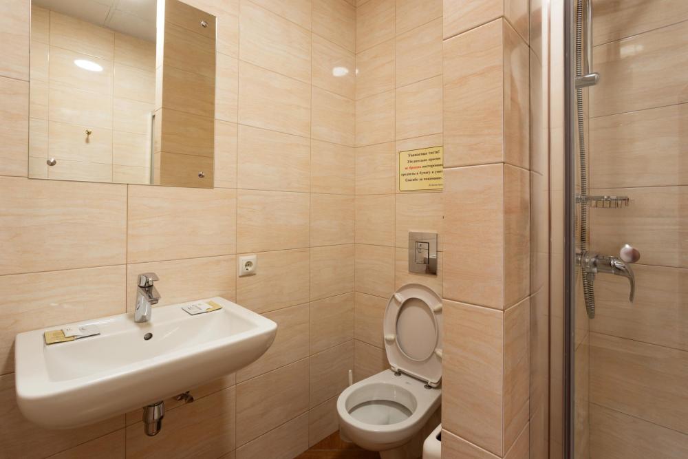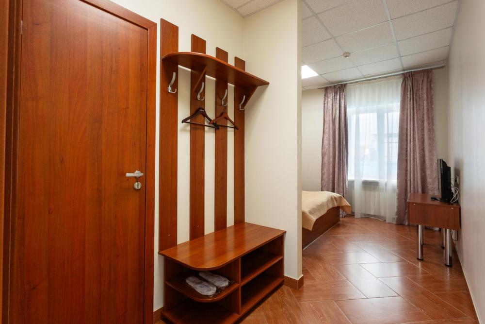 Комфортный двухместный номер на первом этаже с одной двуспальной кровать, телевизором и удобствами в номере Фен находится у администратора В холле есть кулер с водой