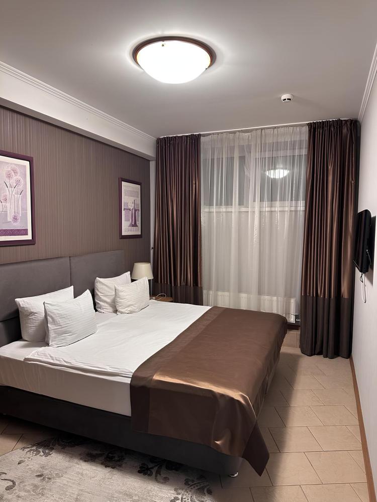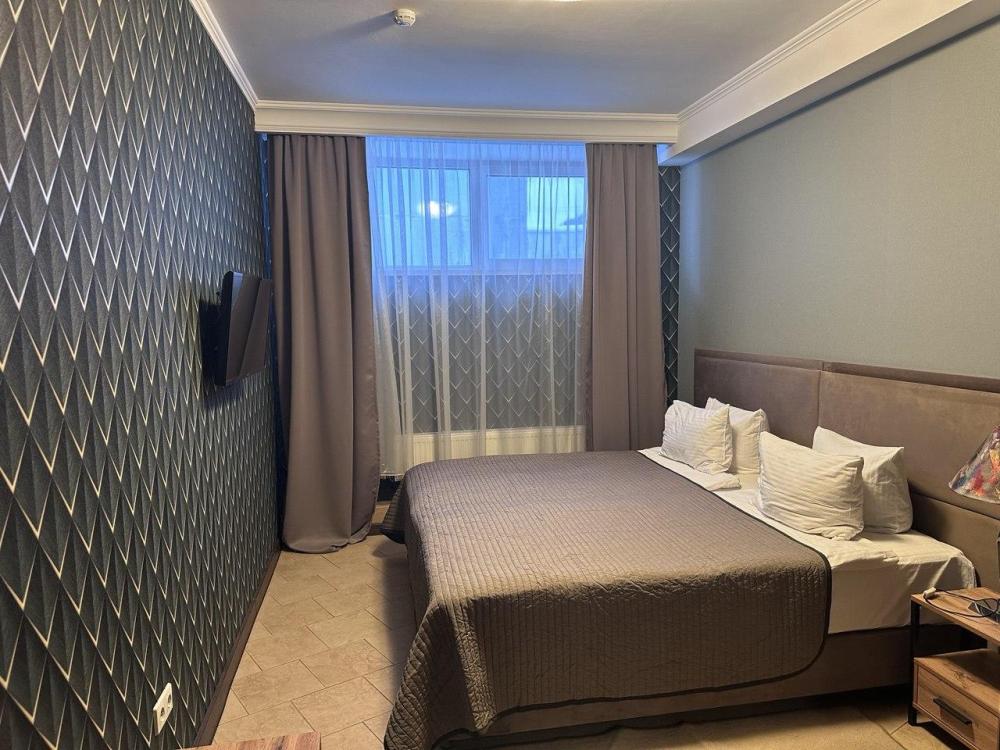 Улучшенный стандартный номер площадью от 20 до 25 м² с одной двуспальной кроватью. Каждый номер оснащен кондиционером, телевизором, мини-холодильником, чайником и чайными принадлежностями, кроватью с ортопедическим матрасом. Ванная комната оснащена душевой кабиной, туалетом, раковиной, а также полным комплектом полотенец и необходимыми косметическими принадлежностями: жидкое мыло, шампунь, гель для душа. Уборка номеров проводится ежедневно. Для удобства гостей предоставляются тапочки. Номер для некурящих. Номера располагаются на 4 этаже комплекса. Лестница без лифта.