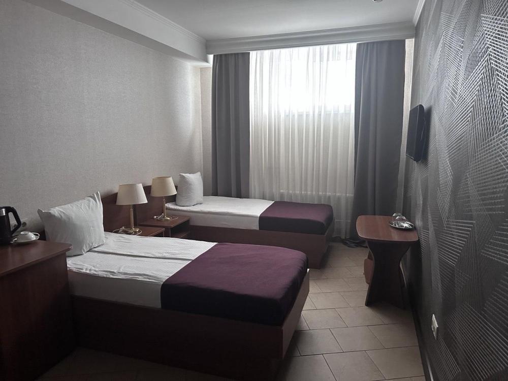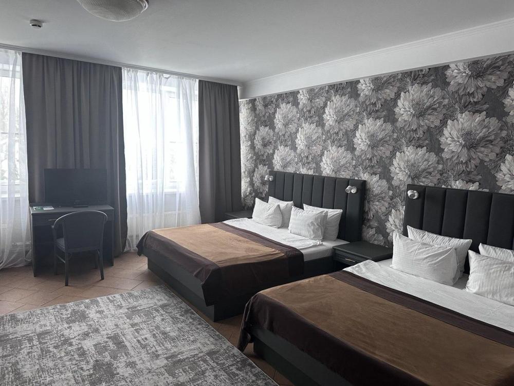 Стандартный номер площадью от 18 до 22 м² с двумя односпальными кроватями — это уютный двухместный номер, оборудованный всем необходимым для комфортного проживания. Каждый номер оснащен телевизором, мини-холодильником, чайником и чайными принадлежностями, кроватями с ортопедическими матрасами, шкафом и сейфом. Ванная комната оснащена душевой кабиной, туалетом, раковиной, а также комплектом полотенец и необходимыми косметическими принадлежностями: мыло, шампунь, гель для душа. Для удобства гостей предоставляются тапочки. Номер для некурящих. Номера оборудованы высокими мансардными окнами и находятся на 2 и 3 этажах отеля. Лестница без лифта.