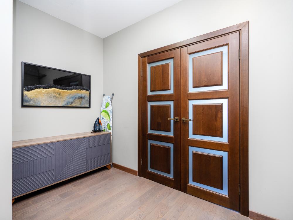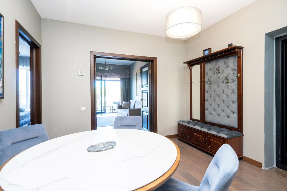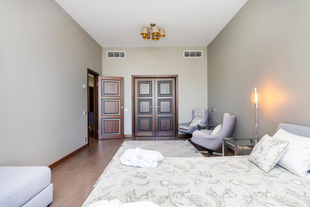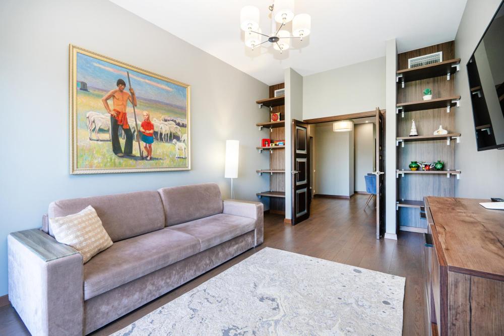 кухня,2 сан узла, балкон, гостиная с диваном, спальня с кроватью, гардеробная