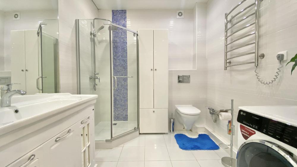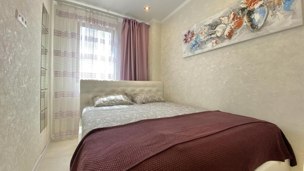 Квартира-студия 45 кв.м. расположена на 3 этаже, вместимость до 6 человек. Кухня-гостиная: кухонный гарнитур с полным набором, 4 стула и стол, кухонная утварь, эл. чайник, микроволновка, варочная панель, холодильник; Wi-Fi, ЖК ТВ, кондиционер, раскладываемый диван. Ванная: душевая зона, стиральная машина, фен, утюг. Прихожая, гардероб: шкаф, полки, вешалки. Спальная зона: 2 спальная кровать. Гостям могут предоставить детскую кроватку, стульчик. Бассейн на крыше комплекса.