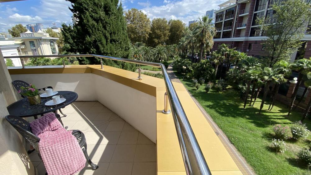 Двухкомнатная квартира-студия с балконом 48 кв.м. расположена на 3 этаже вместимость до 5 человек. Кухня-гостиная: кухонный гарнитур с полным набором, два 2-спальных комфотных дивана-кровати, обеденный стол, 4 стула, варочная, эл. чайник, микроволновка, холодильник, Wi-Fi, тв 47’, кондиционер. Спальня: большая двуспальная кровать с поднимающимся основанием для хранения, ортопедический матрас, кондиционер. Ванная: душевая зона, стиральная машина, фен, утюг. Прихожая: рабочий стол/стул, гардероб: шкаф, полки, вешалки. В апартаментах есть видовой балкон. Могут предоставить детскую кроватку, стульчик. Бассейн на крыше комплекса.