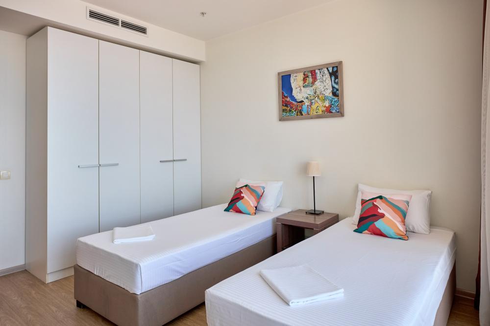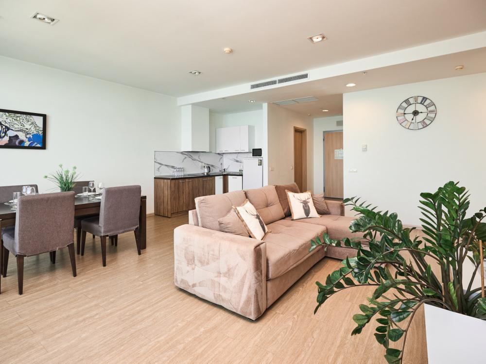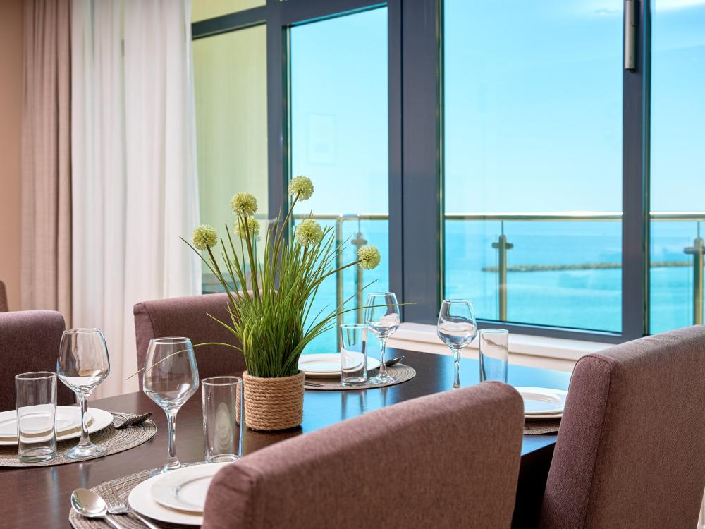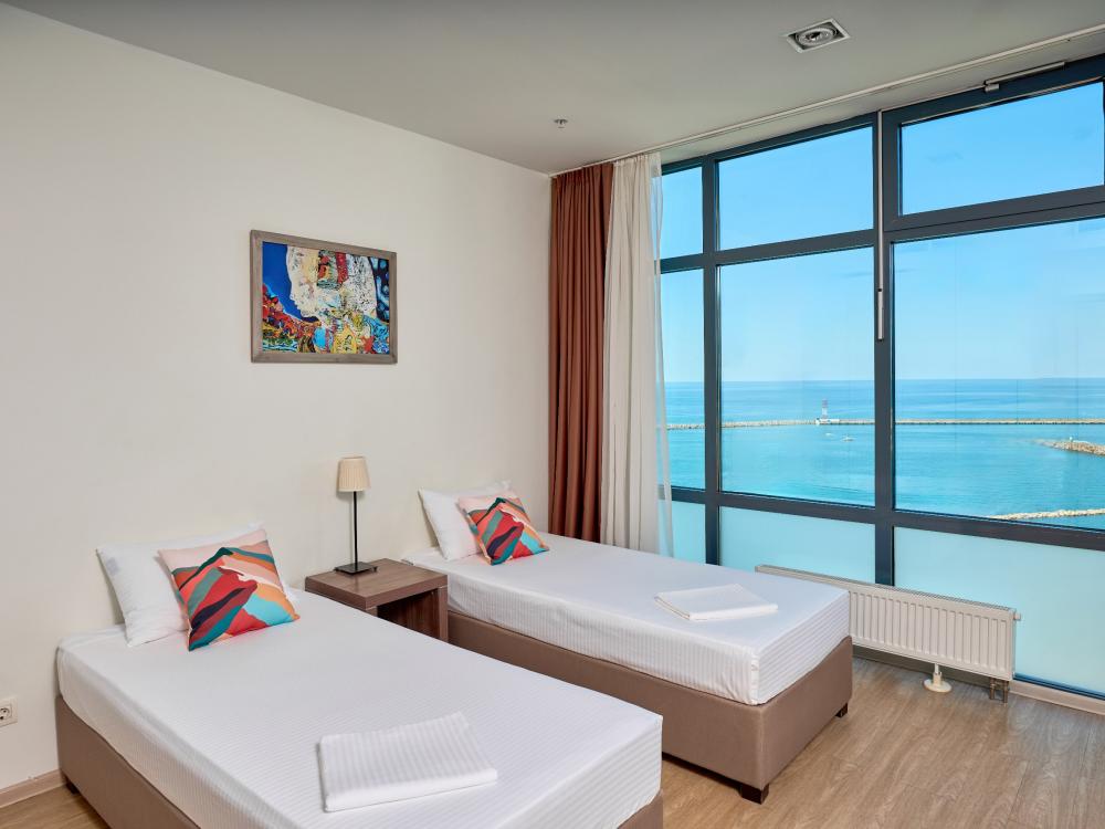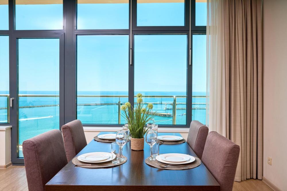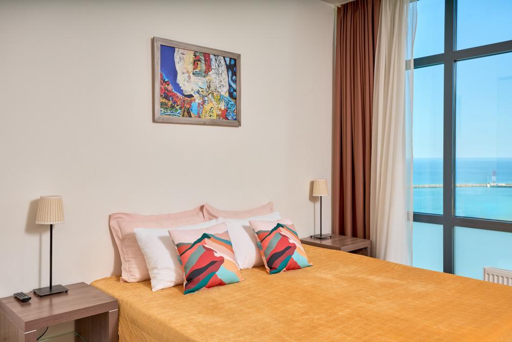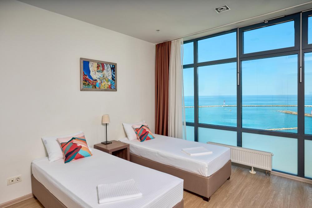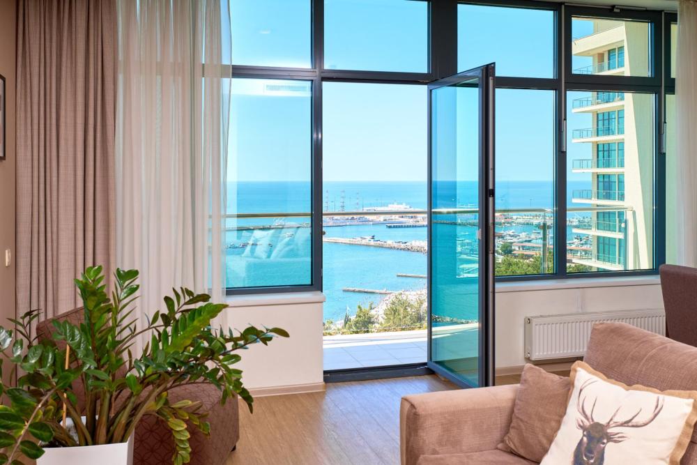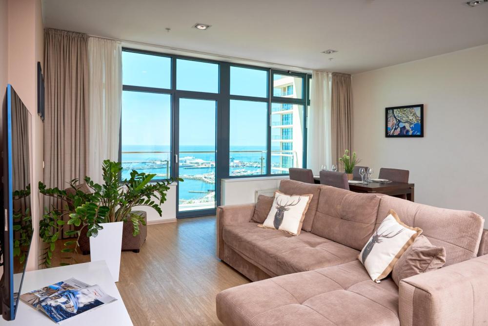 Предлагаем в аренду элитные комфортабельные 3-х комнатные апартаменты с балконом и панорамным видом на море в комплексе Brevis. Комплекс расположен на первой береговой линии в престижном районе "Золотой Треугольник" Рядом Морской порт, лучшие рестораны города с изысканной морской кухней и свежими деликатесами, парки, скверы, концертный зал Фестивальный, театры, всё это в шаговой доступности. Приморская набережная и пляж в 2х шагах от комплекса. Просторный апартамент с двумя отдельными спальнями, одна из которых "мастер спальня" со своим выходом на балкон, с/у и гардеробной комнатой. В большой гостиной комнате есть кухня, где Вы можете приготовить любые блюда и насладиться ими, обедая на балконе с видом на море, обеденная зона в гостиной на 6 человек, двуспальный диван и большой смарт ТВ В апартаментах Вы найдёте всё, что необходимо для проживания: постельные принадлежности, стиральная машина, сушильная машина, гладильная доска, утюг, фен, оборудованная кухня, холодильник, электрочайник, СВЧ, индукционная электроплита, посуда, посудомоечная машина, в каждой комнате ТВ, Wi-Fi. Дополнительные удобства: Каждому гостю при заселении предоставляются банные принадлежности, пляжные полотенца, халаты, тапочки, постельное бельё и гигиенический набор. Также имеется возможность арендовать парковочное место. Общие условия: расчетное время заселения с 15:00, выезд до 12:00. Ранние заезды/выезды согласовываются заранее. Бронь в размере одних суток. При заезде взимается возвратный залог 20000 руб. - гарантия сохранности имущества. В апартаментах нельзя курить и проводить мероприятия. Обратите внимание, что при заезде мы попросим ваши паспортные данные.