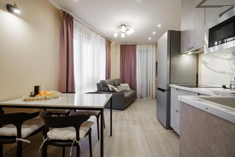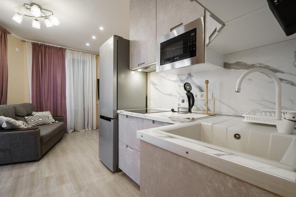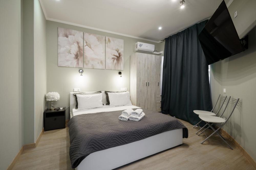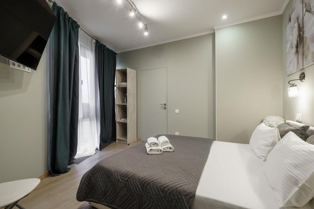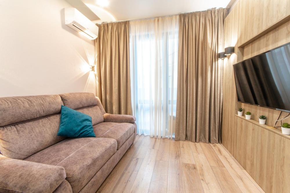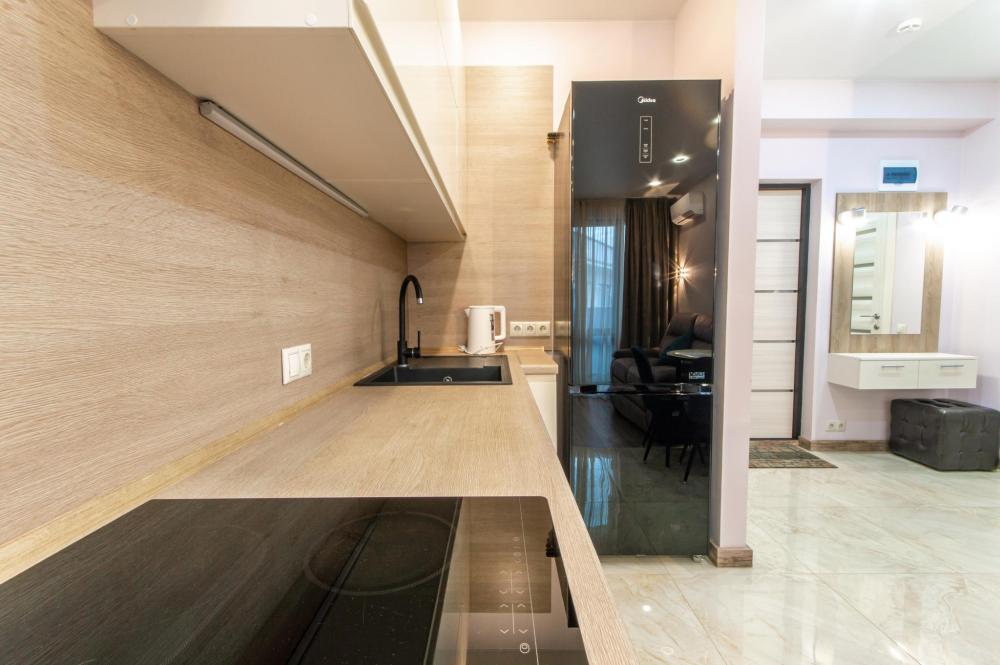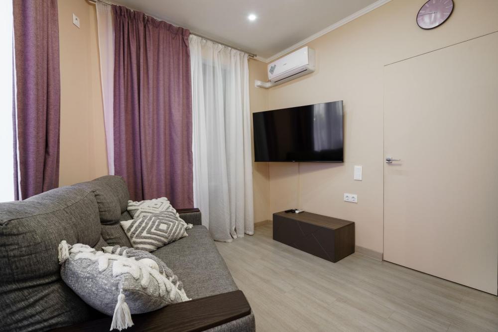 1-комнатные апартаменты улучшенные Квартира оборудована всем необходимым для комфортного проживания: двуспальная кровать, диван, кухонная зона, собственная ванная комната и туалет.